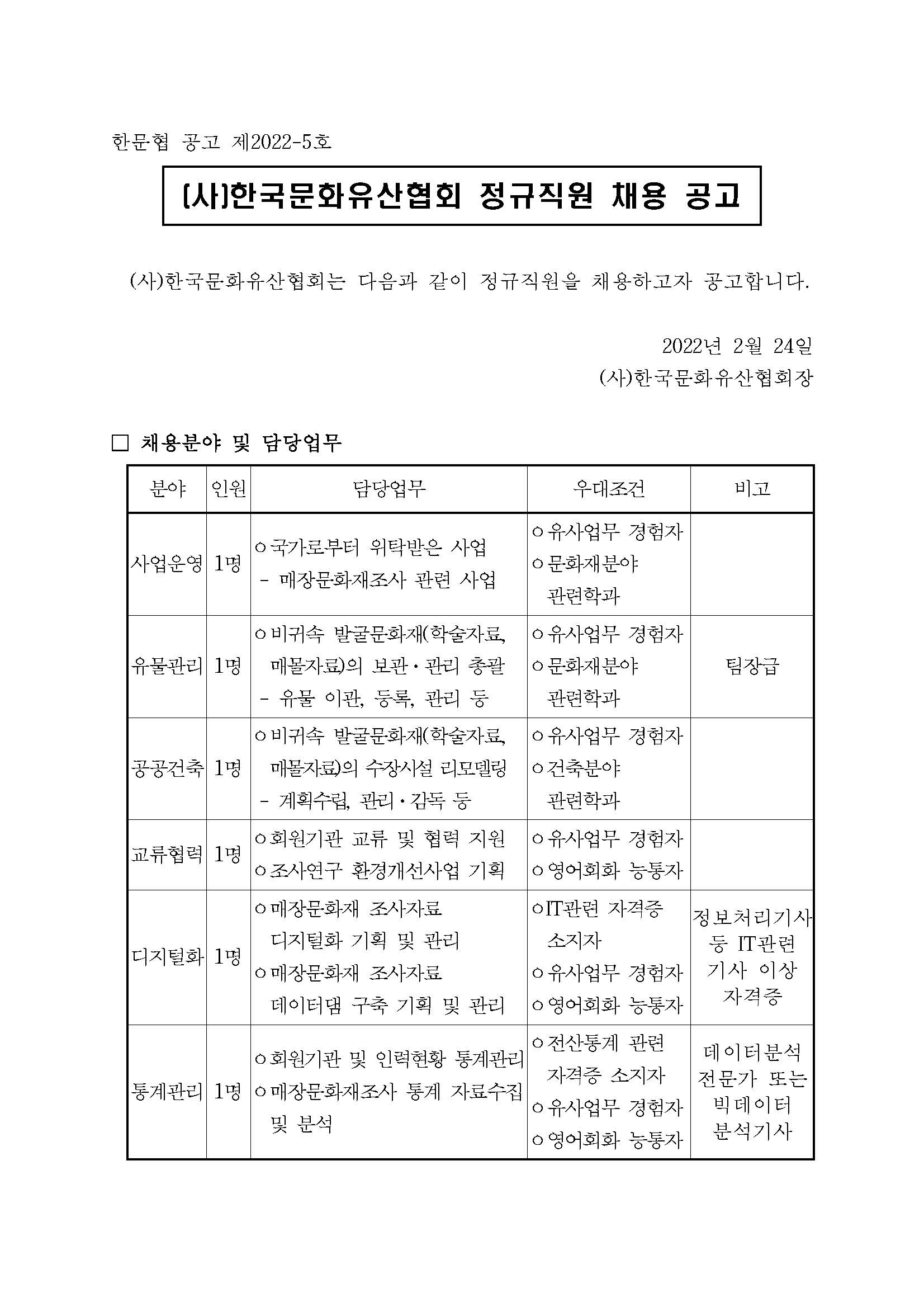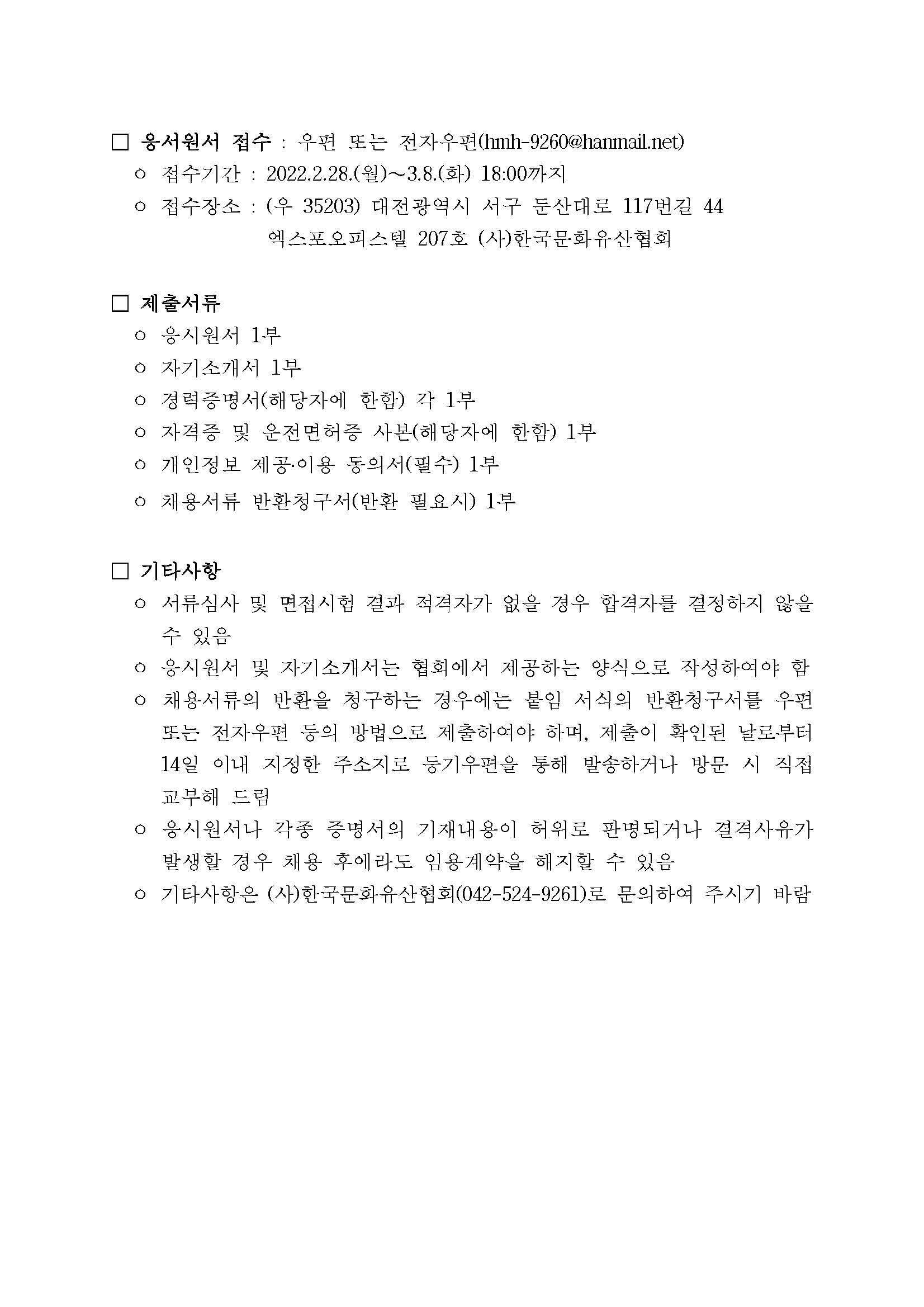 (사)한국문화유산협회서 함께 근무하실 분을 찾고 있습니다.