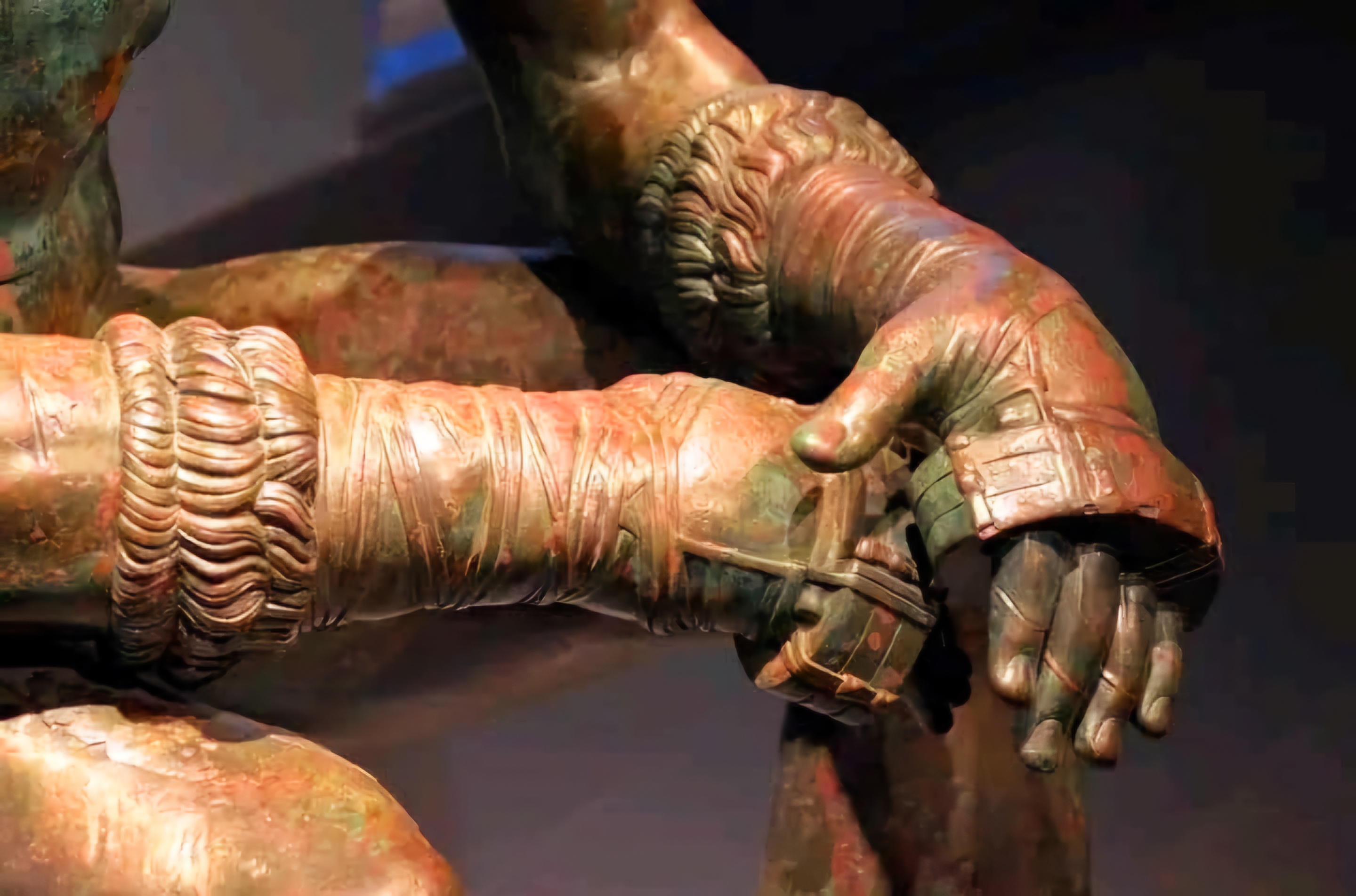 • 권투 장갑이요 가죽 장갑 일종인 "카이스투스 caestus"를 제외하고는 벌거벗은 상태다.