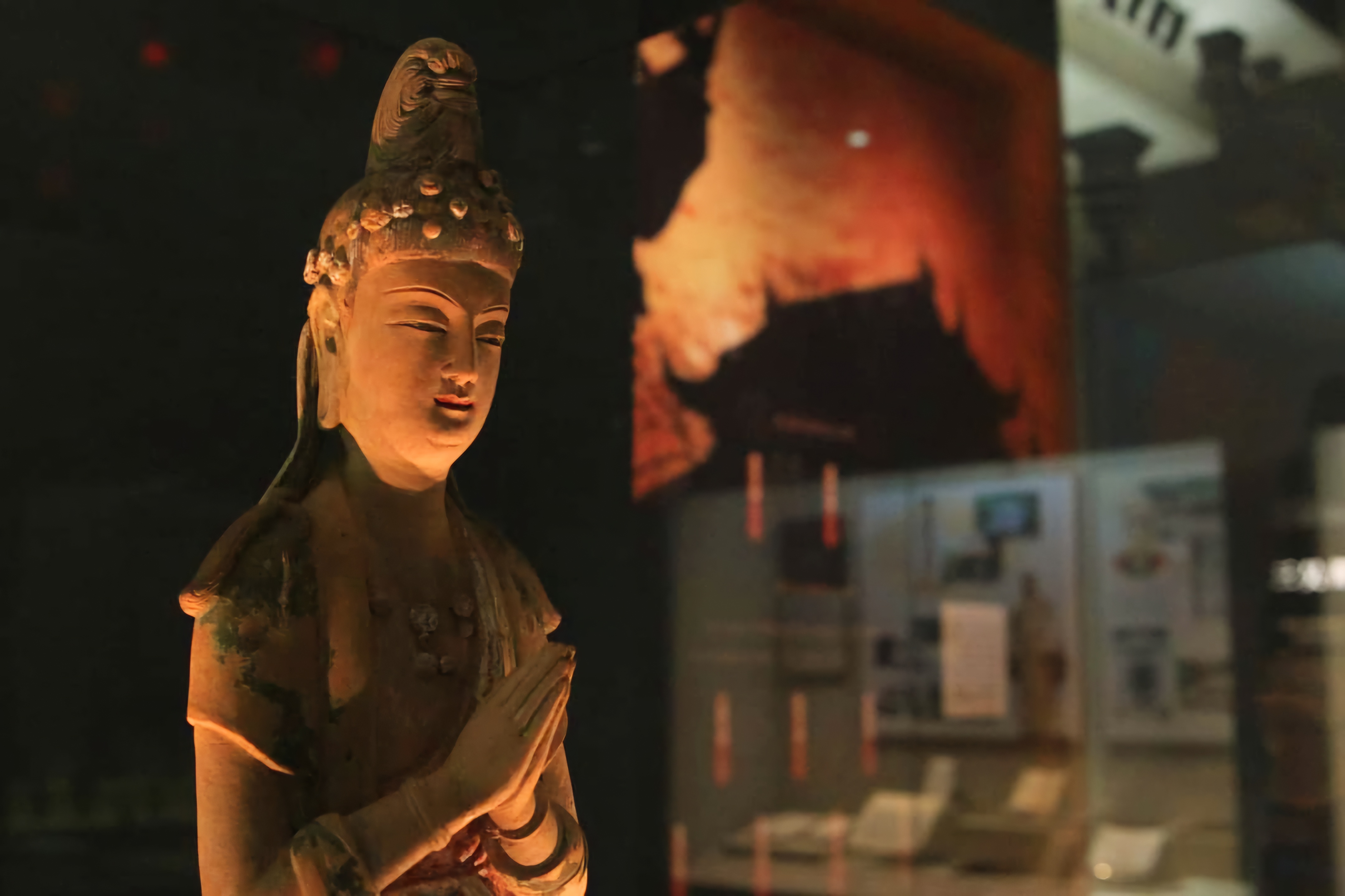 中國浙江省溫州白象塔出土北宋時代彩塑泥普薩立像