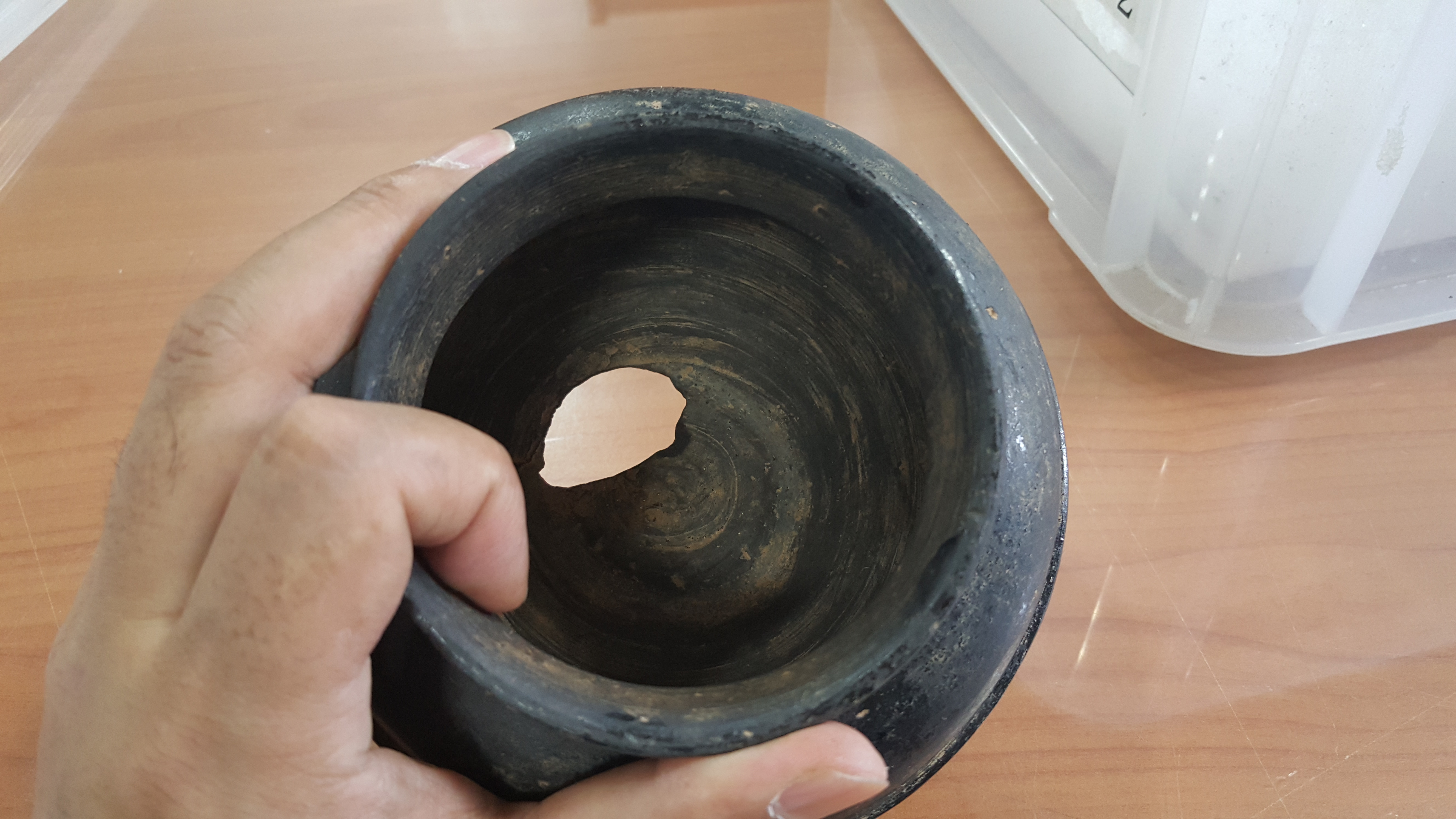 이 흑색마연은 발굴보고서에는 좀 더 상세한 분석 등이 있을 것으로 보이어니와, 보듯이 똥꾸녕이 뚫리고 바닥 굽쪽에 손상이 심하다.