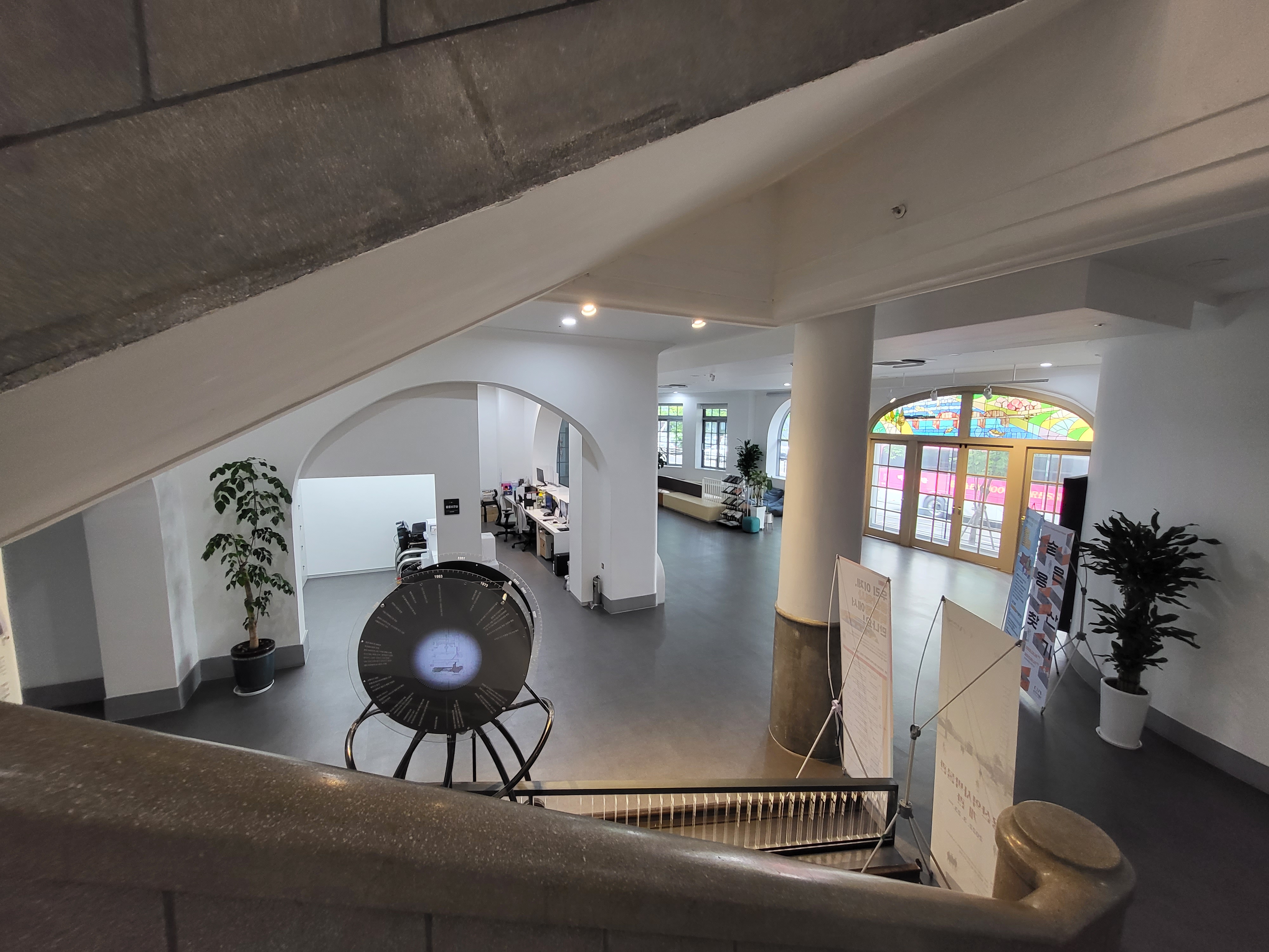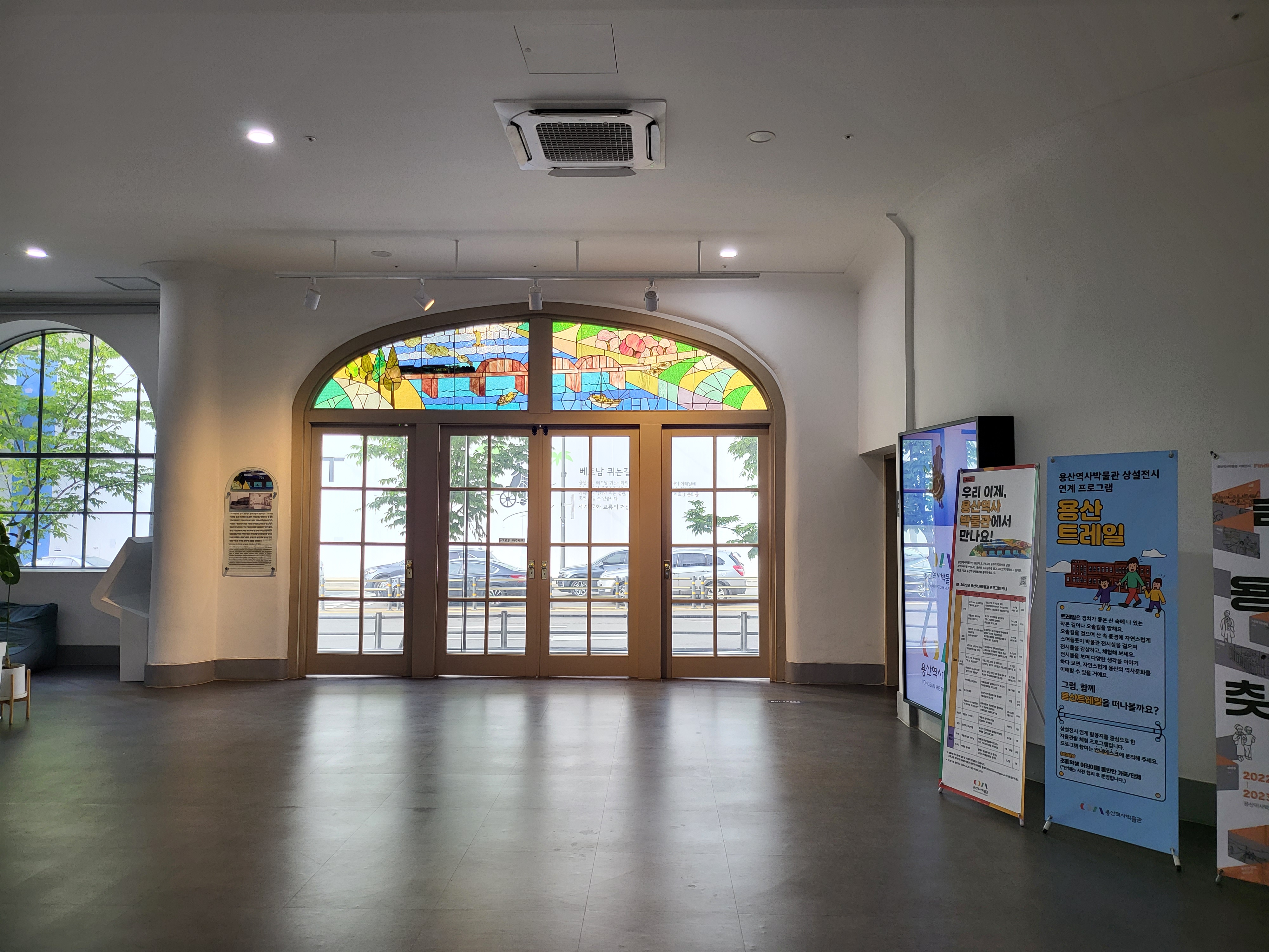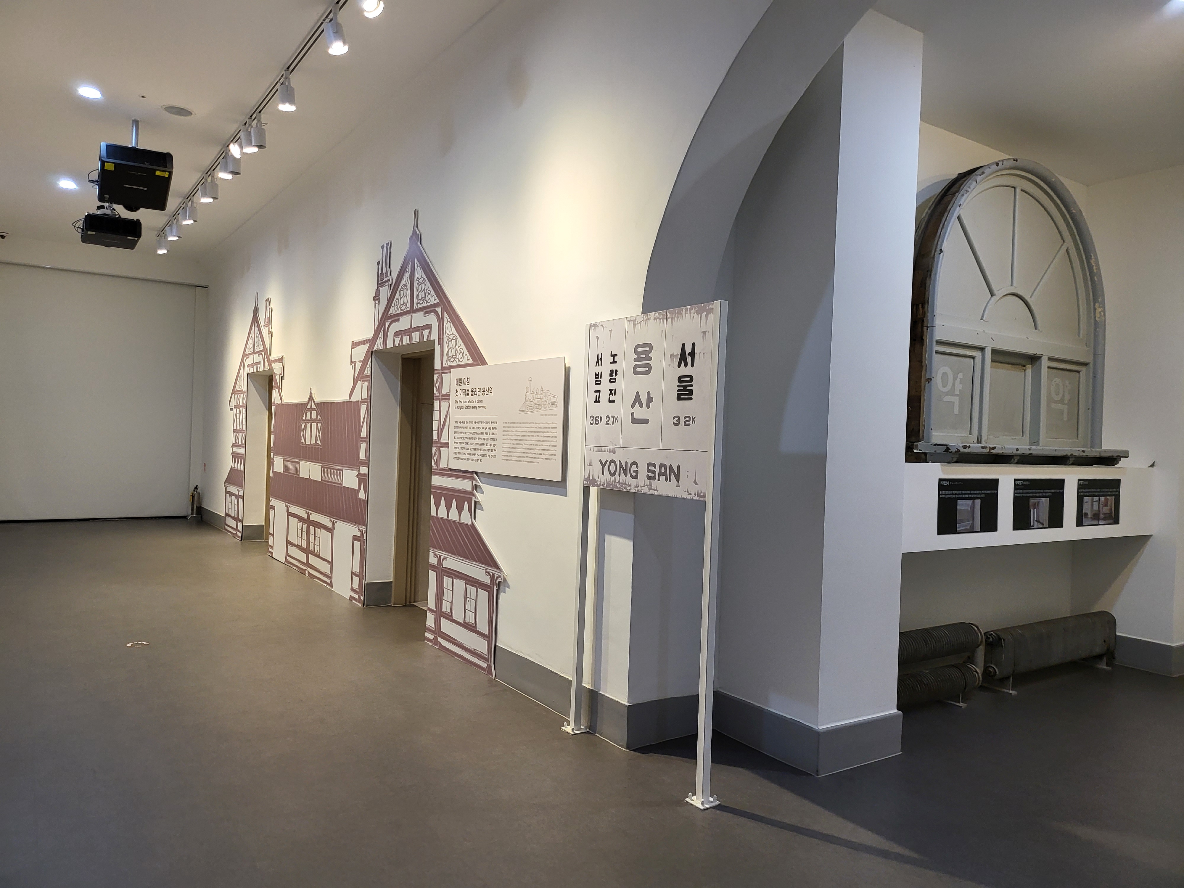 The Vongsan History Museum was opened in the renovated building of the Main Hall (built in 1928) of Yongsan Railroad Hospital, registered as State-designated Cultural Heritage Work was done to restore and preserve the original shape of the Yongsan Railroad Hospital including the outer wall bricks, windows, doors, treatment room, corridor arches, staircases, stained glass at the porch, etc. out of respect for its historic / cultural value as one of the country's early modern architectures and the things witnessed by it.