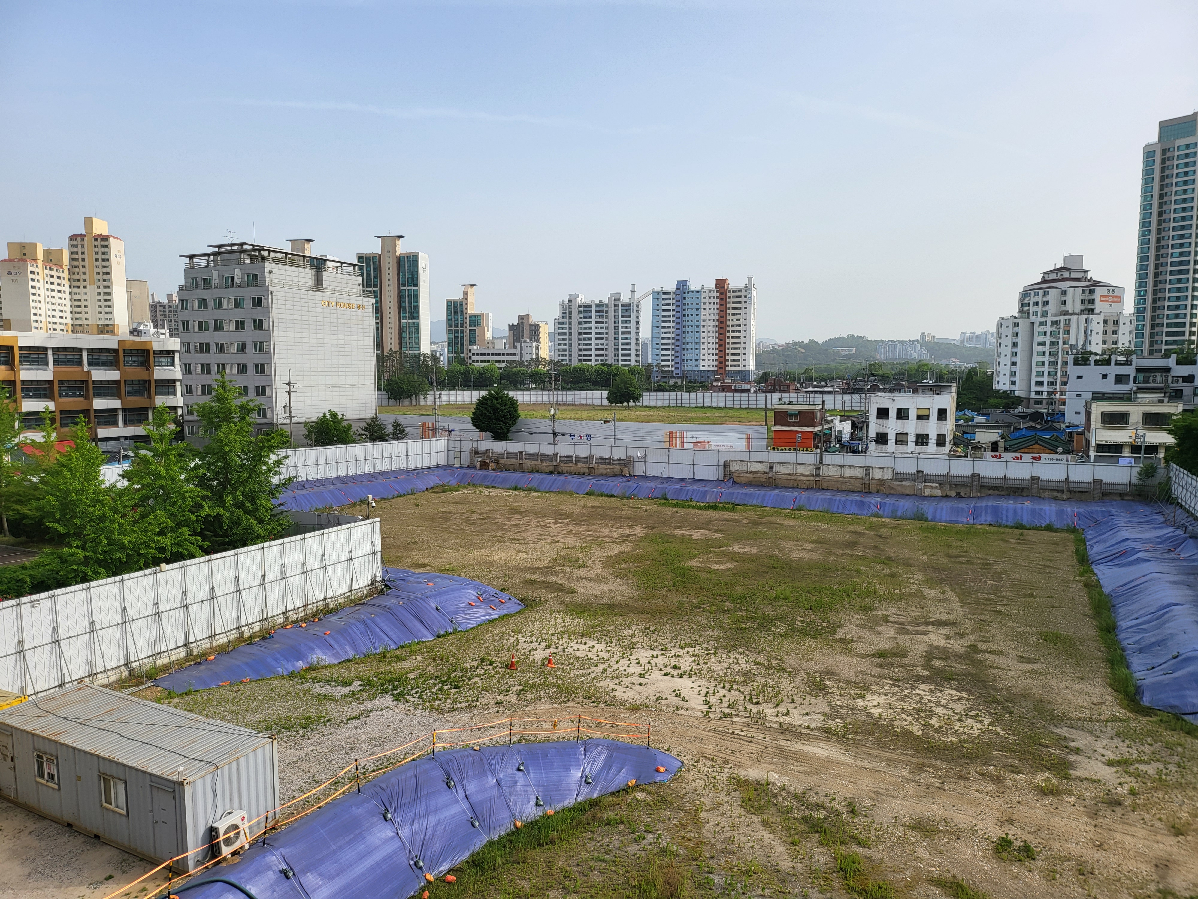건물 외관이라 도로 바로 옆에 위치하며 뒤편은 앞서 본대로 거대한 나대지가 있어 제대로 모습을 담으려면 인근 고층 빌딩을 올라 살펴야 한다.