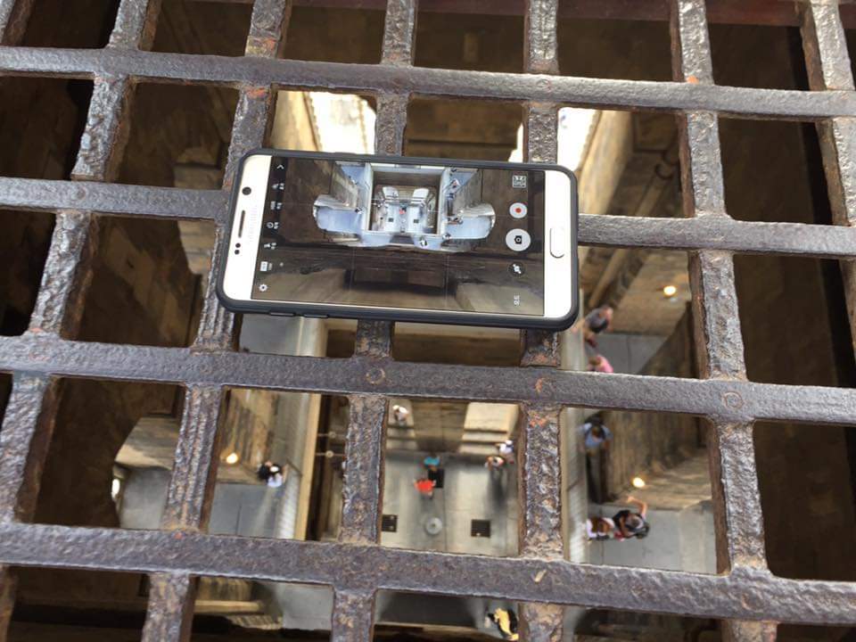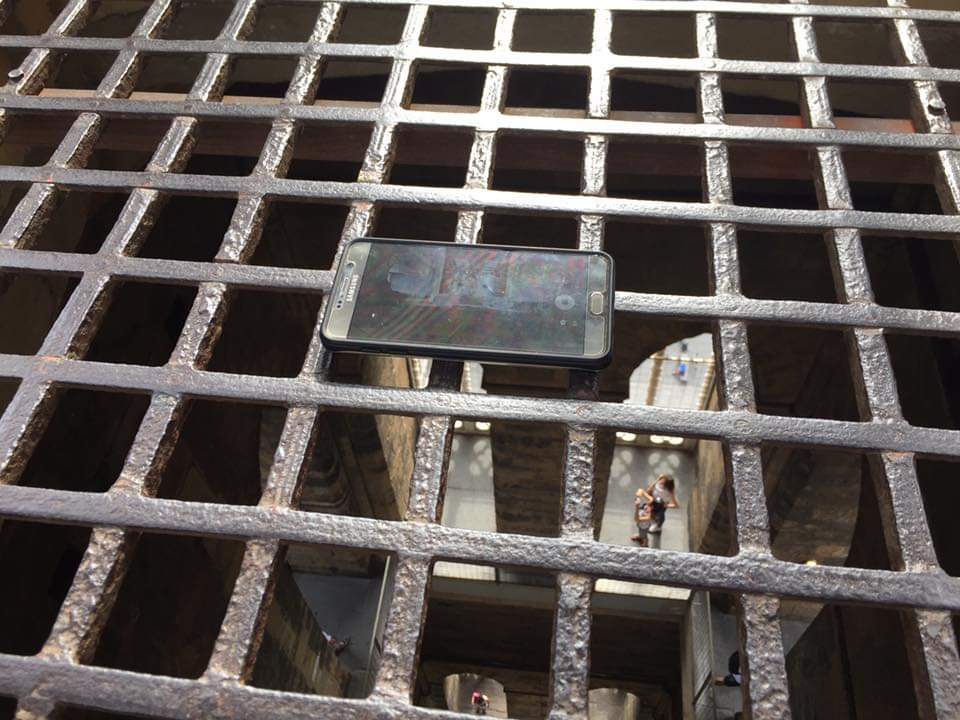 열받아 갤럭시로 저 철창 구녕으로 아래를 동영상 촬영했다. 삼성 열받으라고 아이폰으로 찍었다.