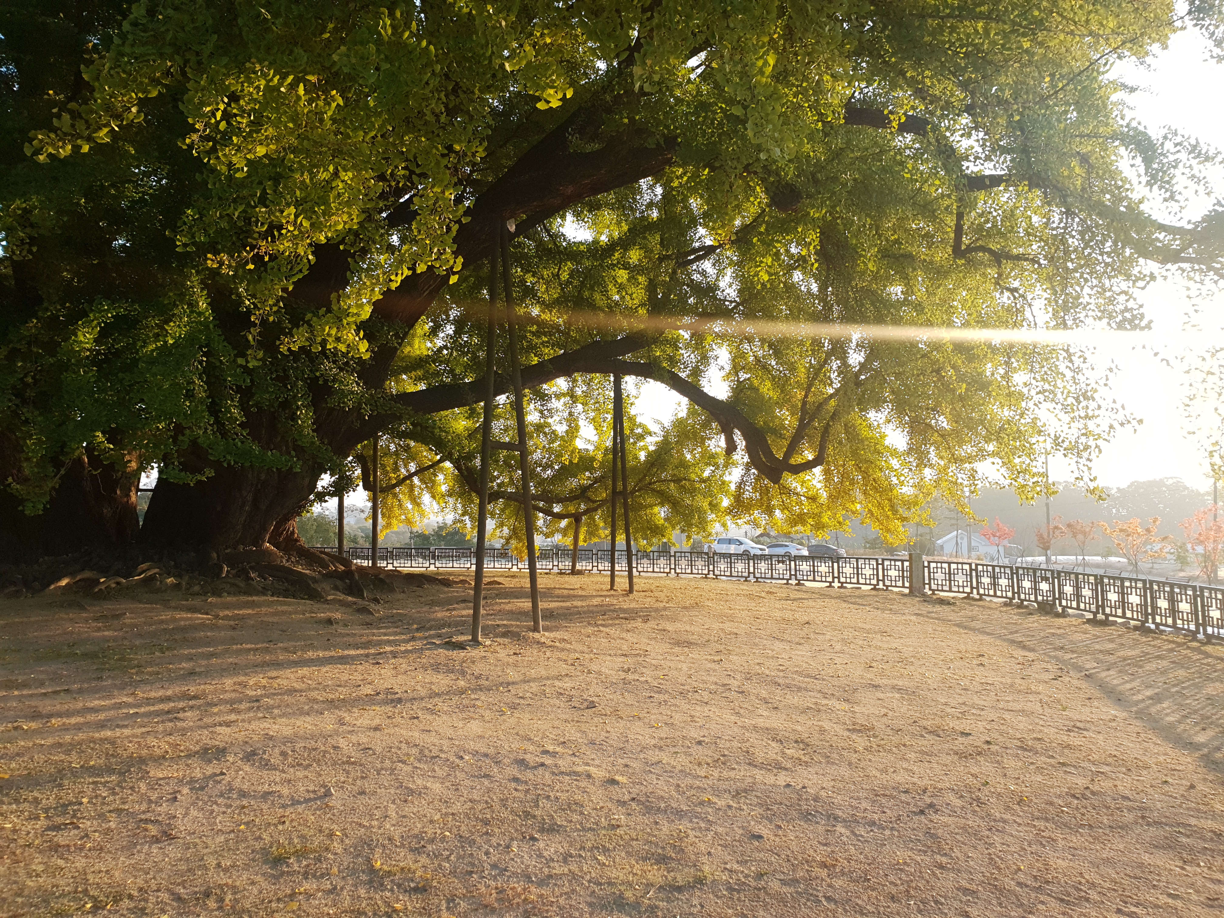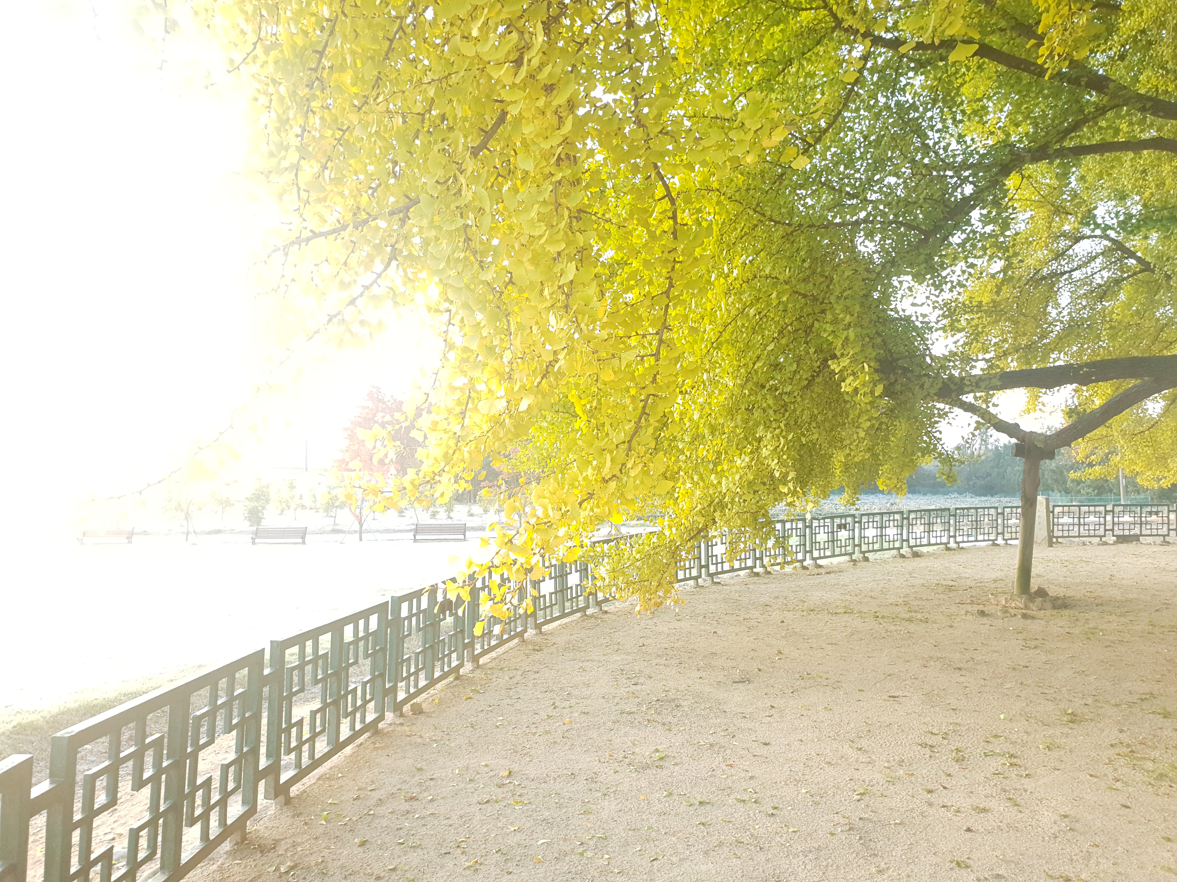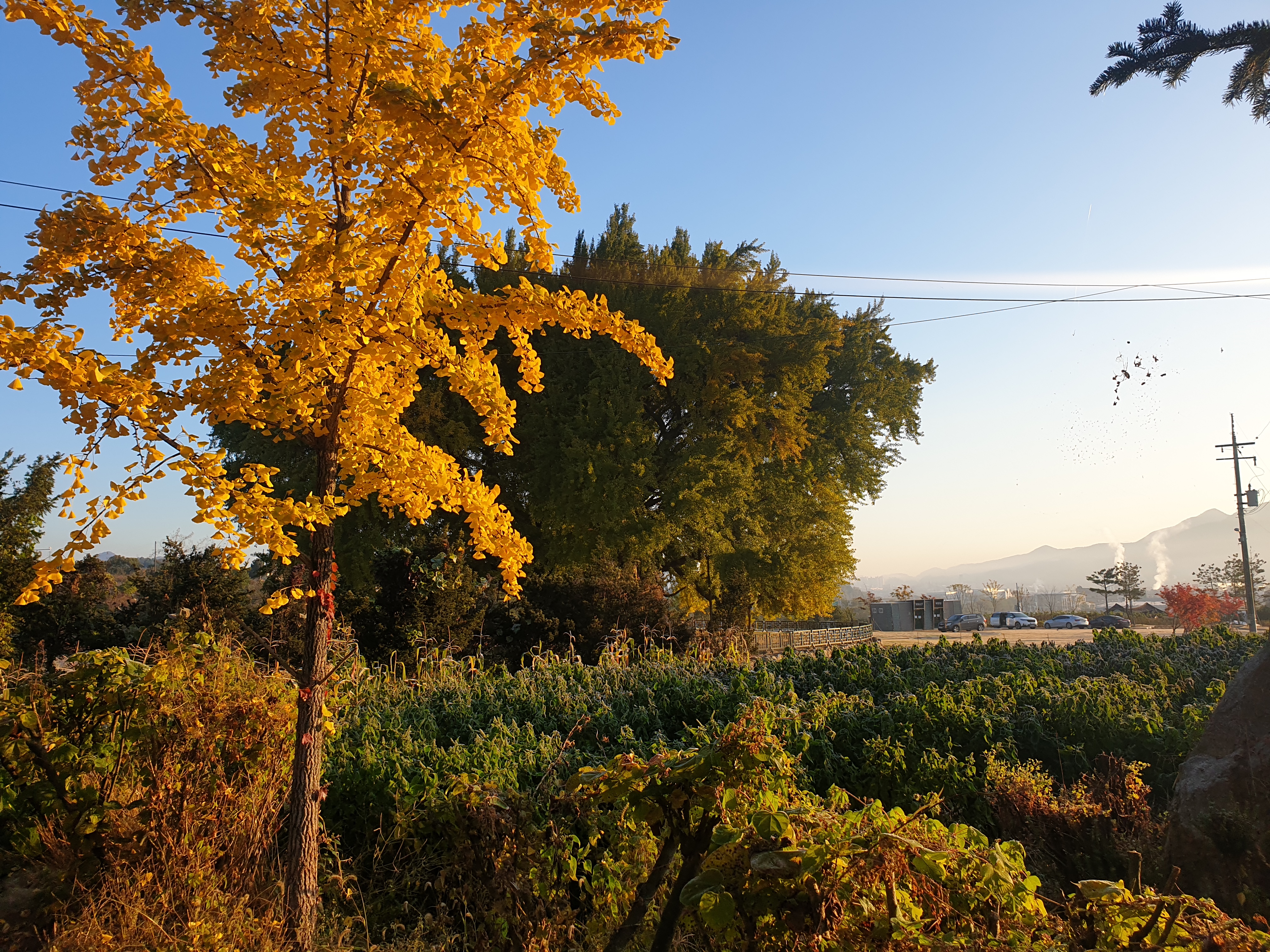 기름기 두꺼운 은행잎도 견디기엔 무겁다.