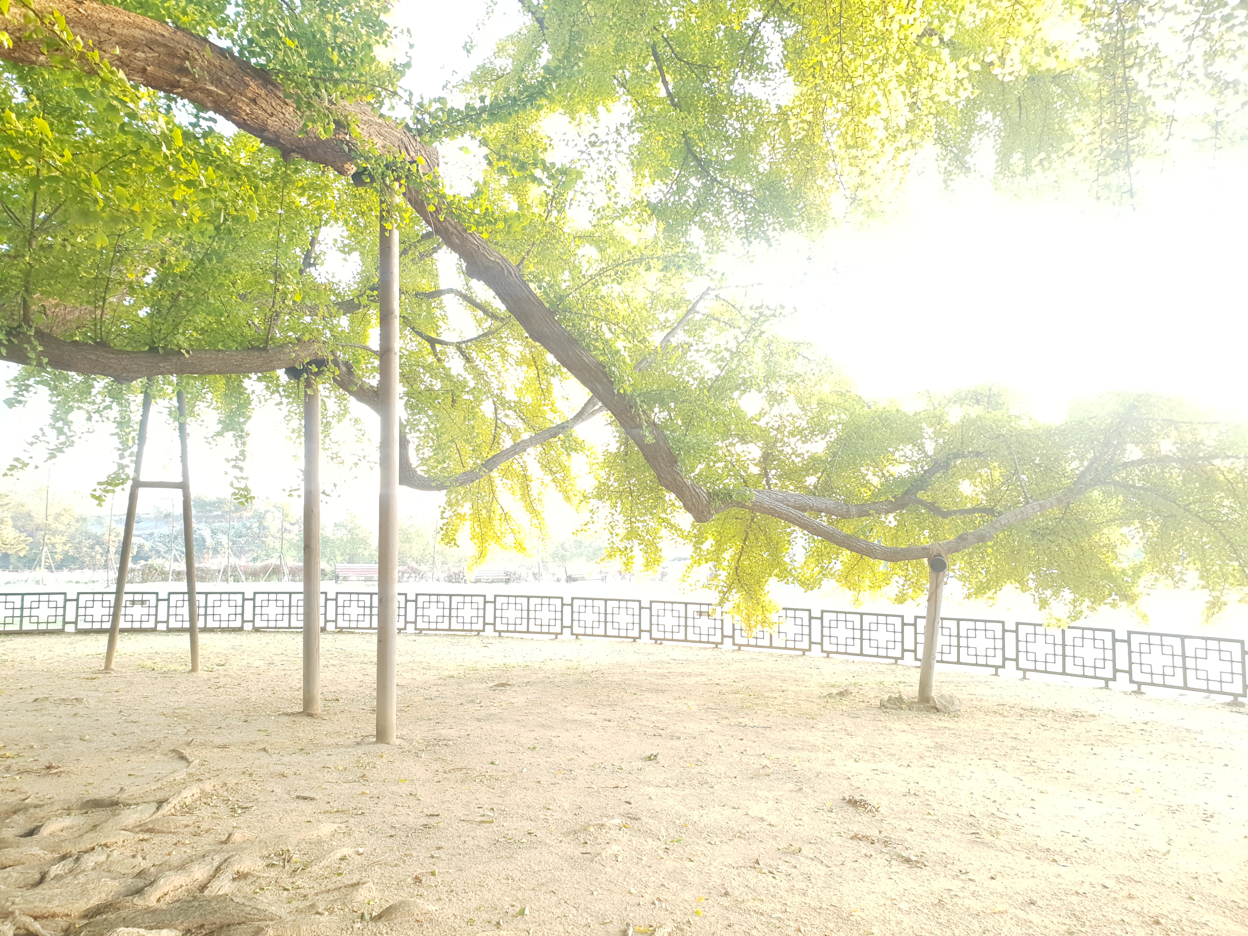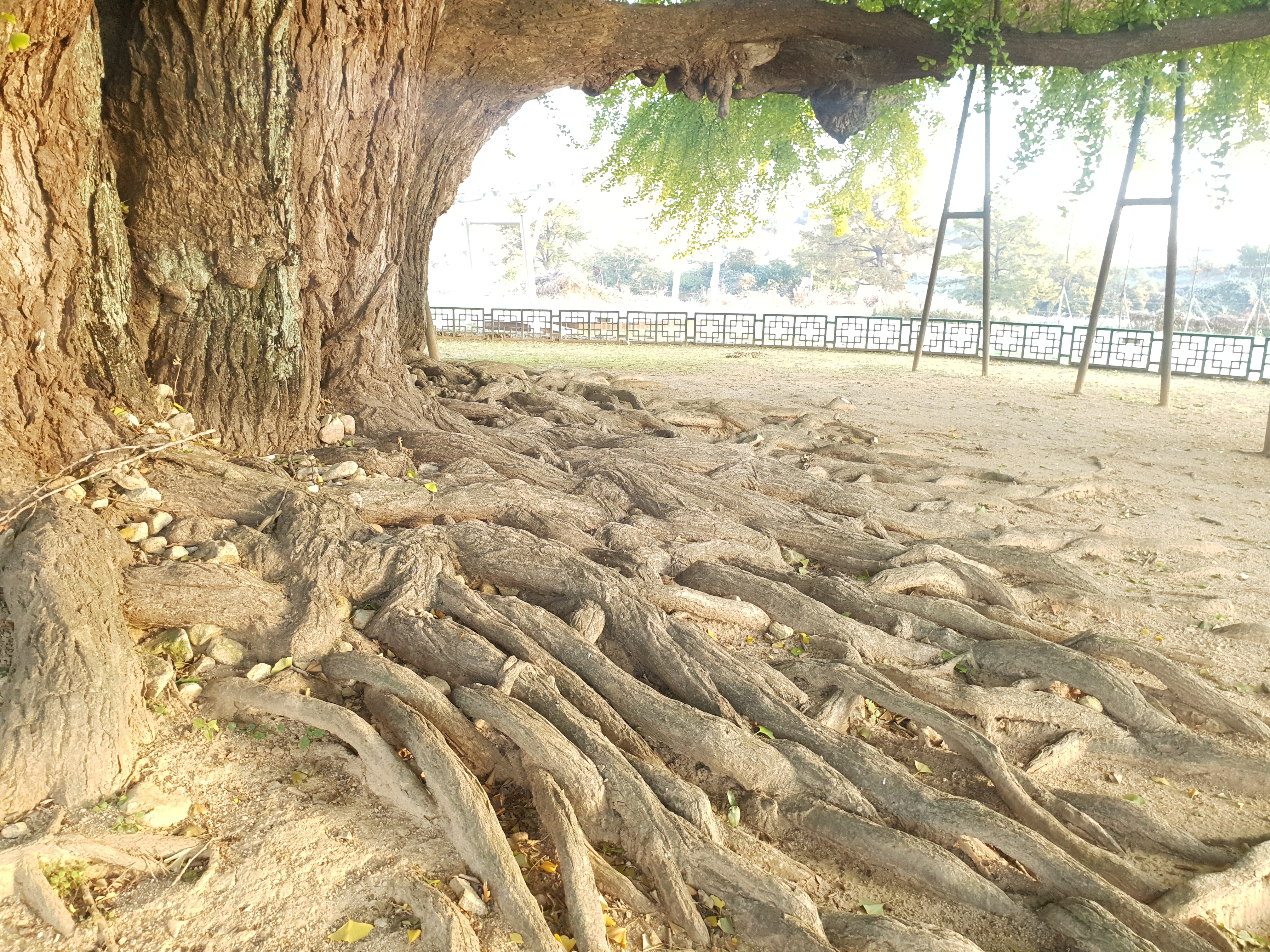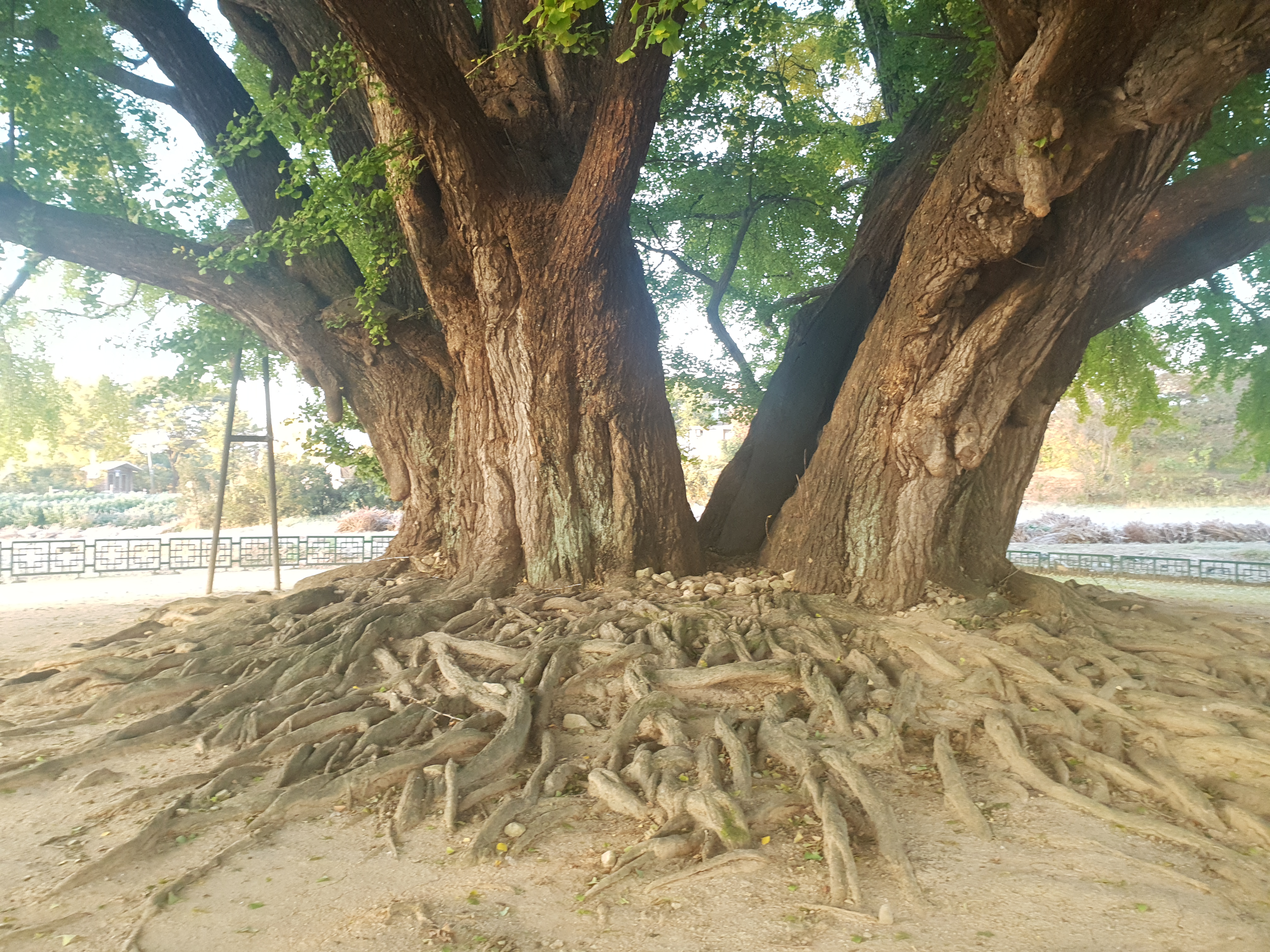 기름기 두꺼운 은행잎도 견디기엔 무겁다.
