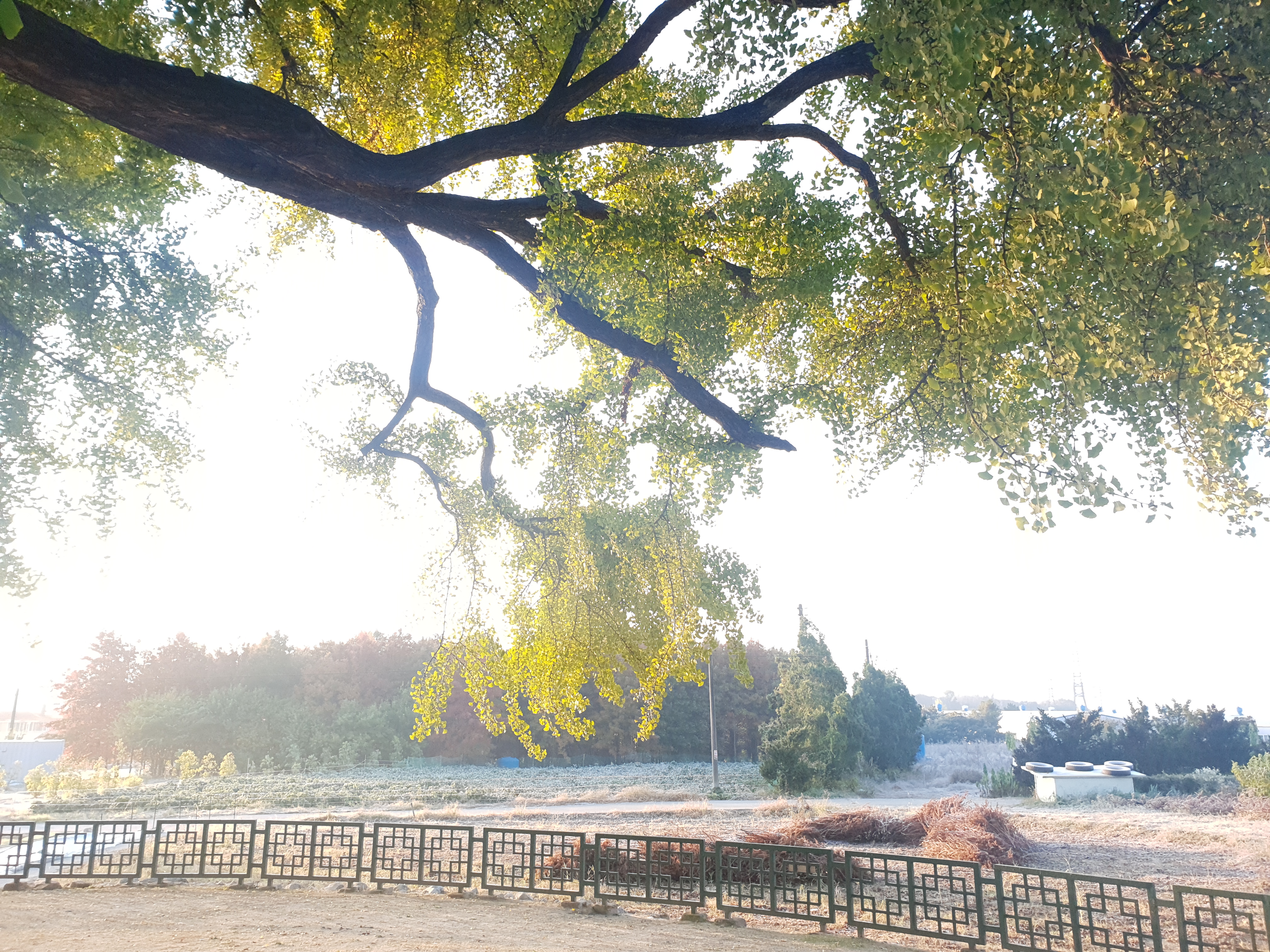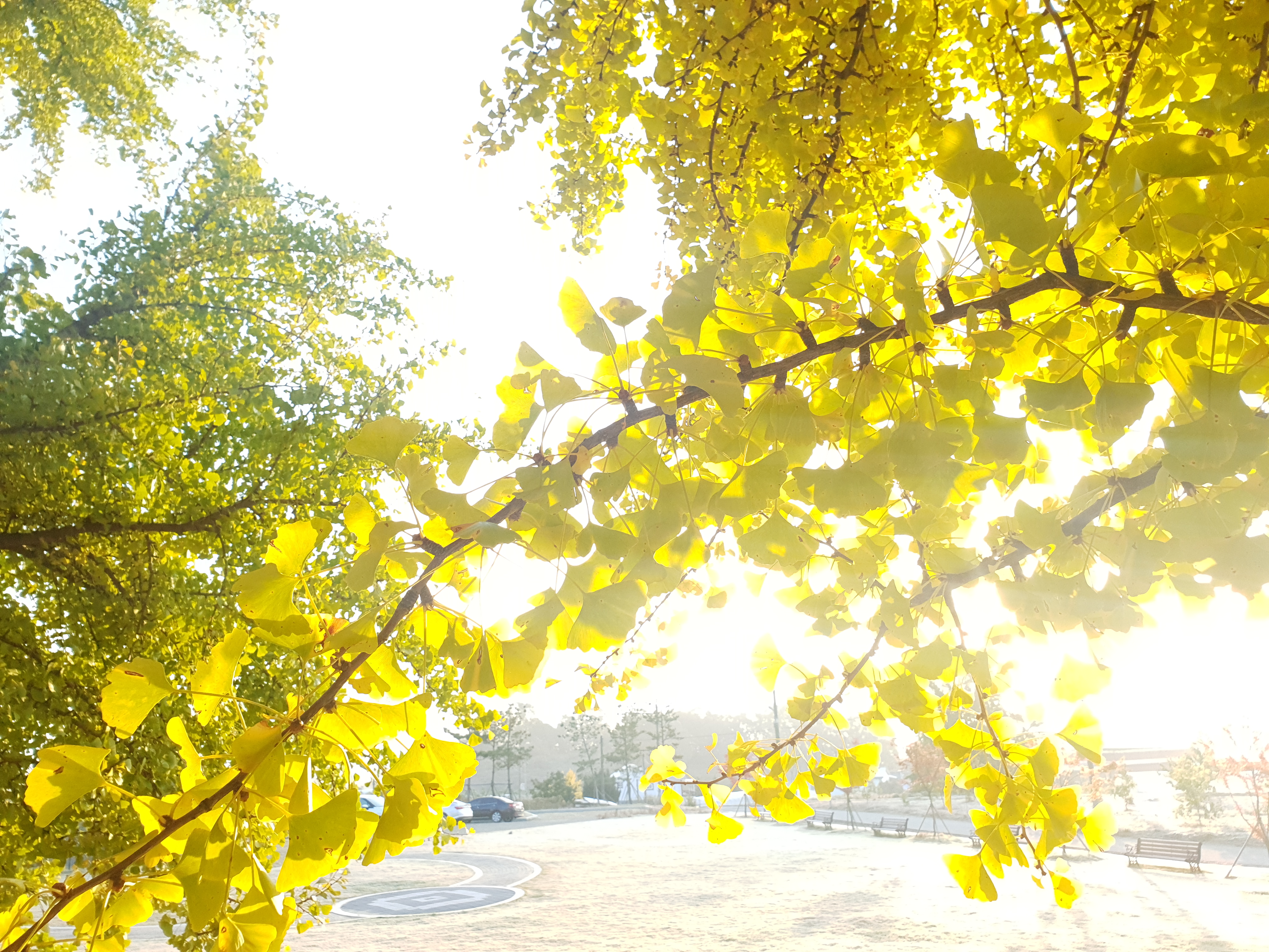 기름기 두꺼운 은행잎도 견디기엔 무겁다.