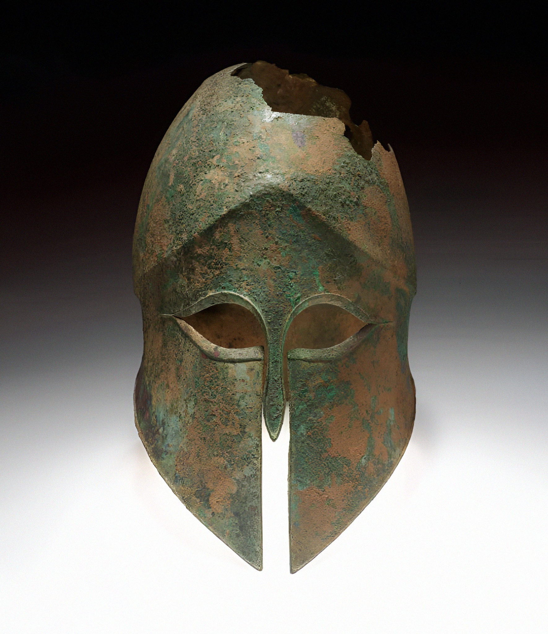 Greek Corinthian type bronze helmet, Greece, 500-490 BC.