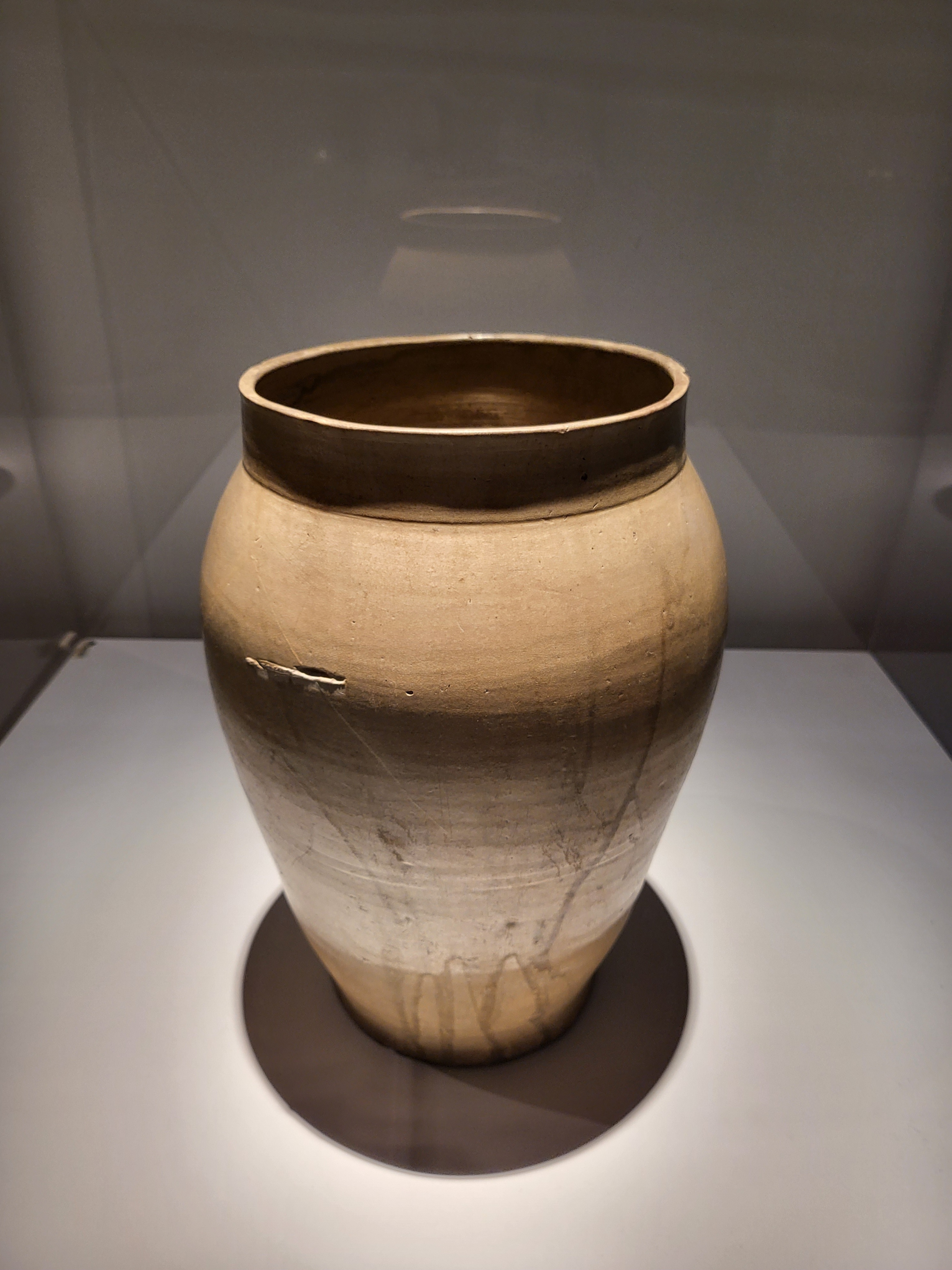 With the form and glaze of the jar shows the strong influence of celadon ware from Yue, one of the Five Great Kilns of the Song dynasty, the jar provides valuable clues about the early phase of Goryeo celadon.