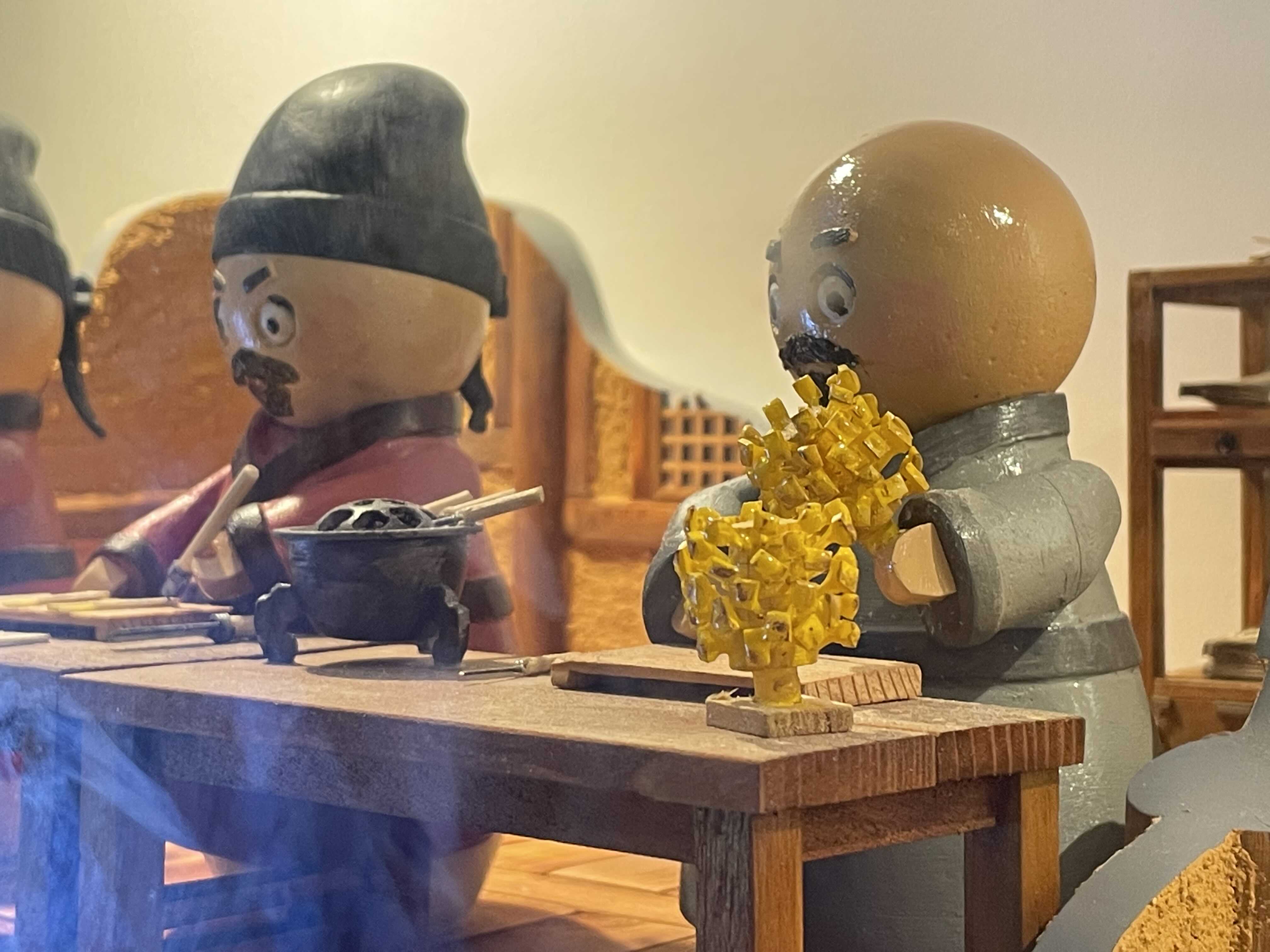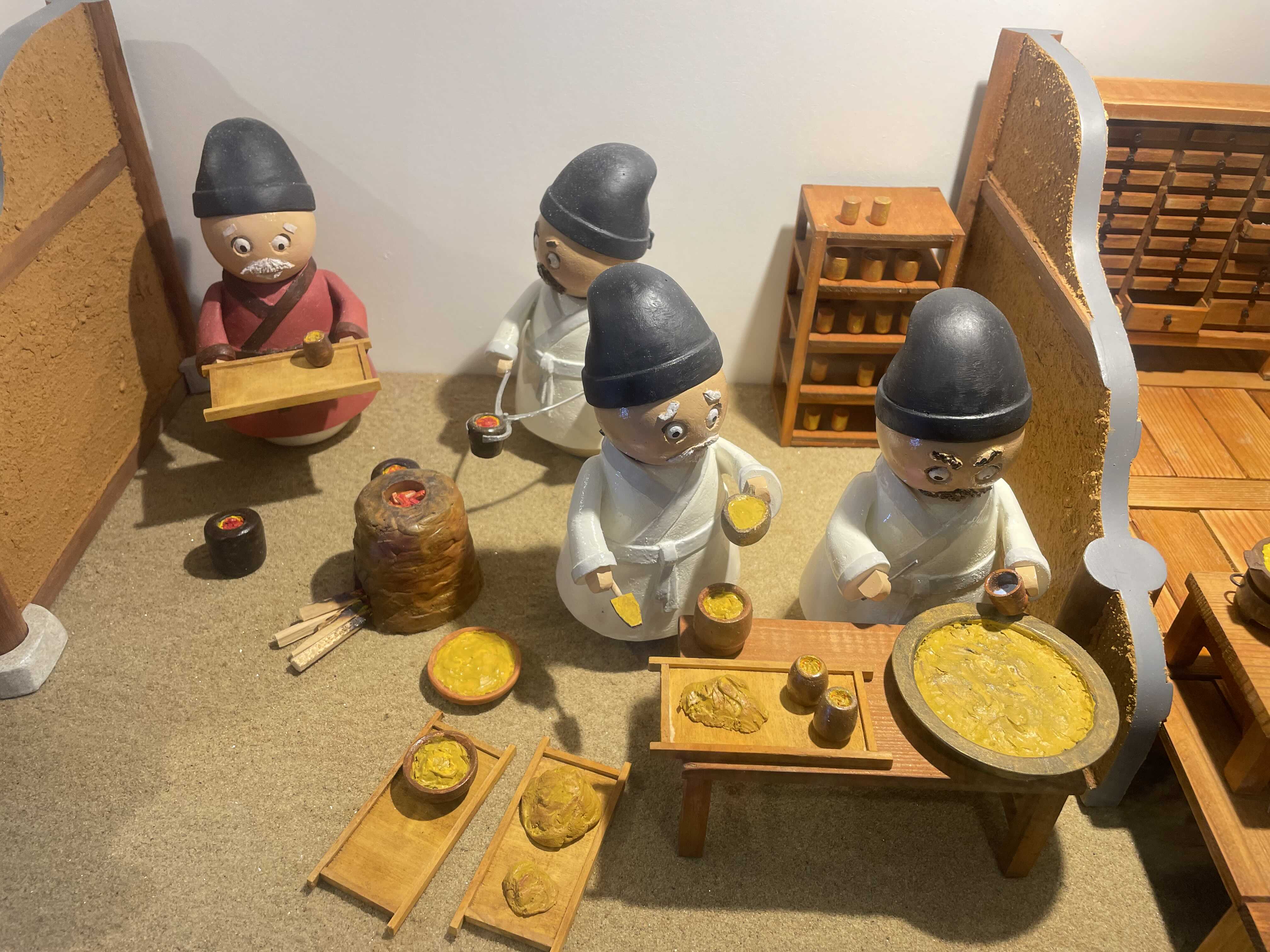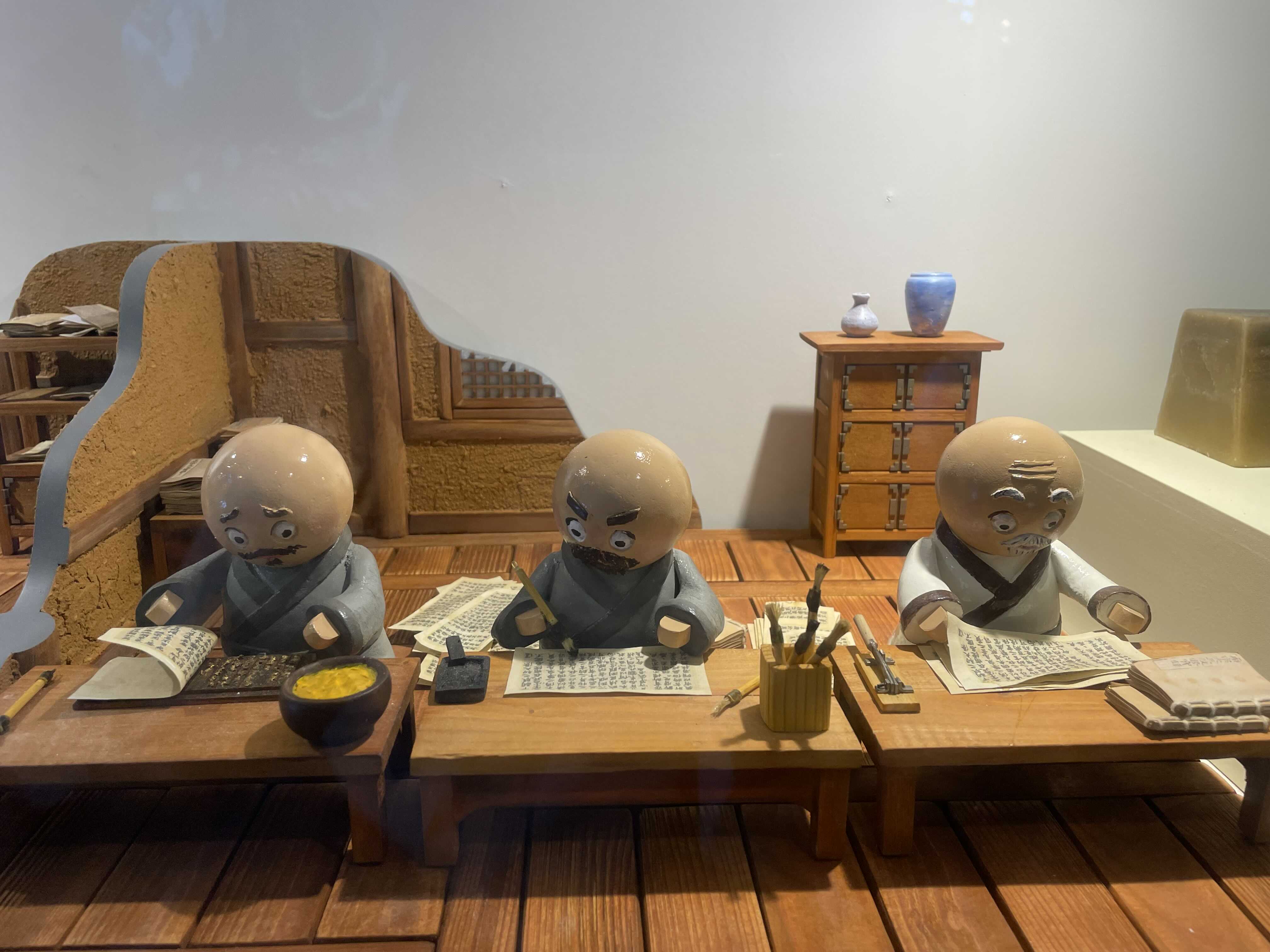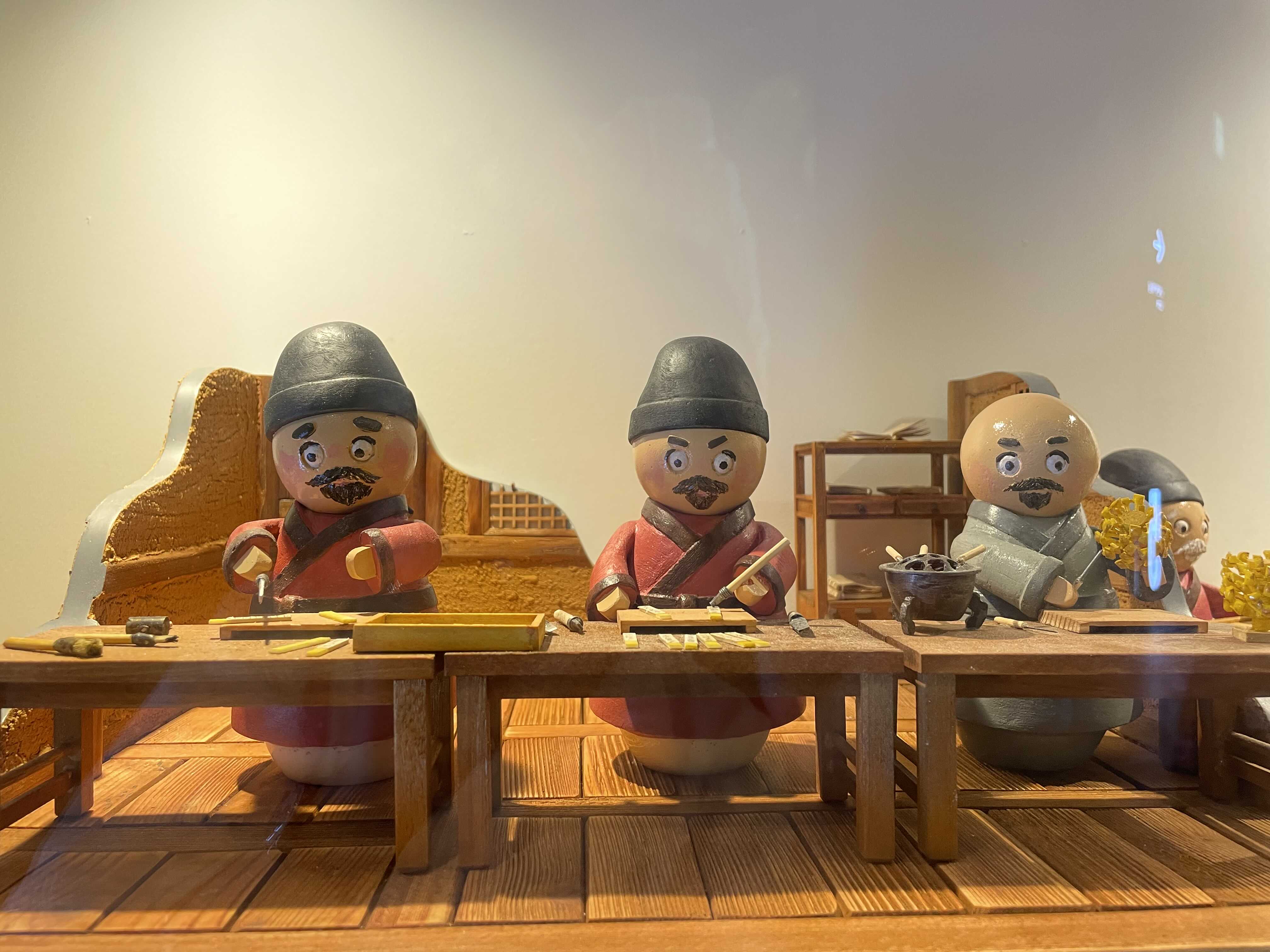 금속활자 제작 과정 일부를 모형으로 만들어 전시했습니다. 귀여운 인형들이 보입니다.