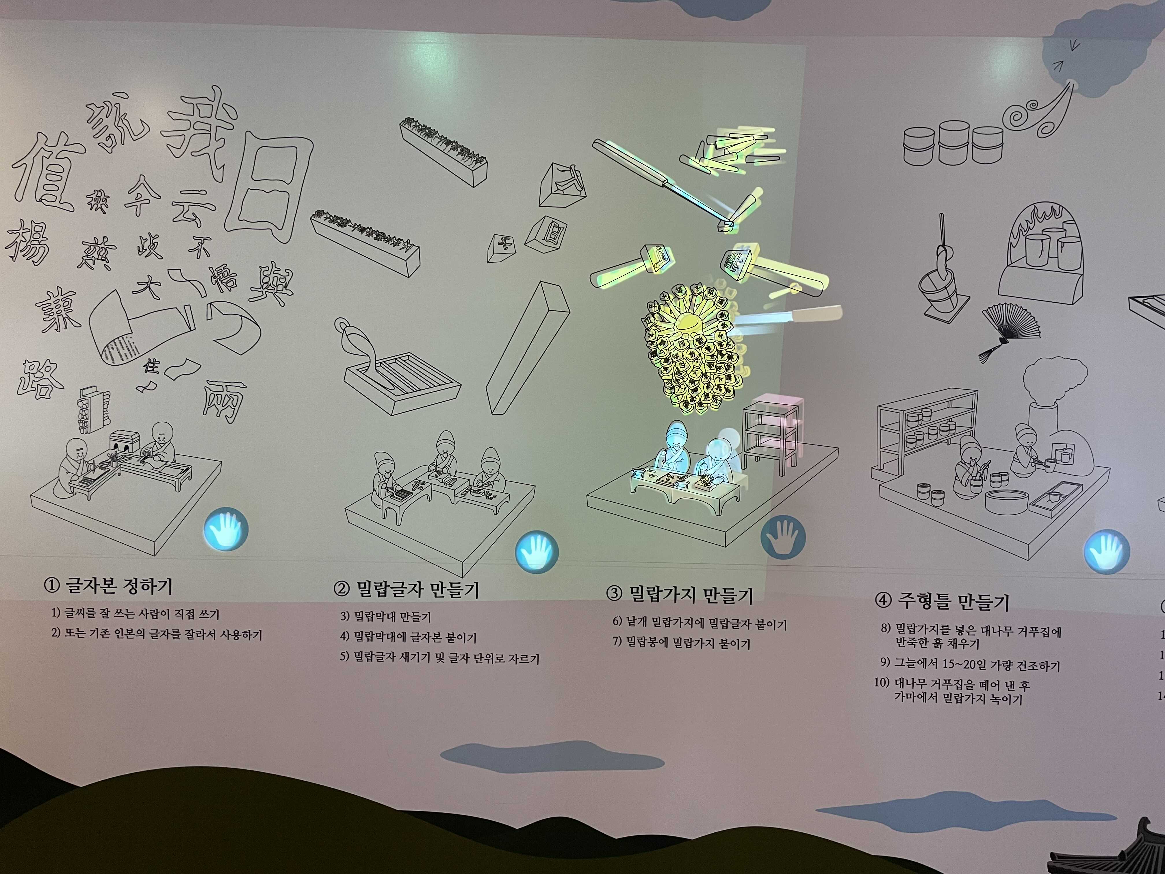 하지만 금속활자 제작과정 전체영상도 바로 같이 볼 수 있으니, 전시 볼 때 참고하시면 좋겠습니다.