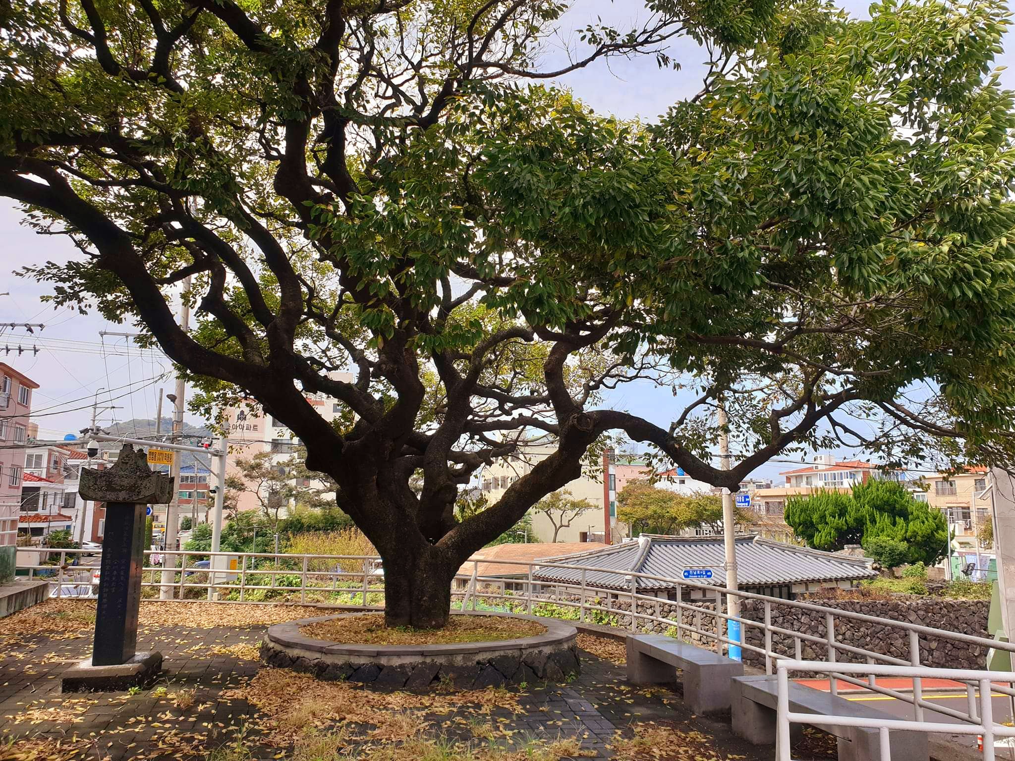 집을 둘러싼 돌담을 한 반 바퀴쯤 돌았을까, 높직한 축대 위에 그럴 듯한 나무 하나가 눈에 띕니다. 올라가 보니 우영우도 감탄할 만한 수세樹勢의 팽나무 한 그루, 그리고 비석 몇 개가 있네요.