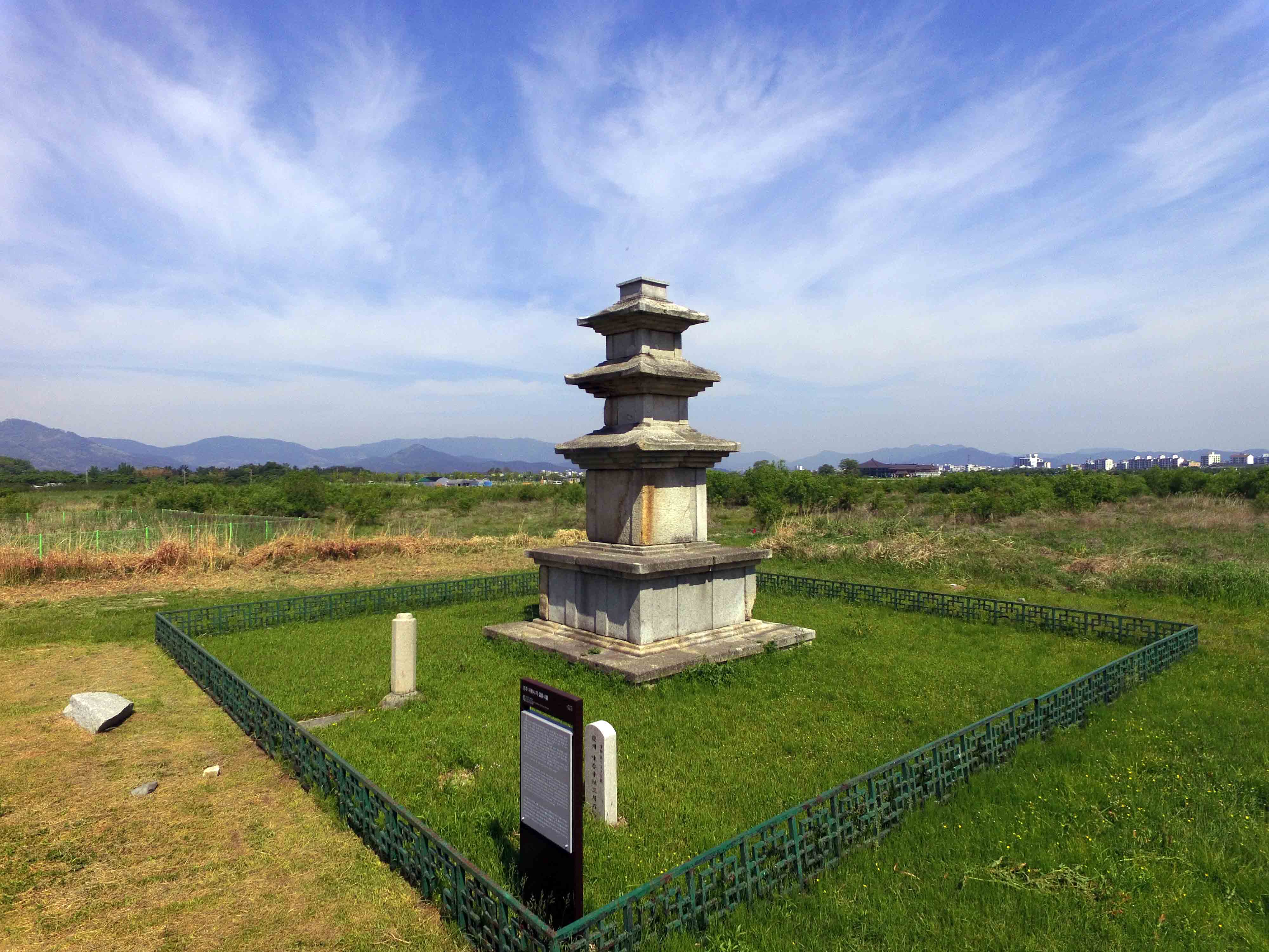 이것이 전부다. 실제 미탄사 자리가 어딘지는 실상 오리무중이었다. 다만, 황룡사 남쪽이라 했고, 또 그 남쪽 인접 지점 드넓은 경주평야 한가운데 누가 봐도 신라시대 흔적인 삼층석탑이 우람하게 있어 이곳이 미탄사 터일 것이라는 심증만 있었다.