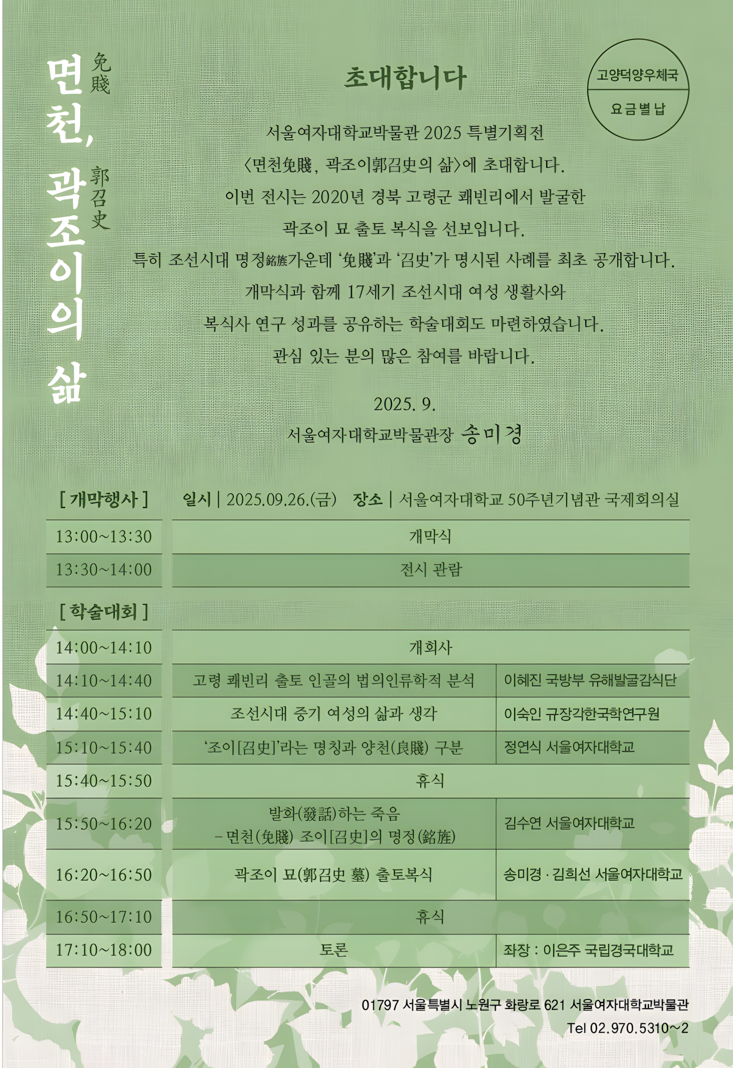 듣자니 서울여대박물관이 이번 2025 특별기획전 주인공으로 선택한 곽조이郭召史는 17세기 여성이라 하는데, 문제는 곽조이와 郭召史 사이에 심각한 불균형이 발생한다는 점이다.