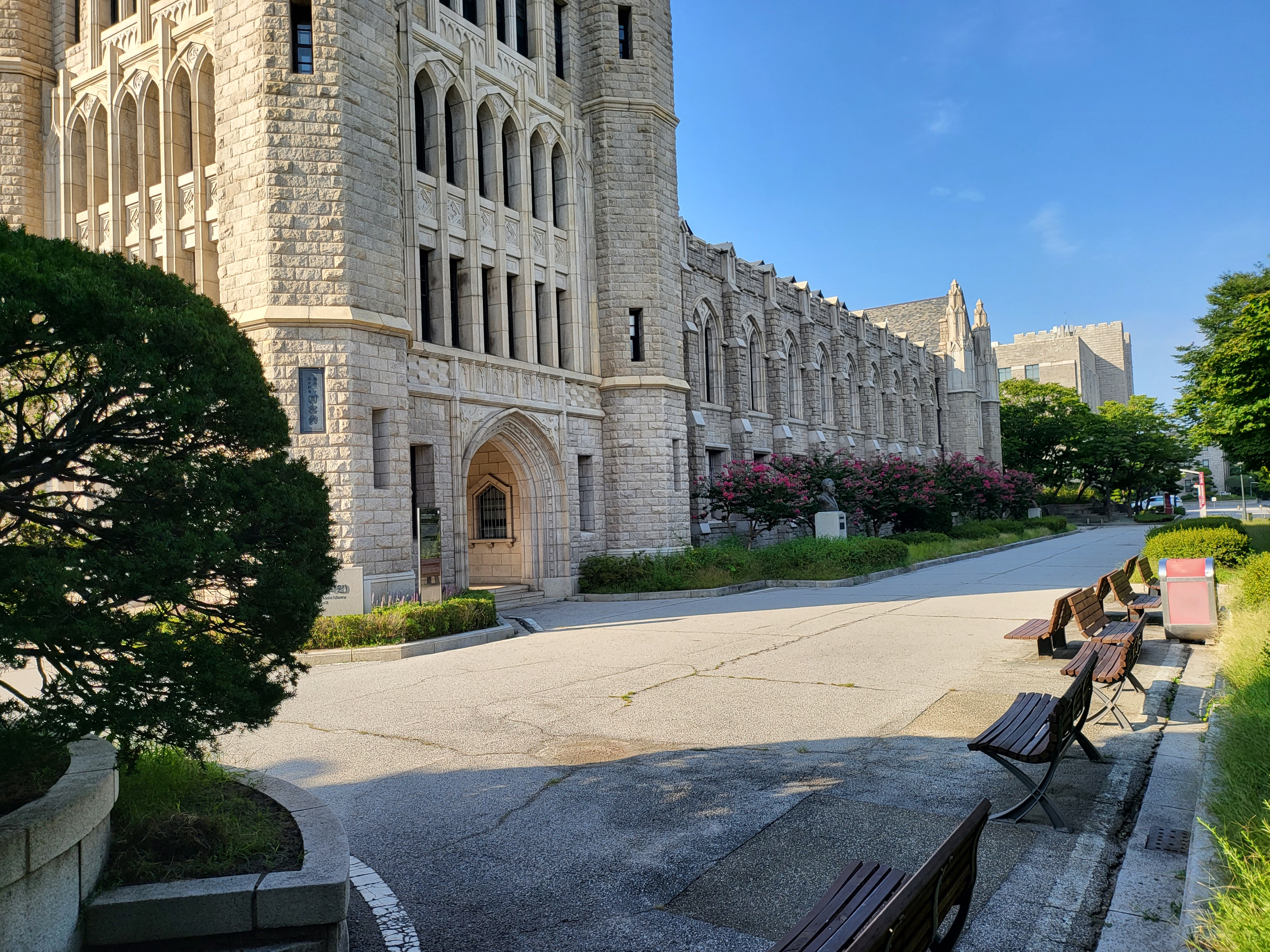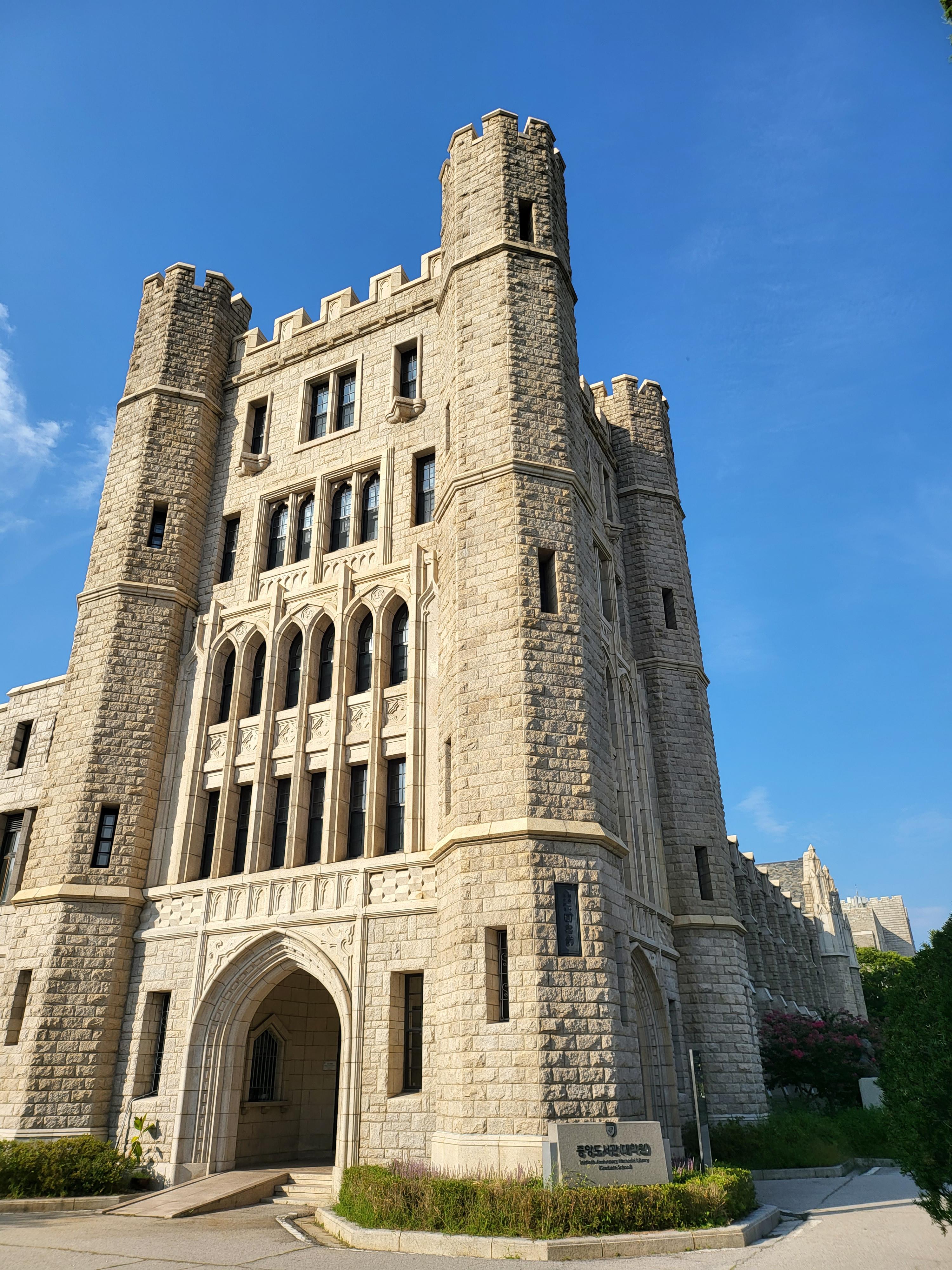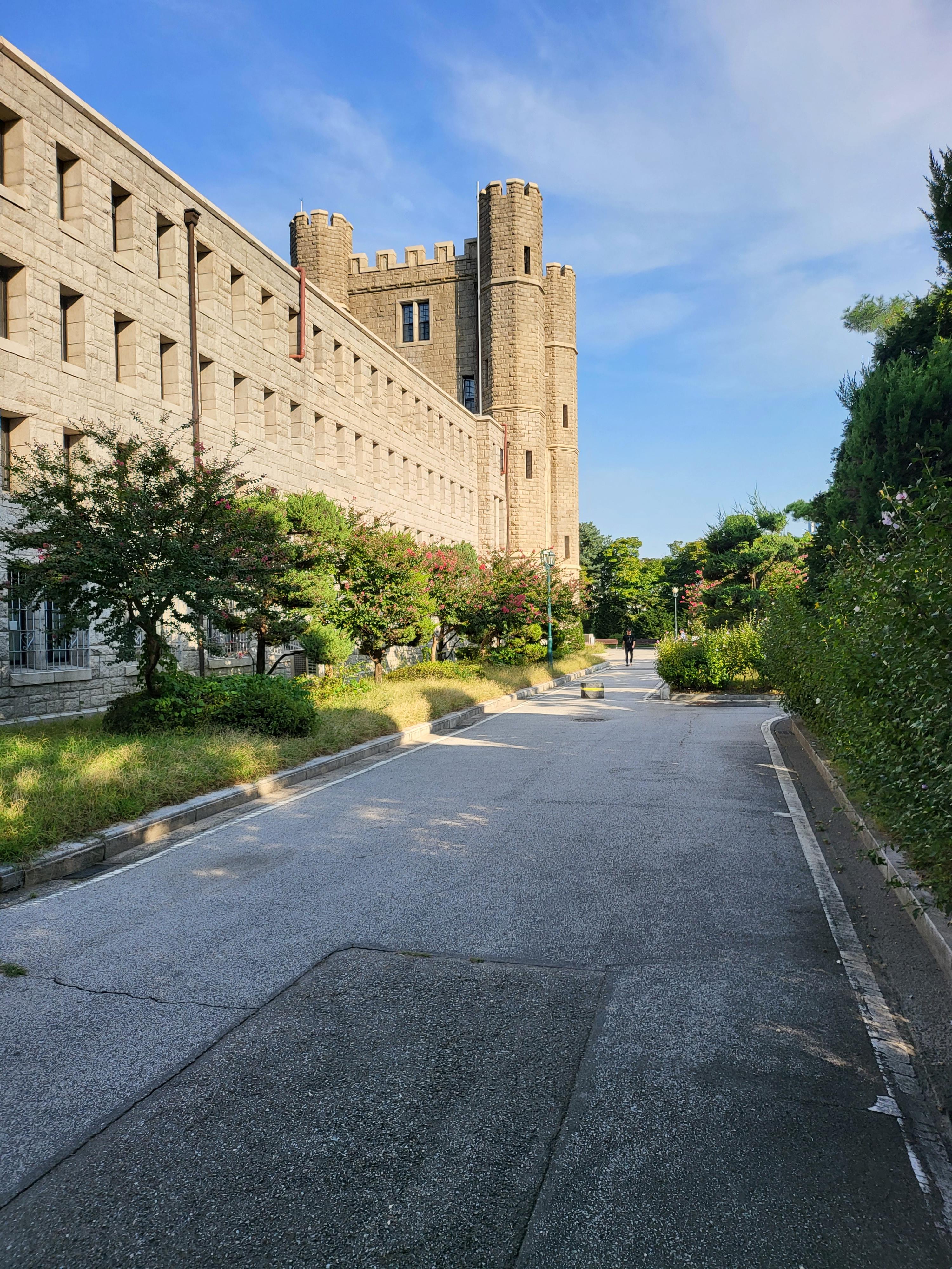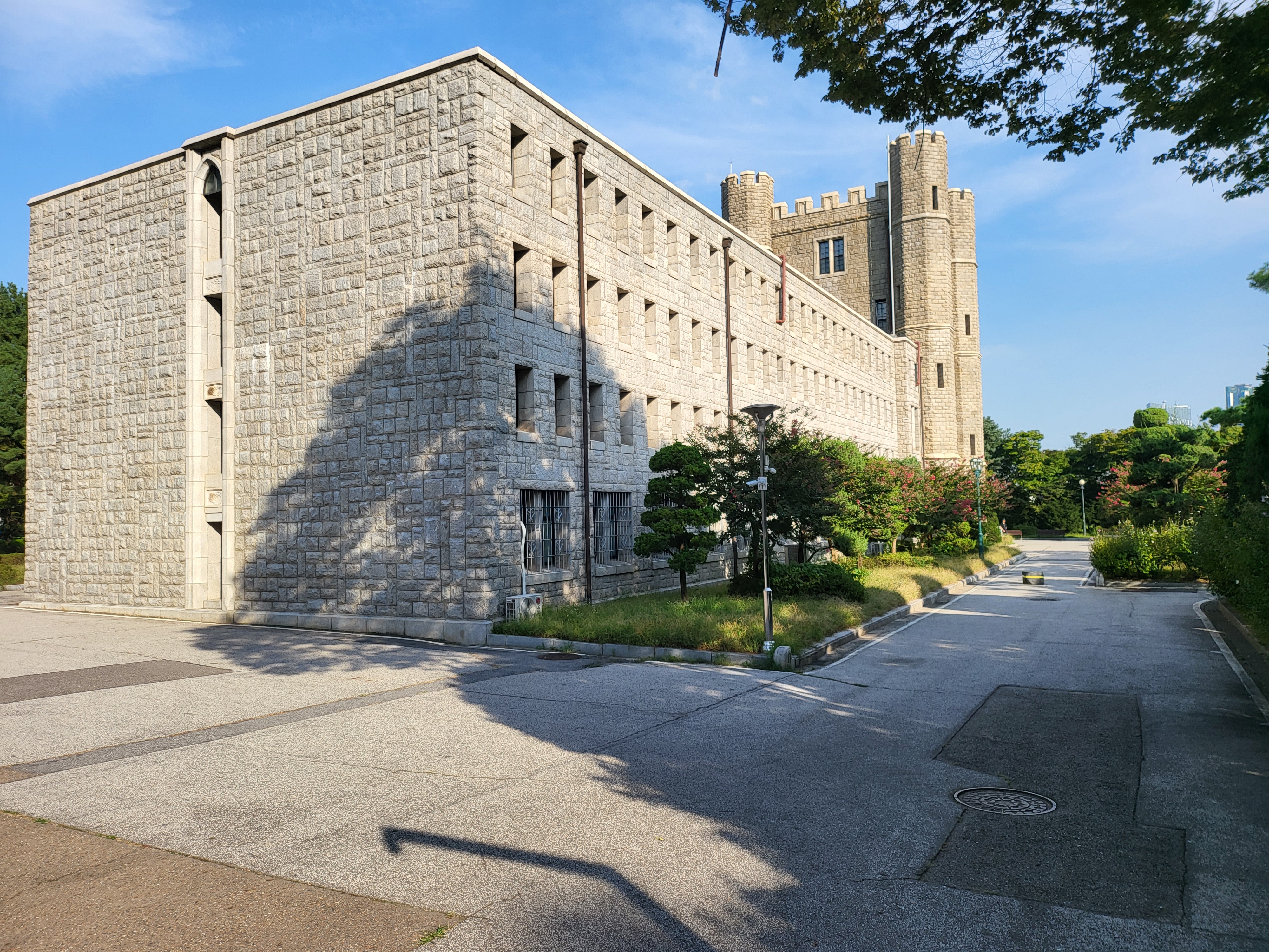 국가 사적인 고려대학교 중앙도서관 건물이라 아마도 북서쪽일 터인데 그쪽에서 바라본 모습이라