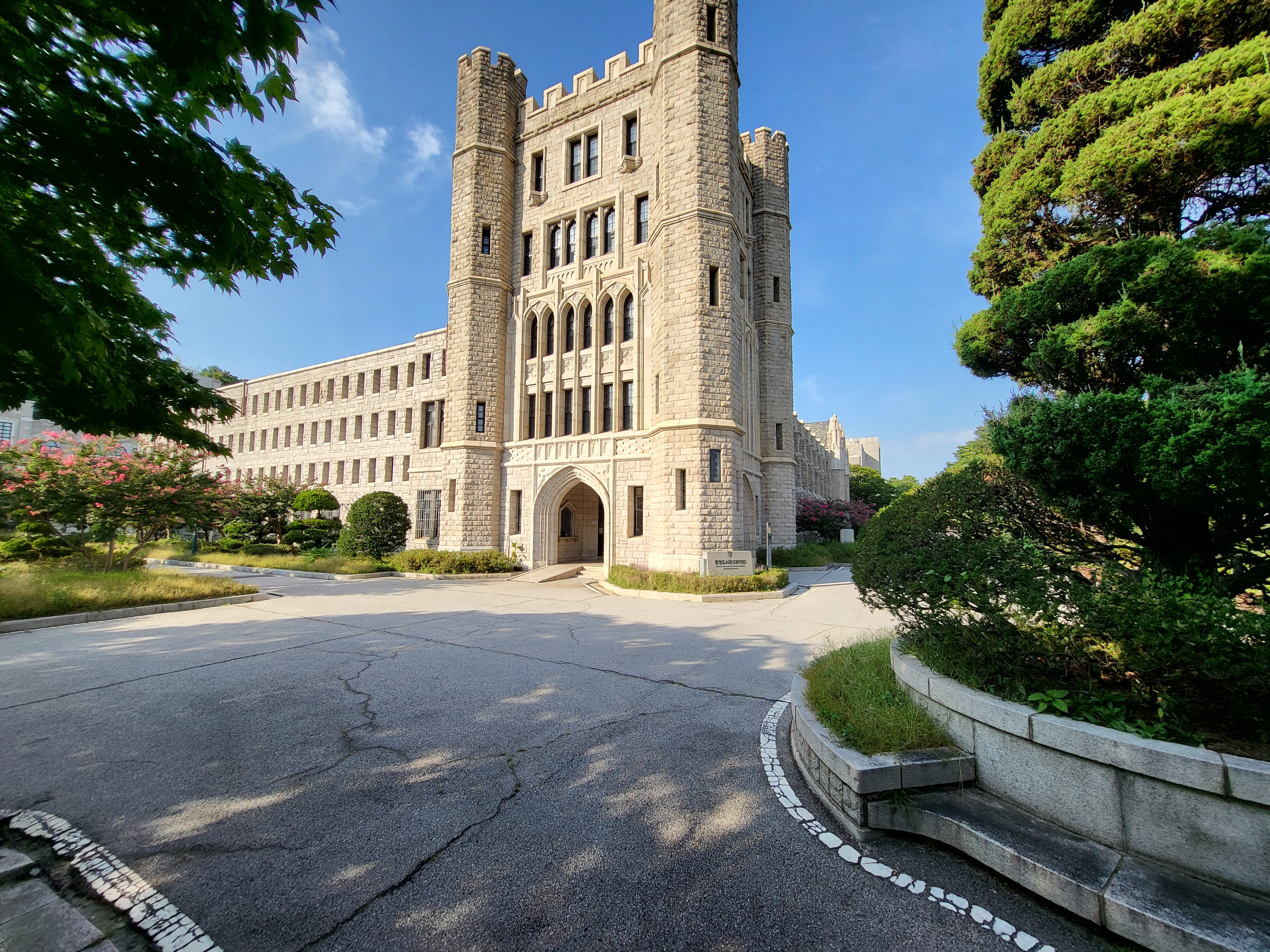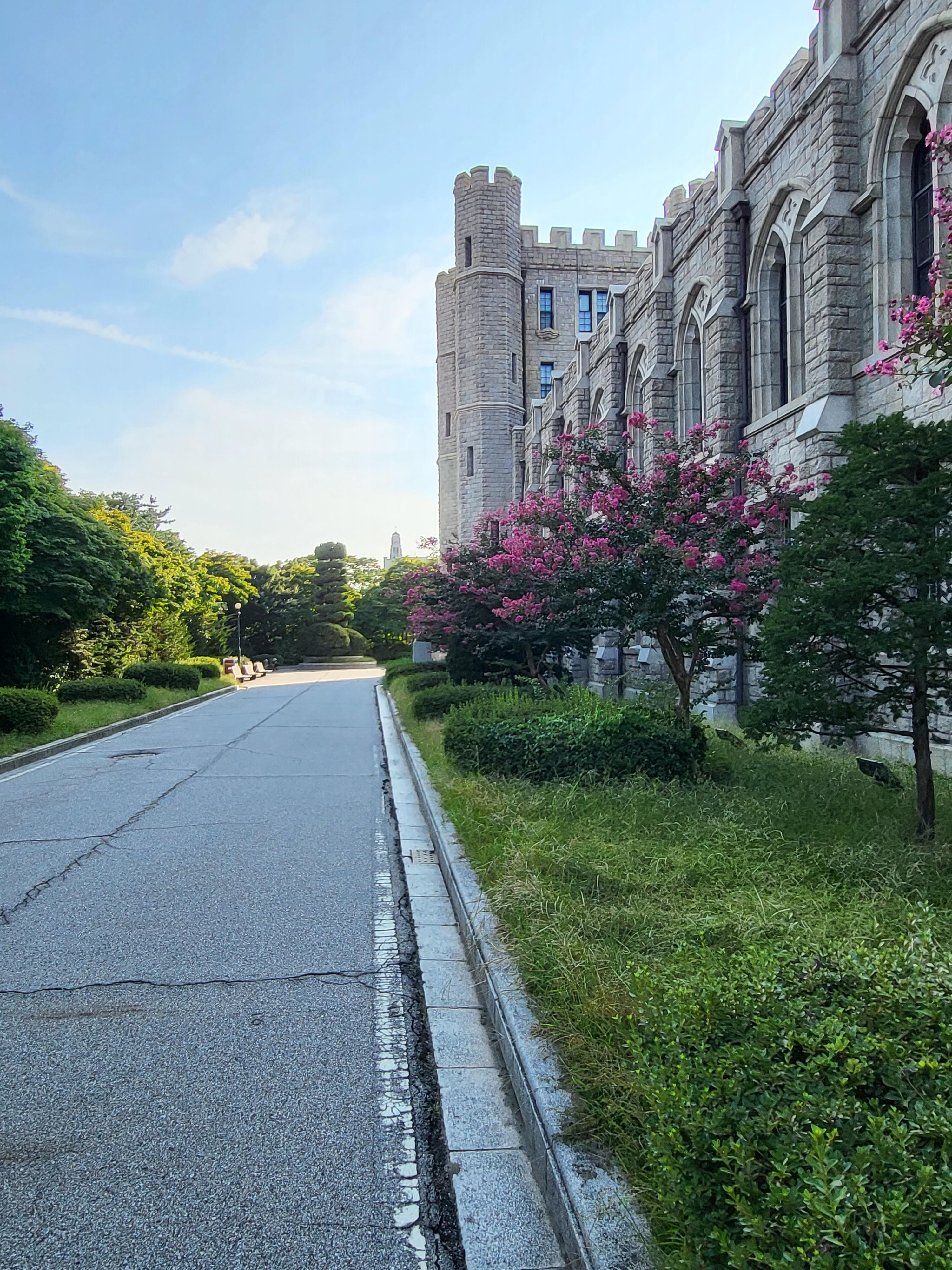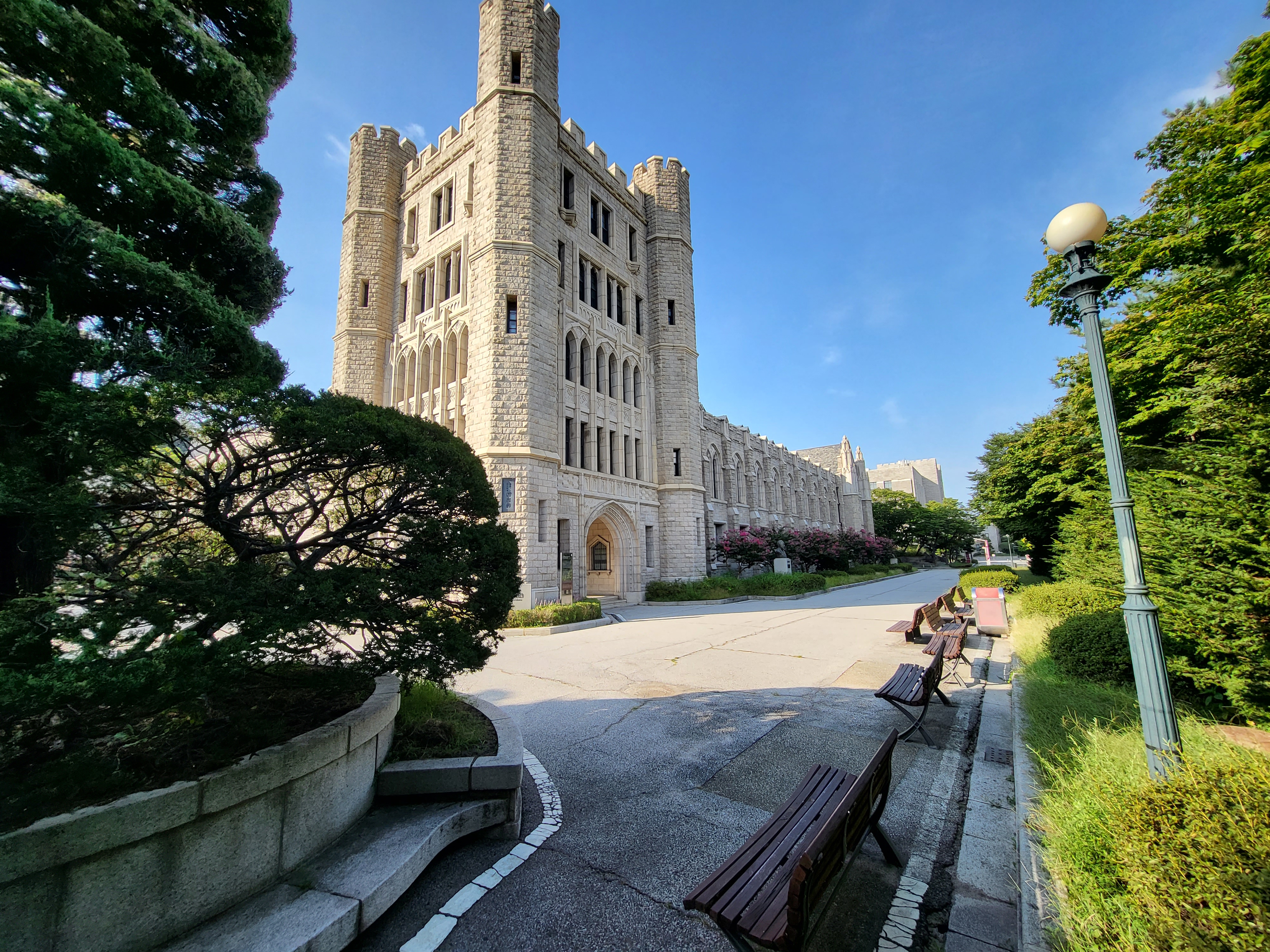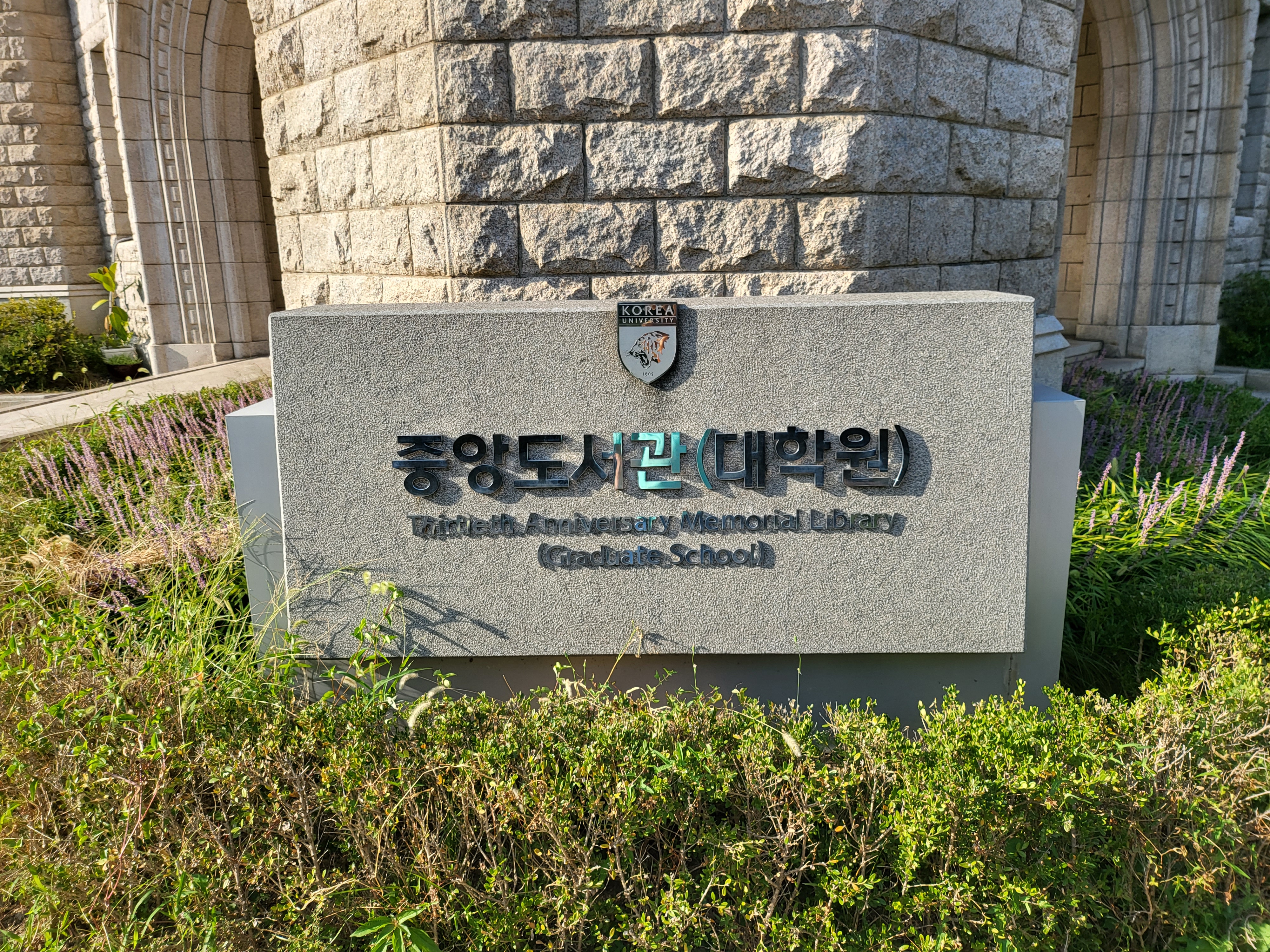 국가 사적인 고려대학교 중앙도서관 건물이라 아마도 북서쪽일 터인데 그쪽에서 바라본 모습이라