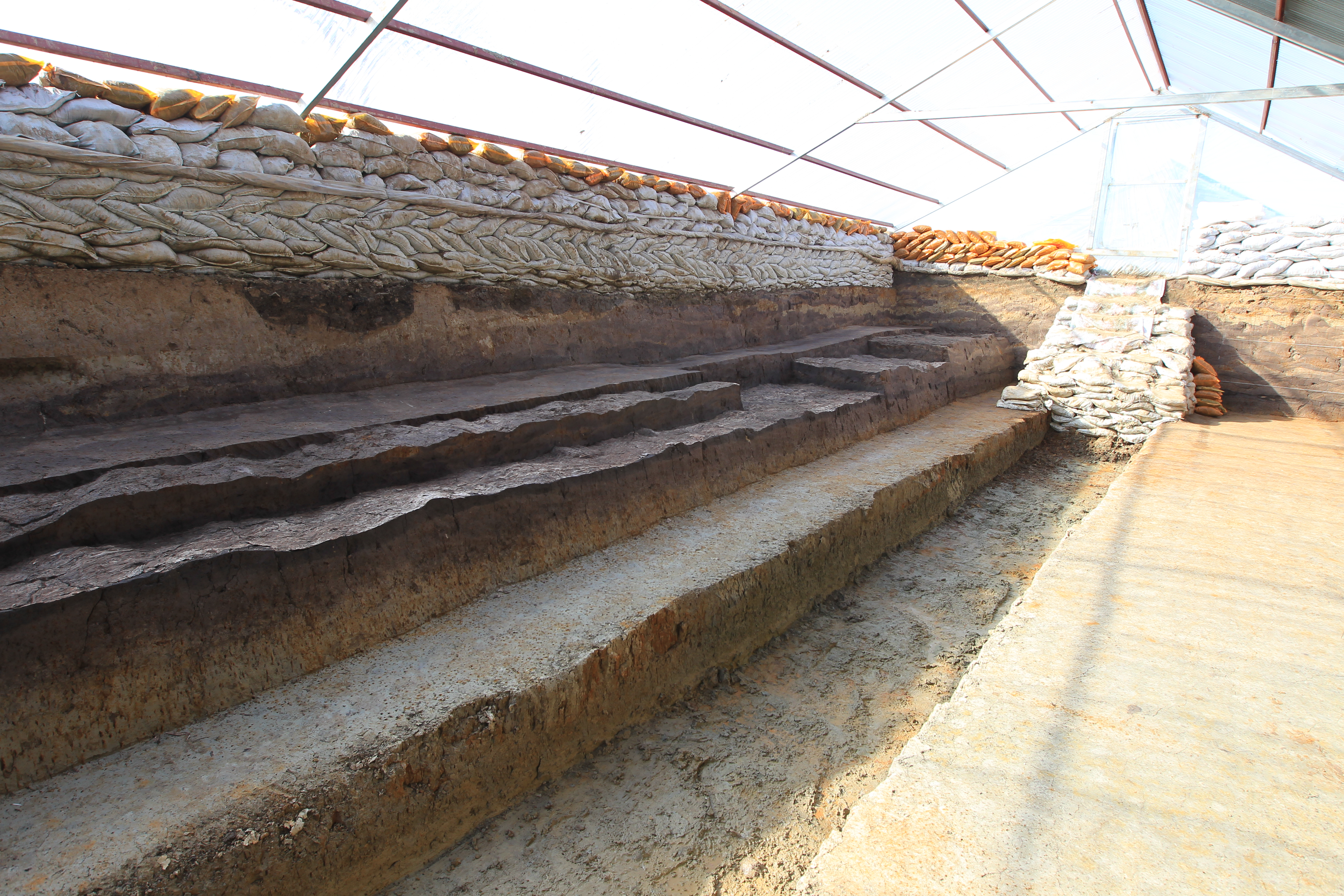 나아가 단면 토층은 약 140~300㎝ 간격으로 성분이 다른 토양이 '之'자 모양으로 맞물려 쌓인 양상을 띤다.