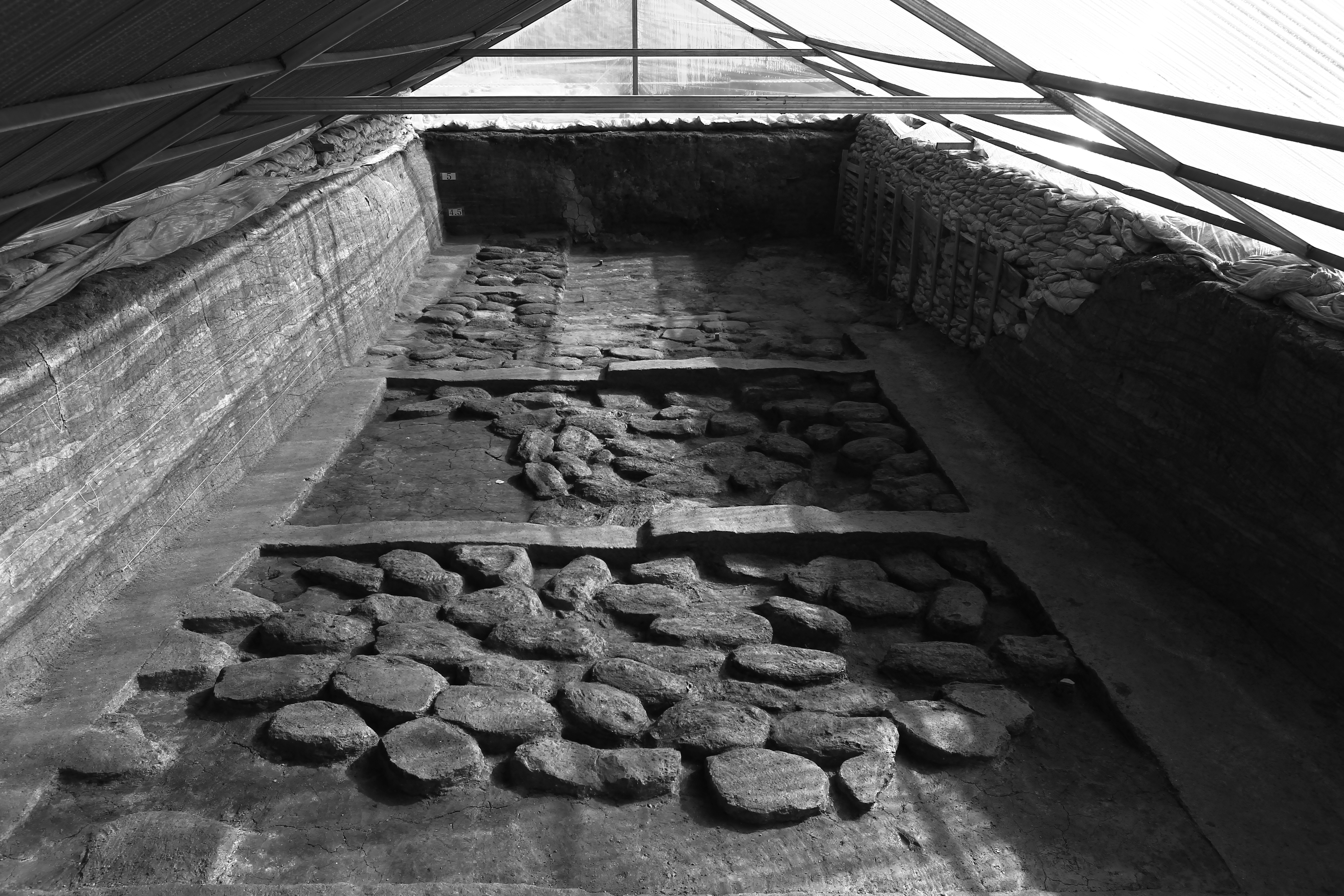 남서-북동 방향으로 열을 맞추어 배치된 초낭은 연약한 지반을 견고하게 하기 위한 목적으로 사용됐다.