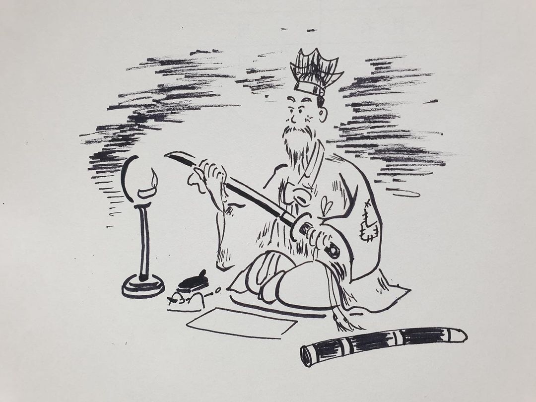 시퍼런 날을 호롱불에 비추어보자니, 추사 선생은 일본에 그렇게 많다는 일서逸書(없어진 줄 알았던 책)들이 문득 떠올랐던가보다. 이에 시를 지어 제자 박혜백에게 주었다. 계첨은 그의 자이다.