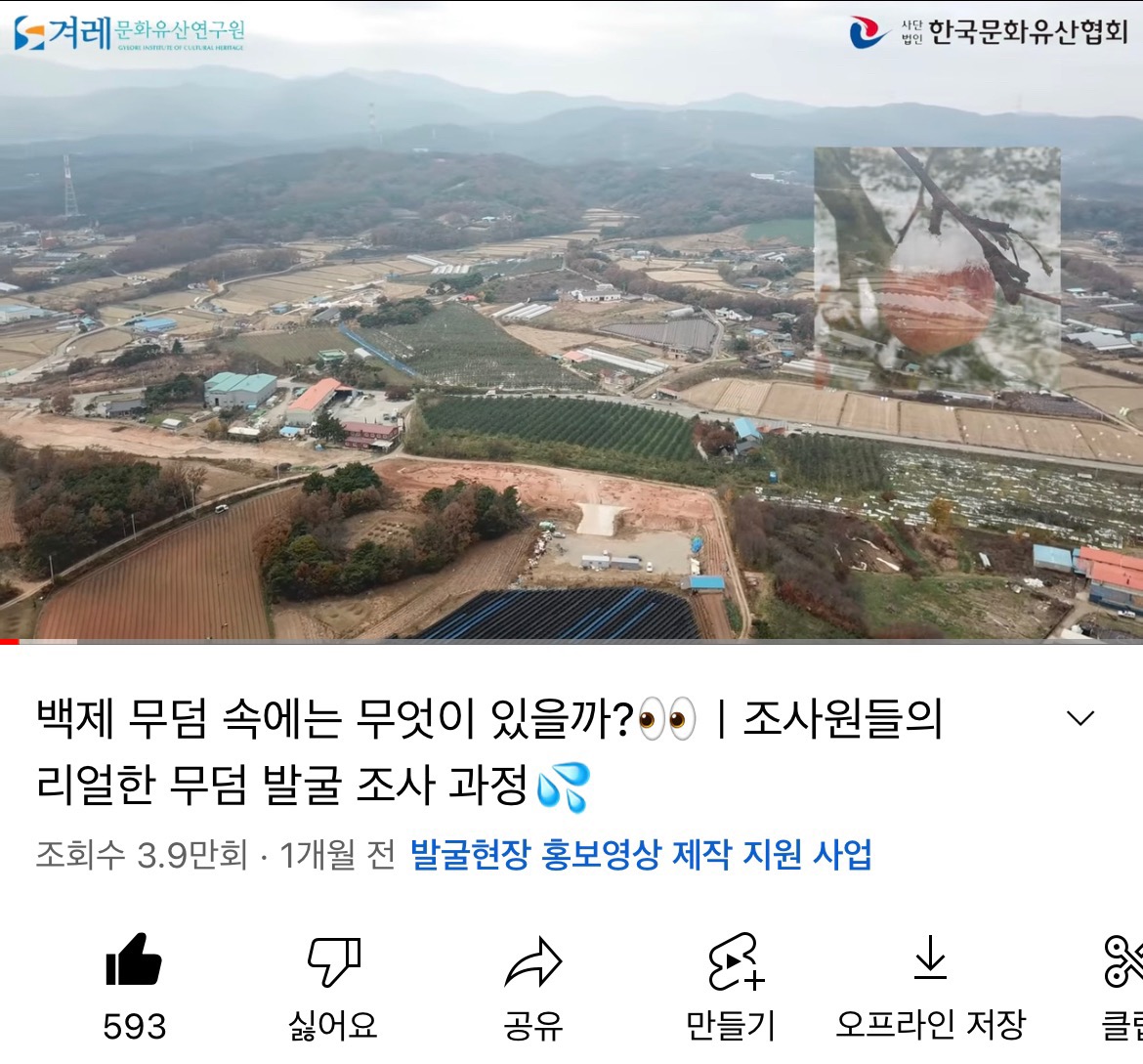 ‘백제 무덤에서 무엇이 발굴되었을까?’ 라는 호기심에 영상을 클릭했다면 끝에는 ‘문화유산을 위하여 묵묵히 자신의 역할을 하는 조사원들에게 감사하다.’라는 생각이 드시리라 생각합니다.