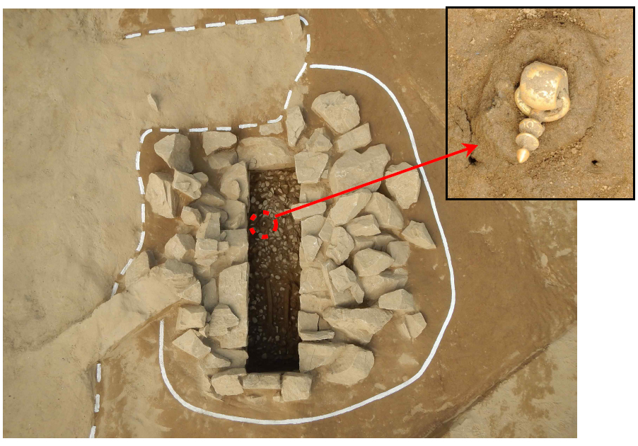 바닥은 지름 5~7㎝ 안팎인 강돌을 이용해 시신을 올려놓는 받침대인 시상(屍床)을 만들었다. 남쪽 바닥에서는 다리뼈 일부가 거의 흙으로 변한 상태로 확인됐다.