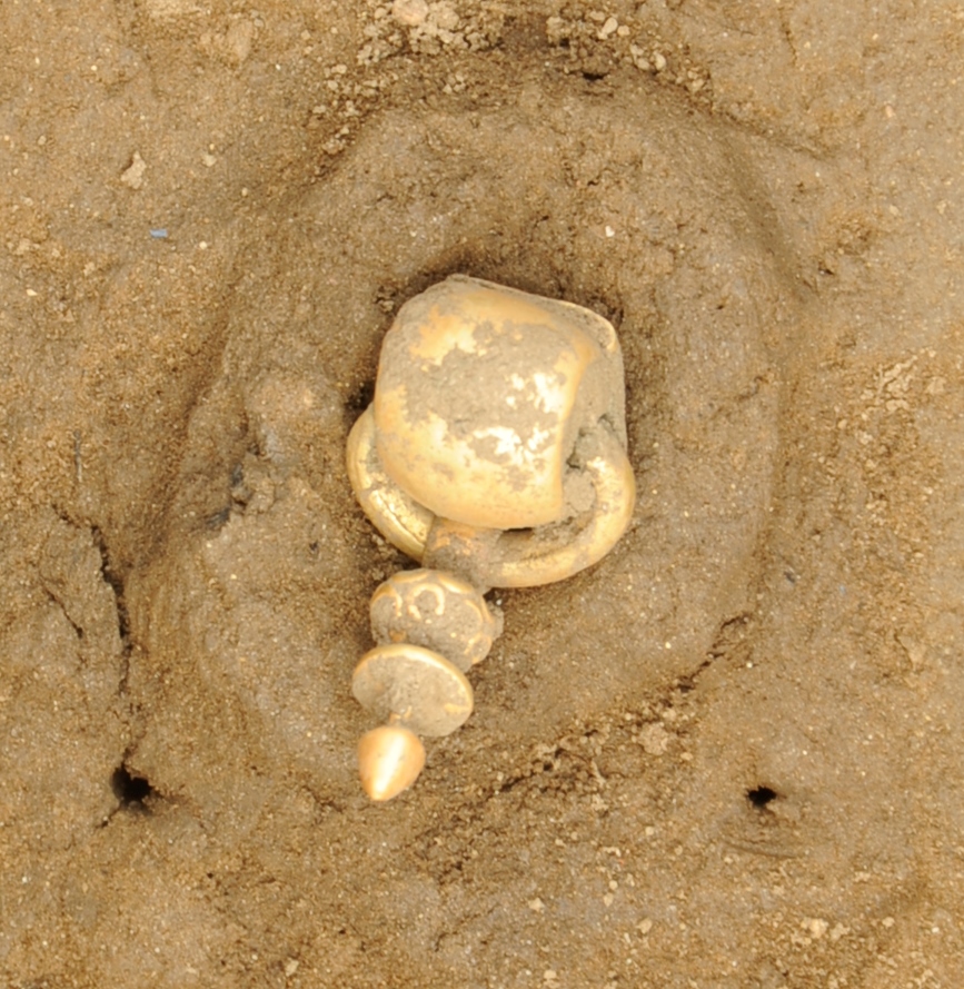 (서울=연합뉴스) 김태식 기자 = 레고랜드 예정지인 춘천 중도에서 고구려 금귀고리 1점이 발견됐다.