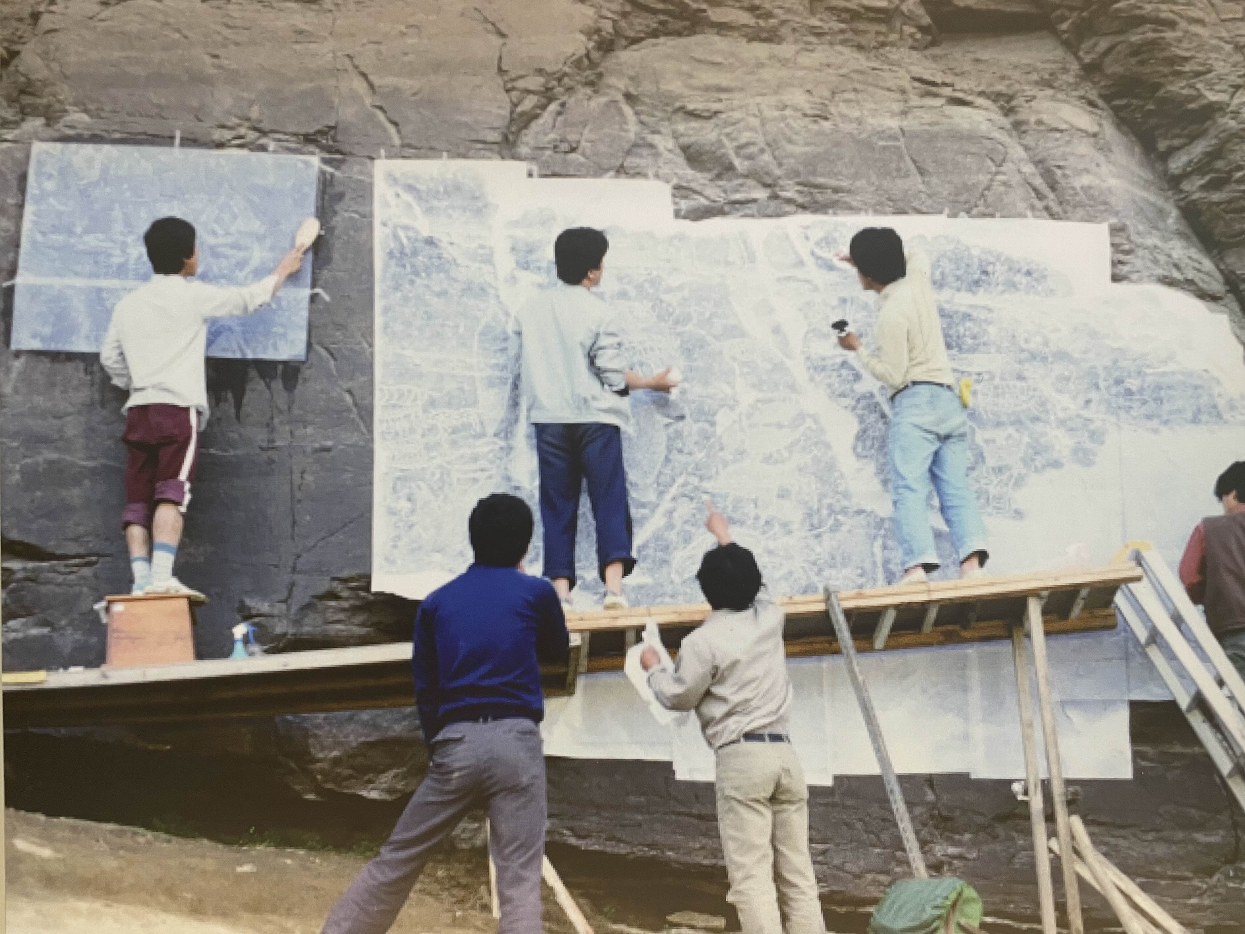 어마어마한 크기의 반구대 암각화를 탁본하기 위해 간이 아시바를 만들어 올라가고, 한지를 붙이고 두드리고, 당시 암각화의 상태도 확인할 수 있는 등 사진에서 당시 현장감있는 모습을 볼 수 있었습니다.