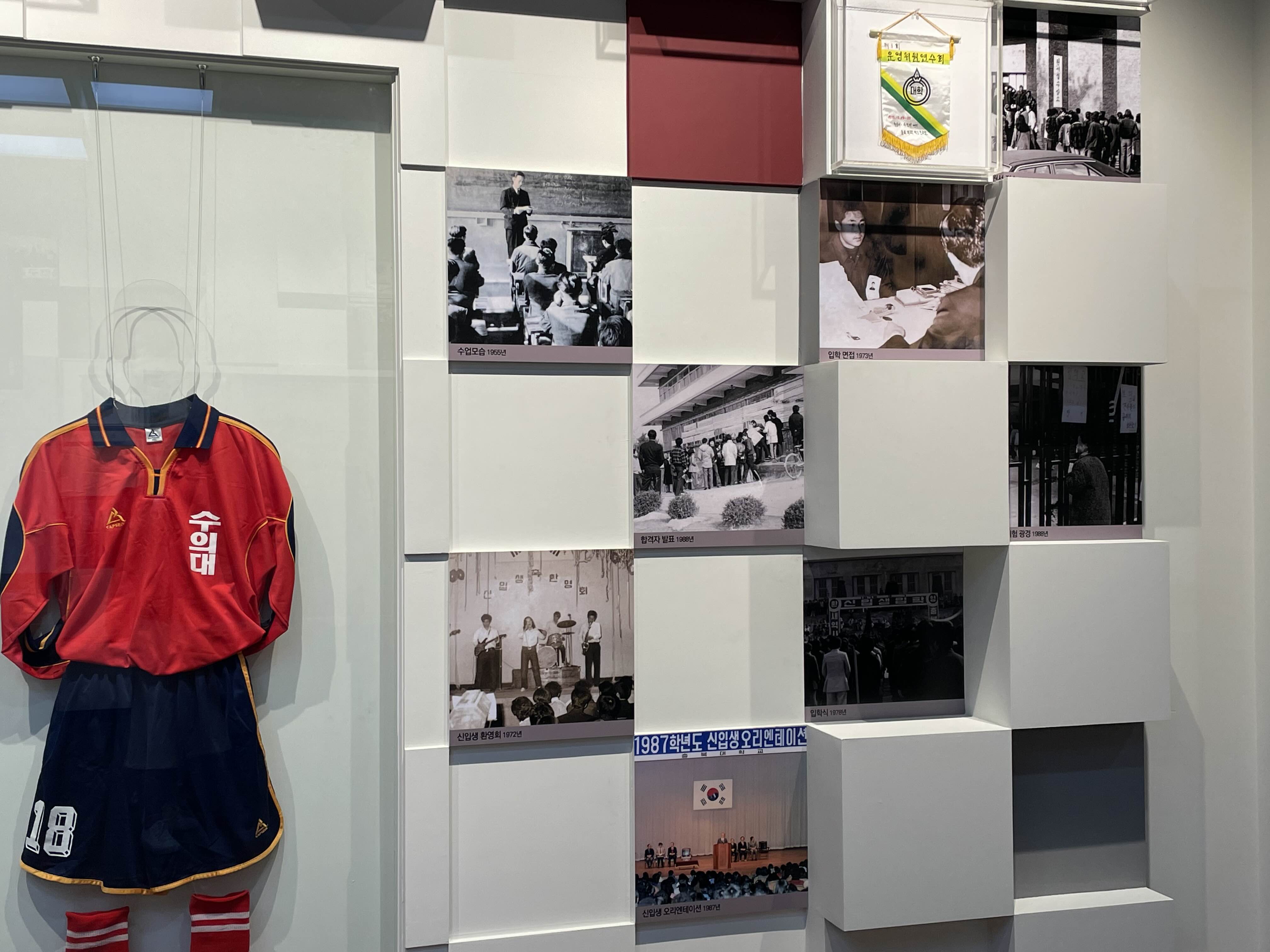 전시실에 들어가자마자 총장님이 학생들과 학교 홍보를 위해 춤을 추고 랩을 하는 영상이 나오는데, 한참을 보고 웃었습니다. “라떼는 말이야~~~~~”