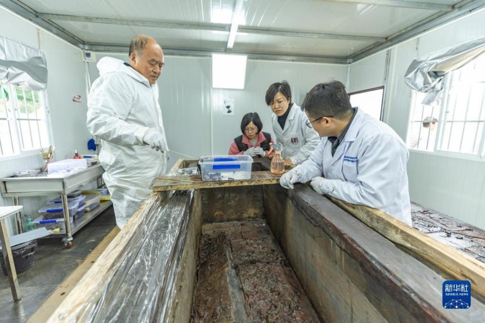 아마도 미라 혹은 인골도 발굴된 듯, 연구원은 나아가 중국사회과학원 고고연구소 中國社會科學院考古研究所 와 함께 묘주인에 대한 초보 탐사 결과 중년 남성이라는 결론을 내렸다.