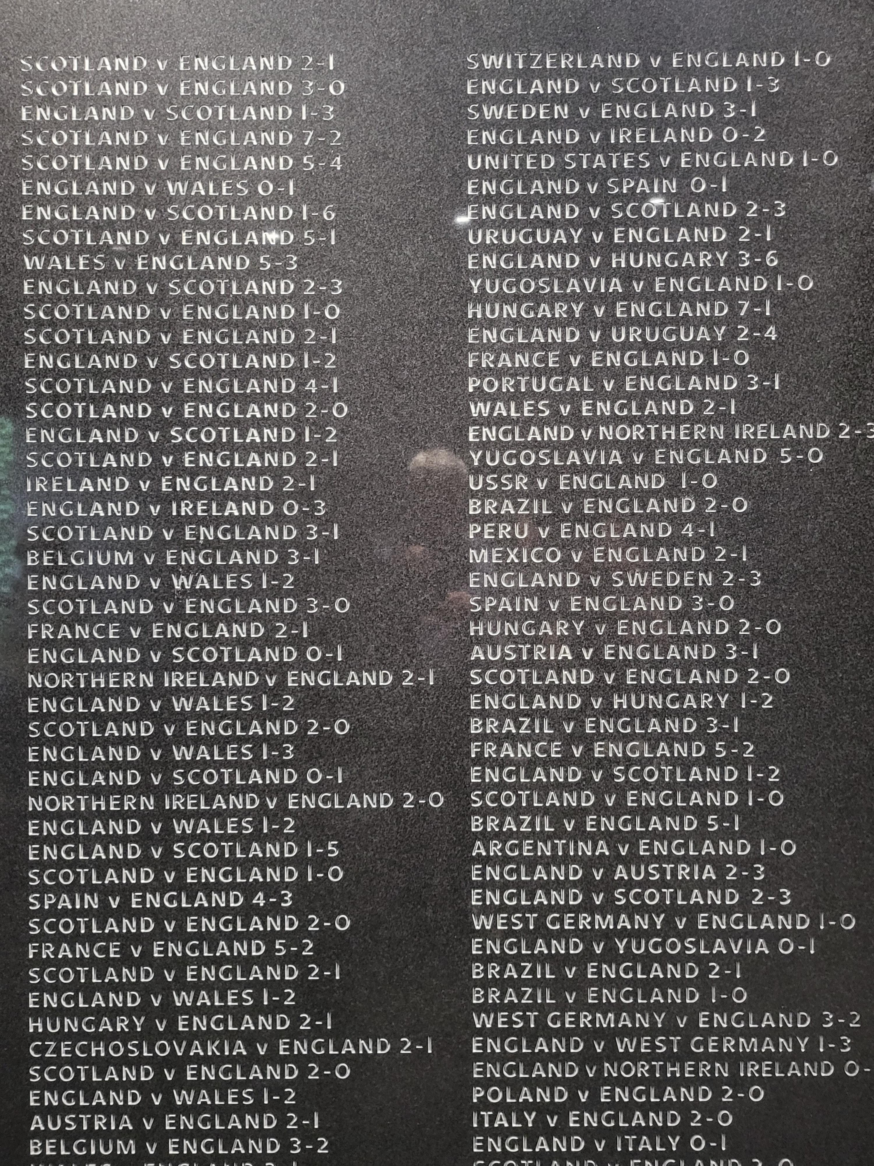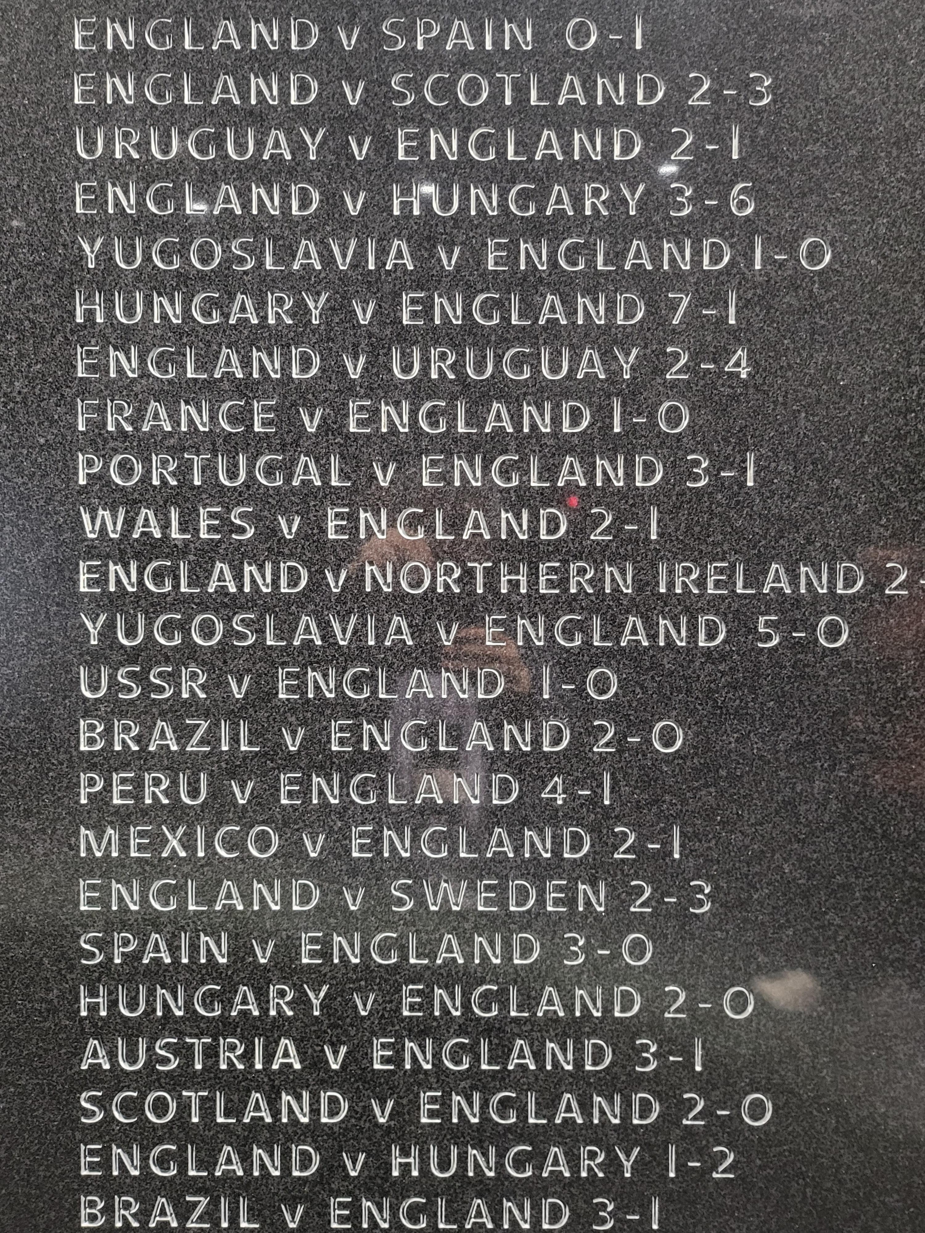잉글랜드 축구가 국가대항전에서 깨진 스코어만 그 상대국 이름과 더불어 묘지명으로 새겼으니