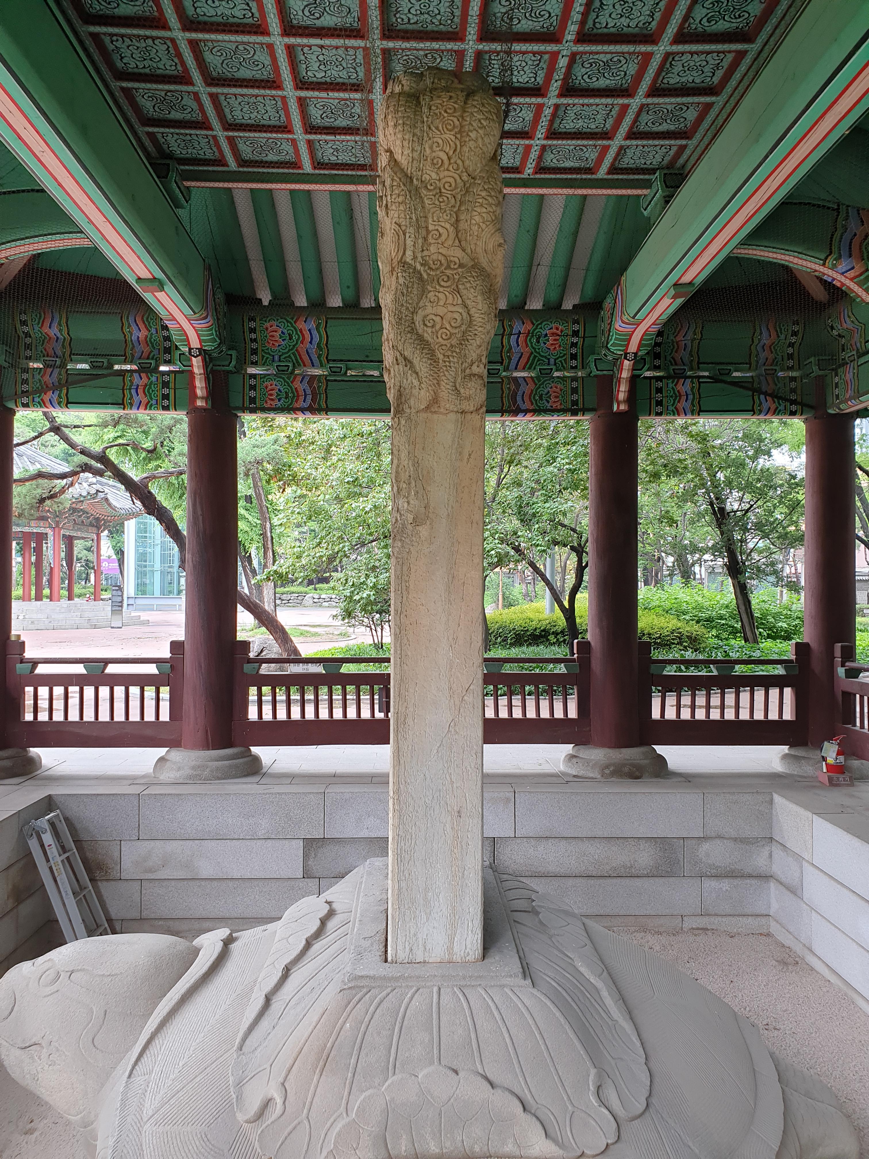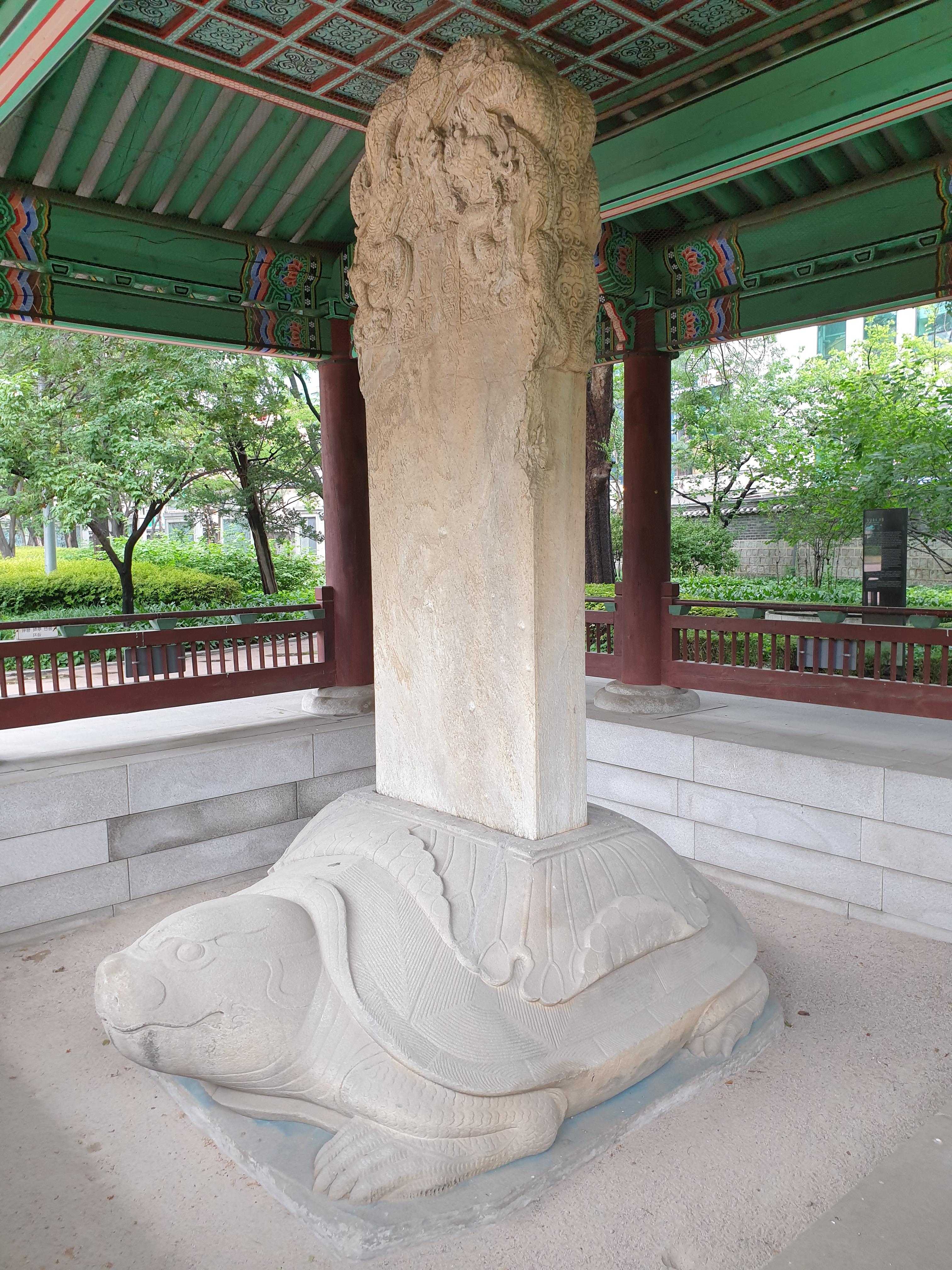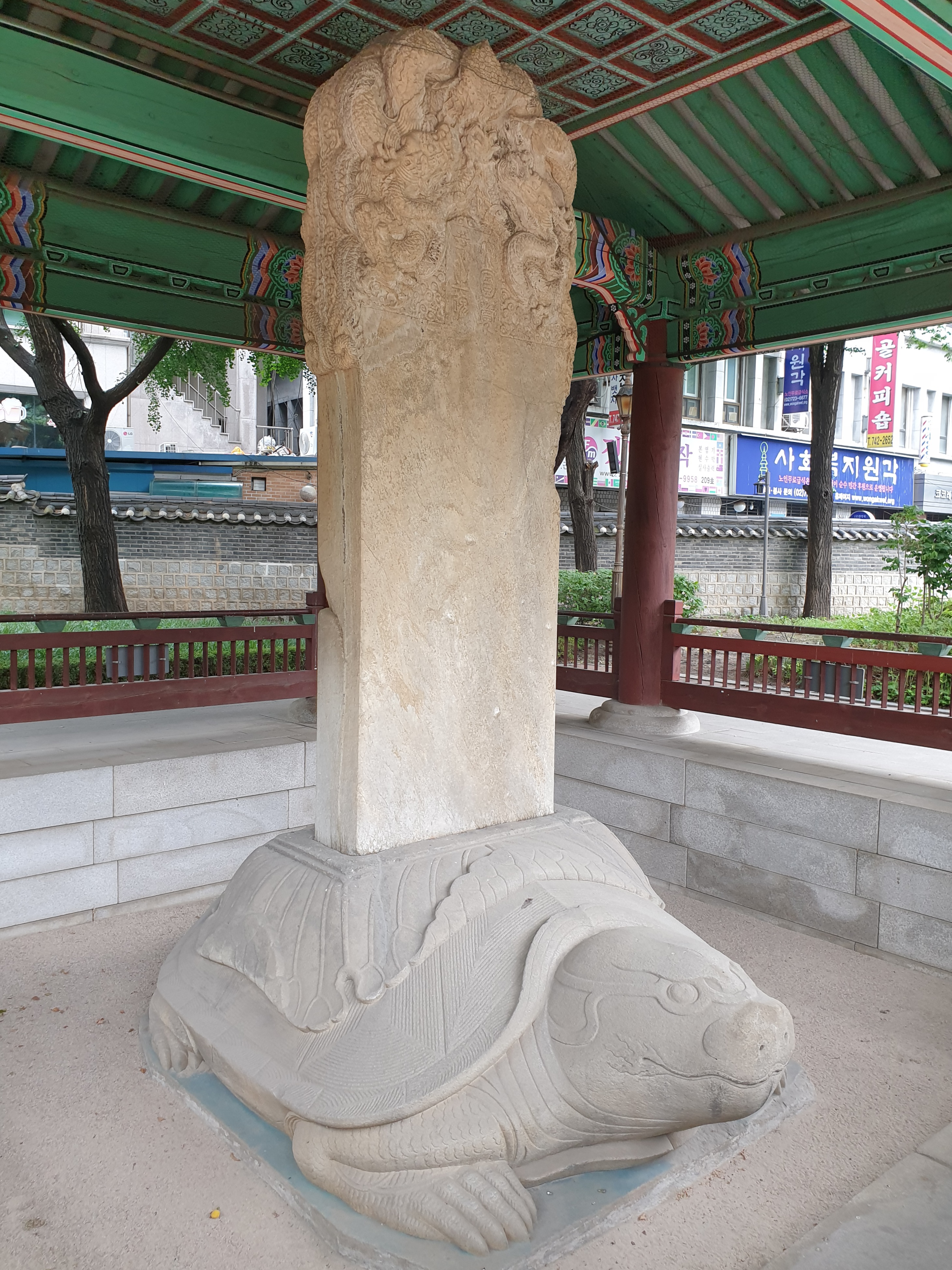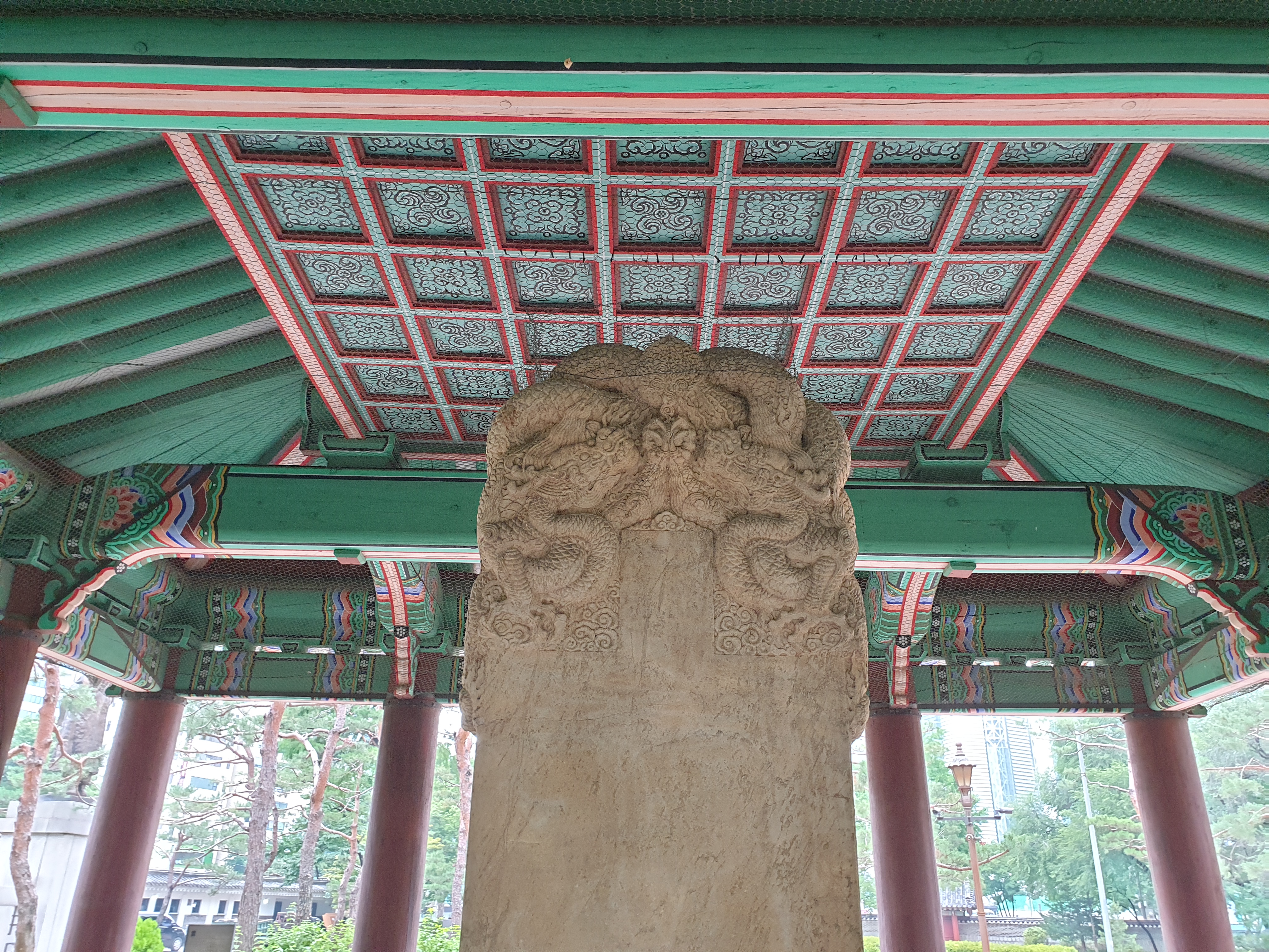In modern times, the area was turned into a park. Only a Ten-story Stone Pagoda (National Treasure No. 2) and this monument remain today, showing traces of Wongaksa.