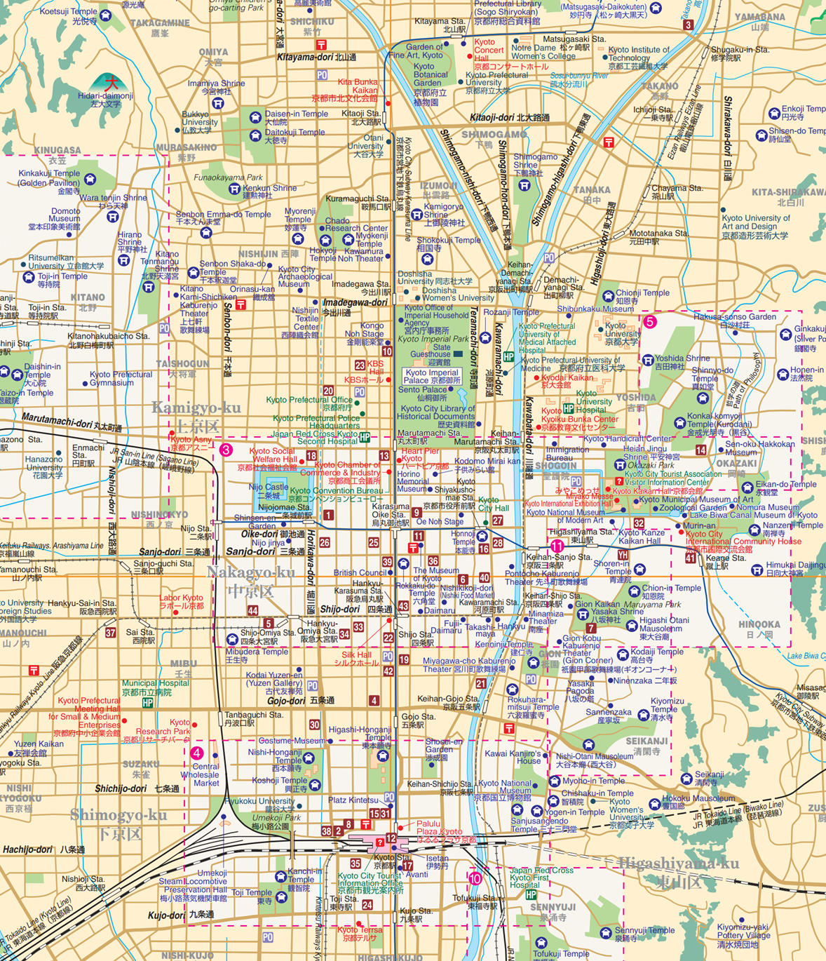 위 지도의 화면 중간 약간 우측에 강이 하나 보일 텐데 이 강의 동쪽은 원래 헤이안쿄가 아니다.