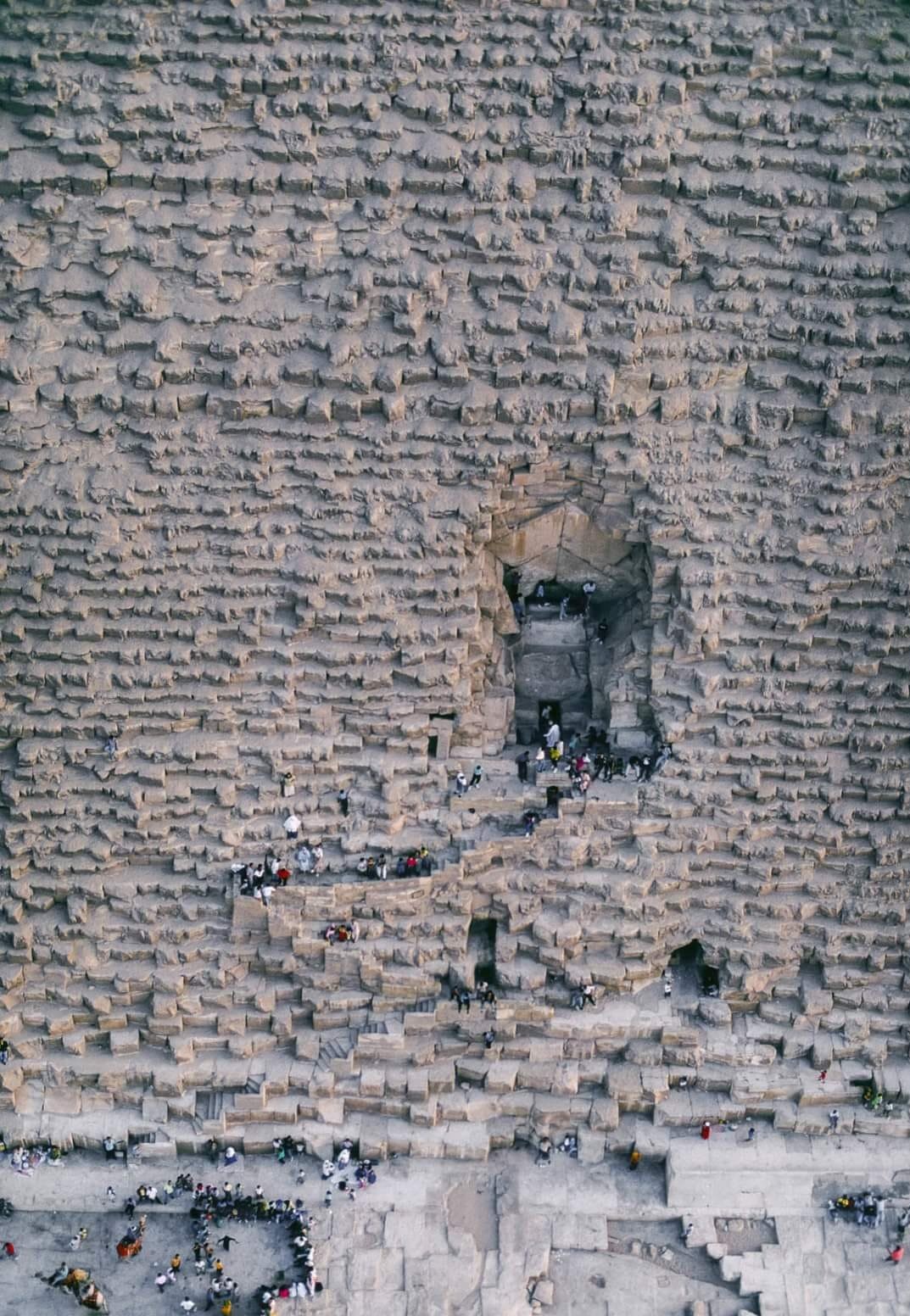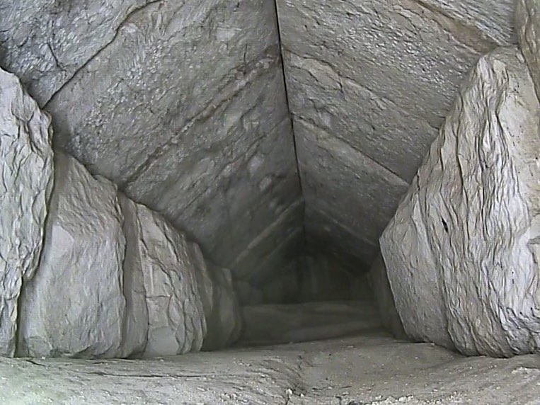 한데 최근 大피라미드 북쪽 면 이른바 ‘셰브론 지역’(Chevron zone)에서 새로운 통로가 발견되었습니다. 보도에 따르면, 폭이 2.1미터, 길이가 9미터인 이 통로는 출입구에서 7미터 위쪽에 위치해 있으며 전체 구조는 원래 출입구(original entrance) 혹은 ‘왕비의 묘실’ 천정과 유사하게 V자를 뒤집어 놓은 모습(셰브론)을 하고 있다고 합니다. (大피라미드에는 이 출입구 이외에도 도굴꾼들이 파놓은 출입구가 하나 더 있습니다.)