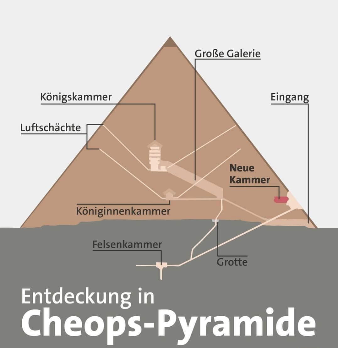 과거 페이스북을 통해 한 번 설명 드린 적이 있습니다만, 2016-2017년 ‘스캔 피라미드'(ScanPyramids)라는 이름의 국제 탐사 프로젝트 팀이 ‘뮤온’(muon)이라는 우주선(宇宙線: cosmic ray) 소립자를 이용하여 고왕국시대 제4 왕조 쿠푸(Khufu: 기원전 2589-2566년) 왕 大피라미드(Great Pyramid) 내부를 스캔한 결과, 지금까지 알려지지 않은 빈 공간 존재를 확인했다고 보고한 바 있습니다.