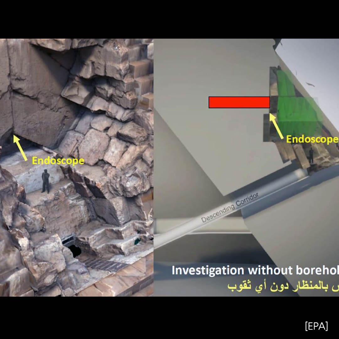 (요하네스버그=연합뉴스) 유현민 특파원 = 이집트 기자의 피라미드 중 가장 크고, 오래된 쿠푸(Khufu)왕의 대(大)피라미드에서 미지의 공간이 공개됐습니다.이집트 당국이 2일(현지시간) 대피라미