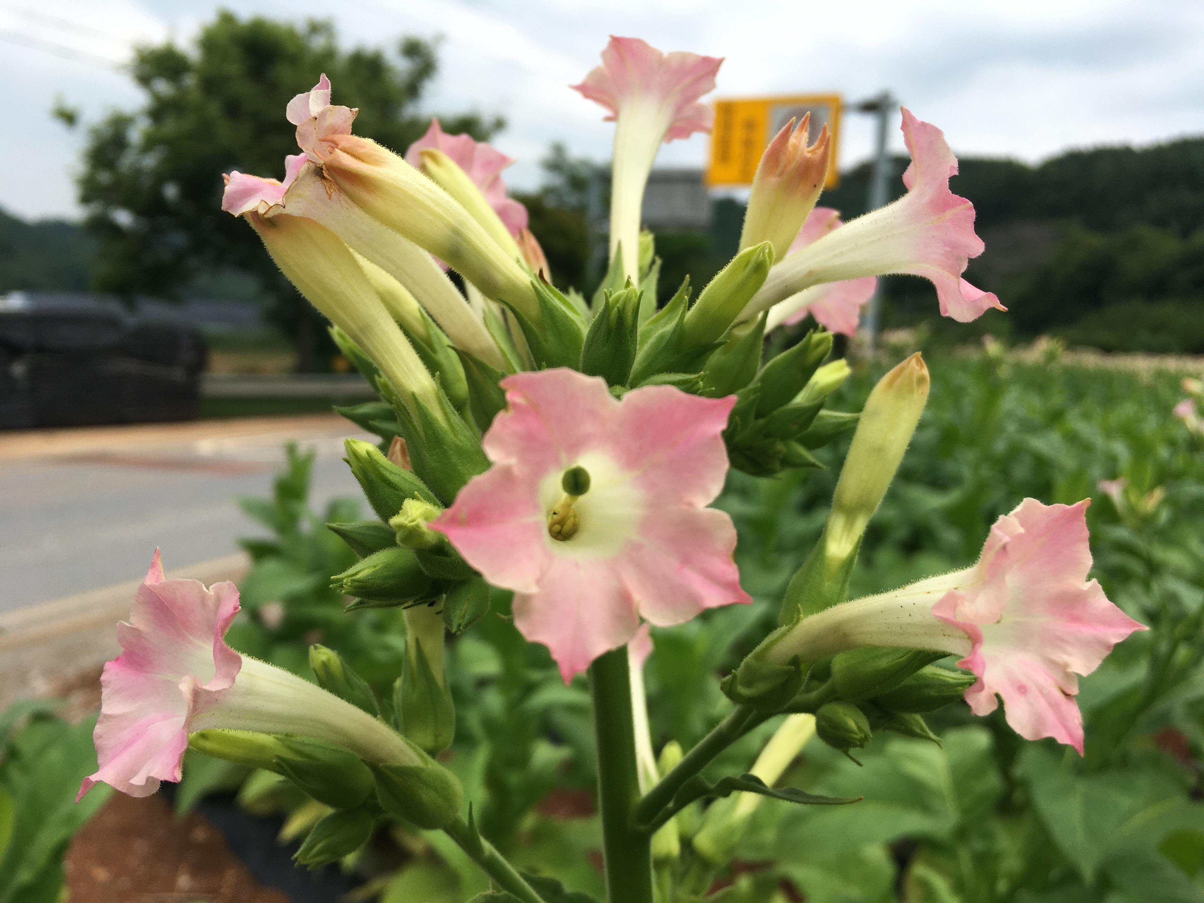 지나가는 길에 바라보니 담배꽃이 한창이다. 가까이 가서 보니 담배꽃이 소담스럽다. 예전엔 담배말리던 건조장도 있었다고 하는데 지금은 보이지 않는다.