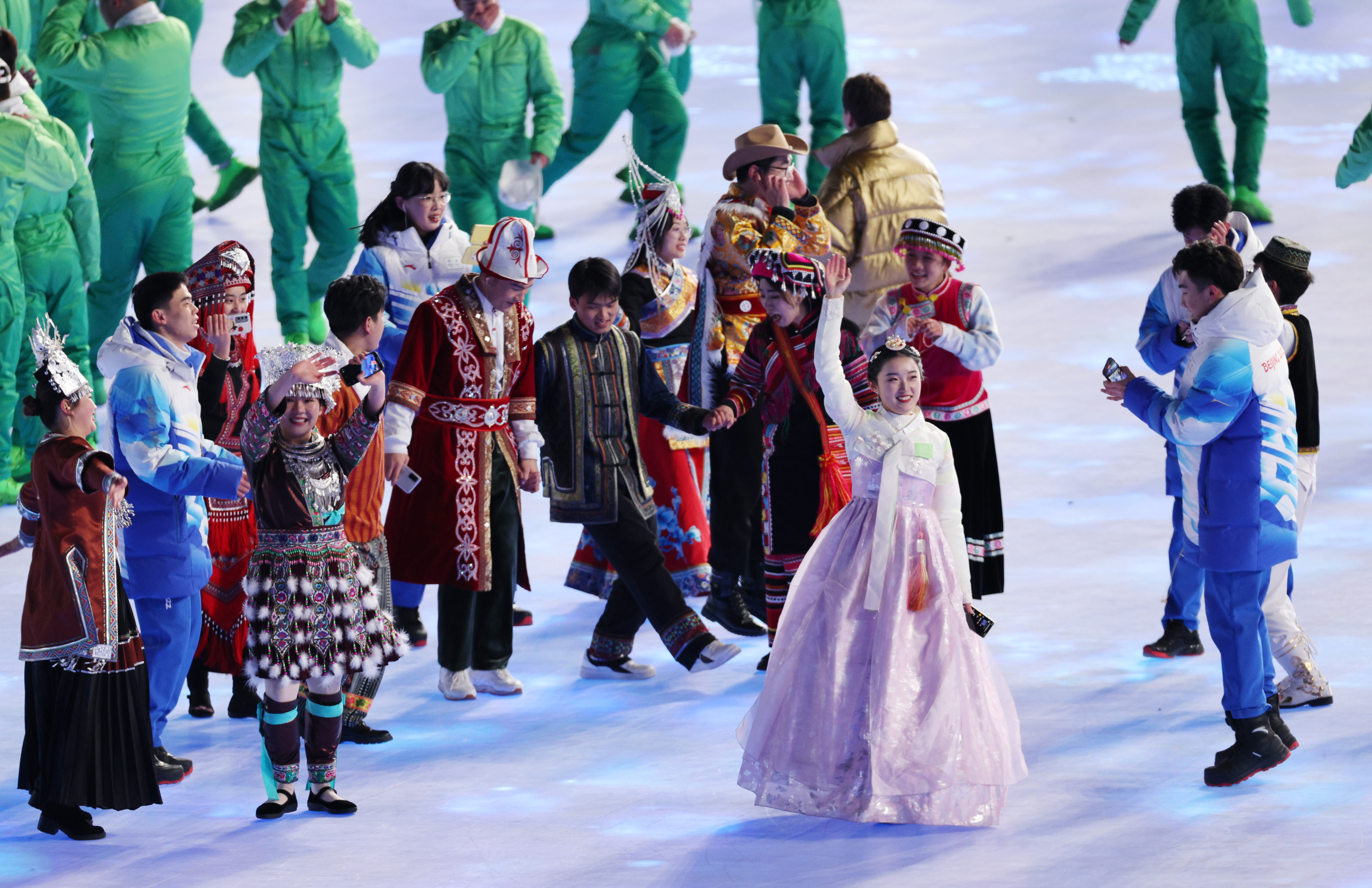 이 의도는 중국이 한족과 소수민족 연합이라는 의미를 담고자 했으며, 조선족 또한 그 소수민족 또한 분명하거니와, 한복은 소수민족 조선족 상징화 장치로 한복을 입혔을 뿐이다.