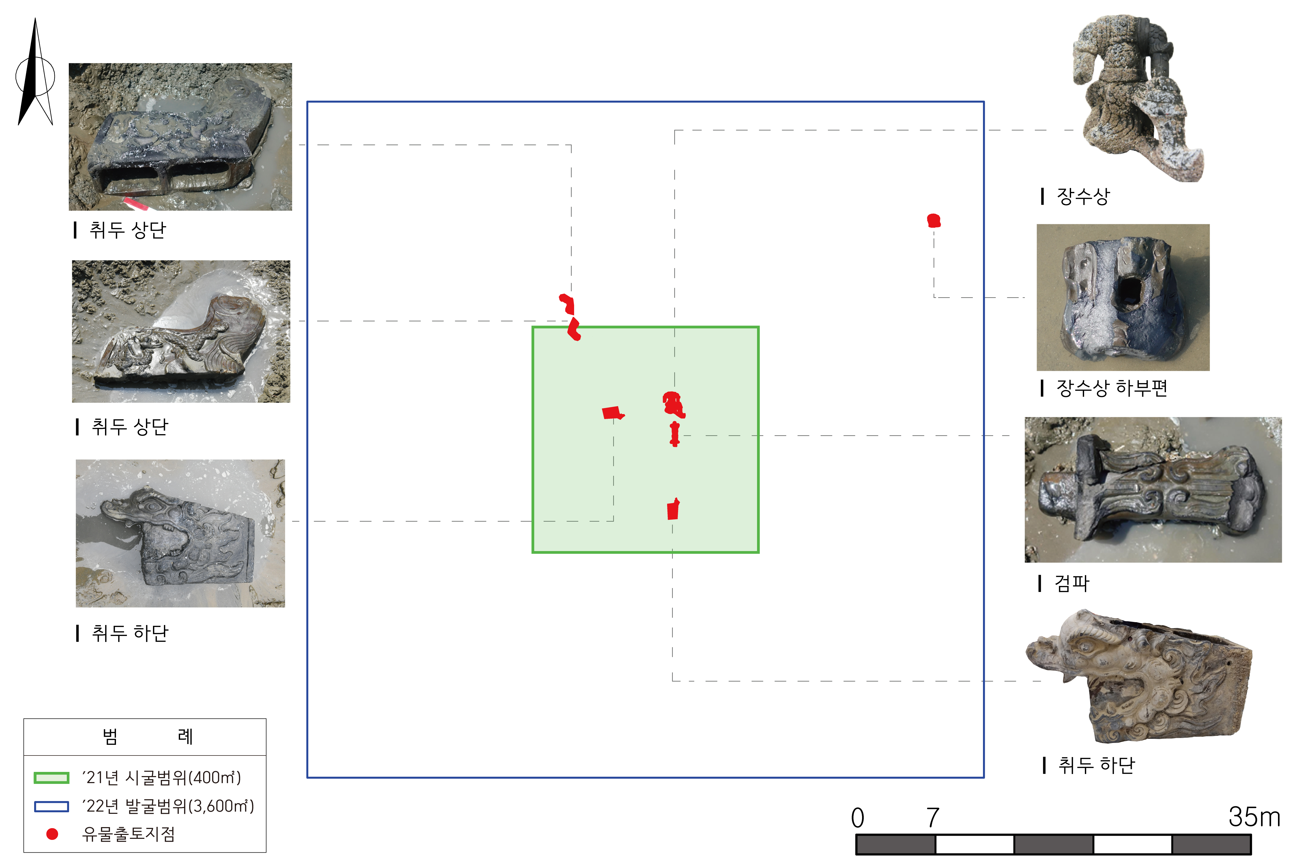 연구소는 지난해에도 이곳에서 취두 상부와 하부 각 1점과 지붕에 얹는 장수상을 출토한 바 있다.