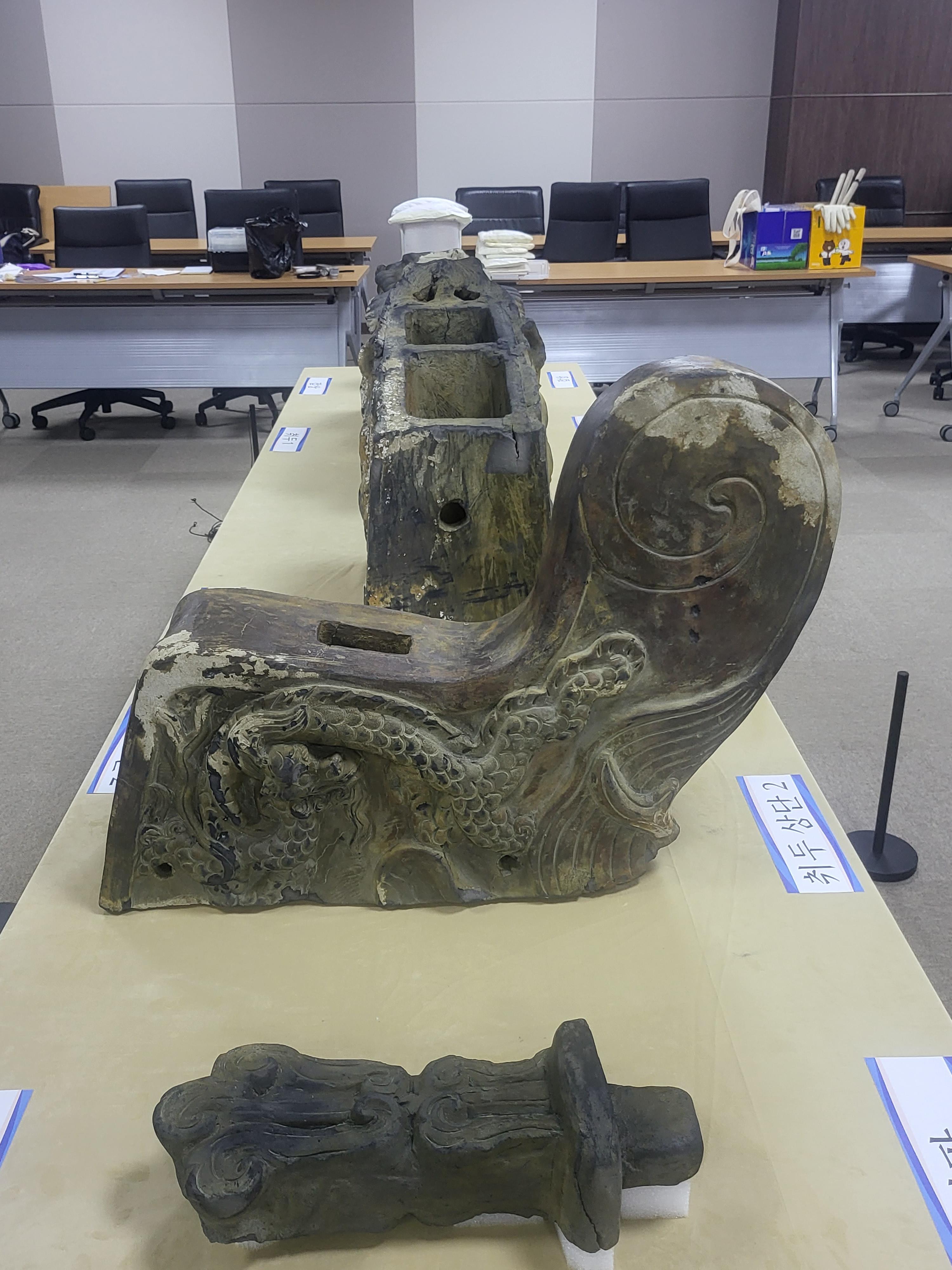연구소는 지난해에도 이곳에서 취두 상부와 하부 각 1점과 지붕에 얹는 장수상을 출토한 바 있다.