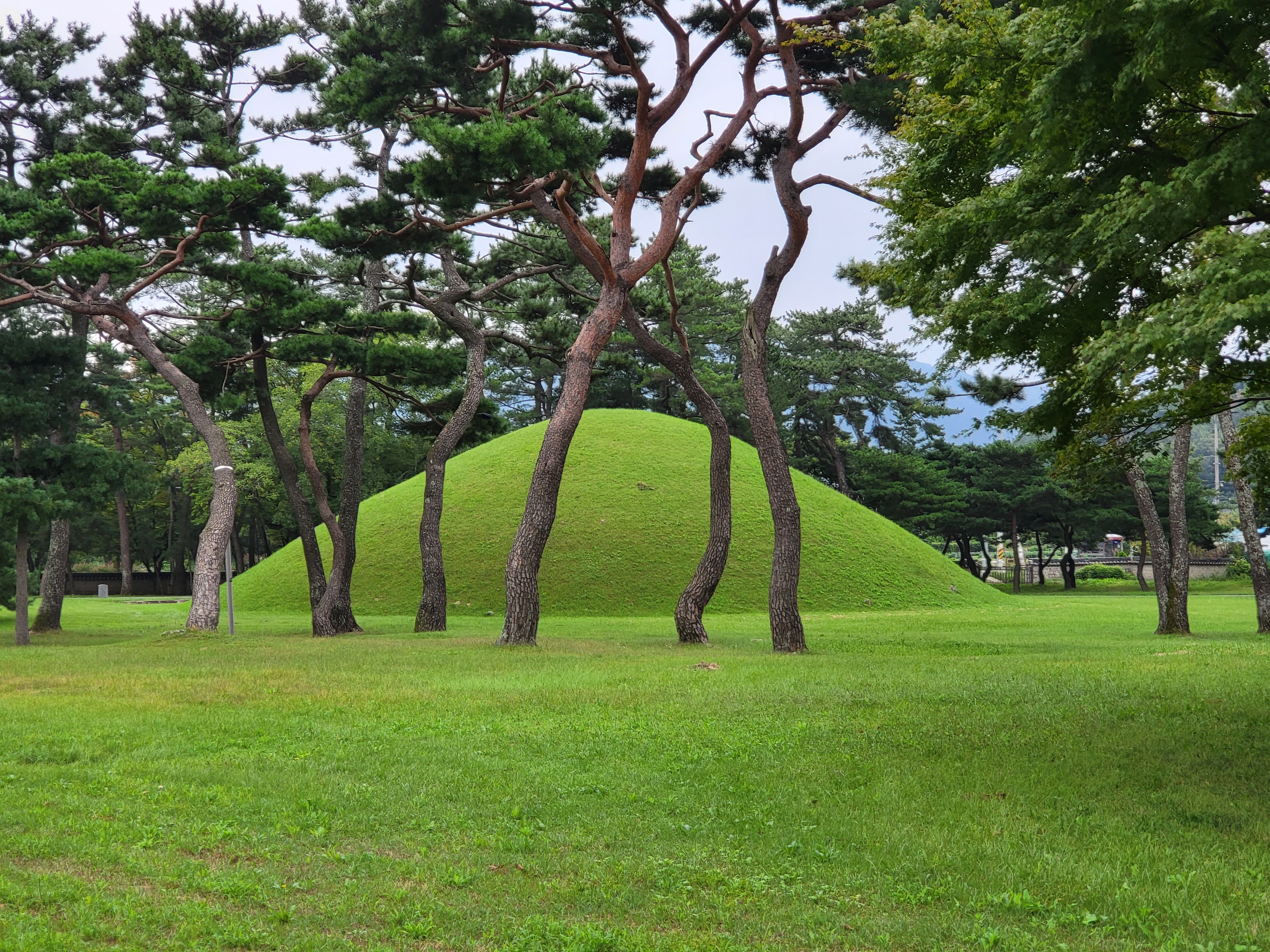 저 서형산 기슭엔 무수한 신라시대 무덤이 포진하니 다만 지금은 공원으로 잘 단장된 곳을 중심으로 주변 다른 무덤들에 견주어 특히 우람함을 자랑하는 거대 봉분 네 기가 동서 방면으로 신기하게도 모조리 월성을 바라보며 포진하거니와 그 무덤별 주인공이 아리숑숑하기는 하나 법흥 진흥 무렵 그네들을 포함하는 왕가의 최고권력자가 묻혔음엔 이론의 여지가 없다.