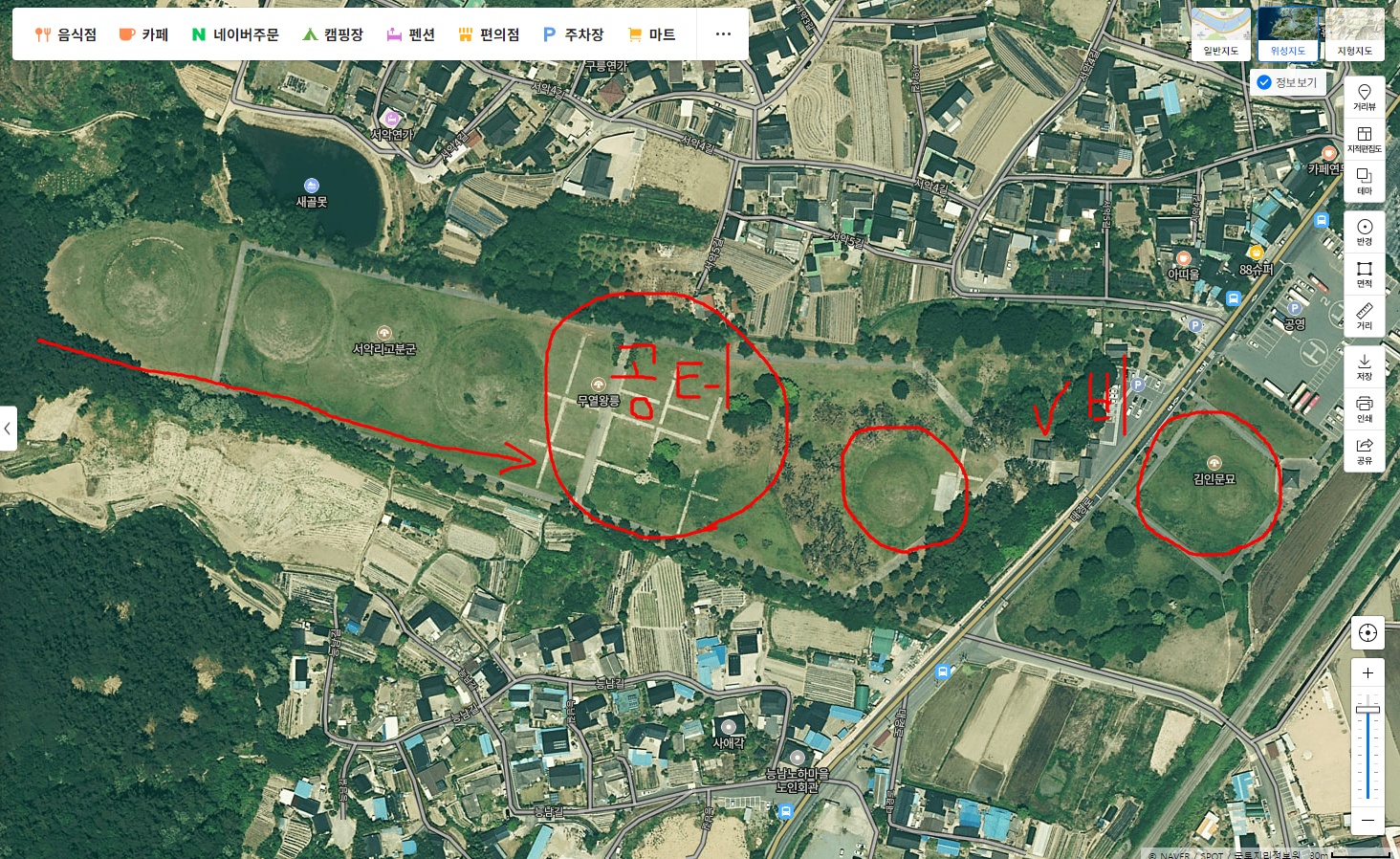 혹여 저 지형이 신라시대 그것을 어느 정도 반영한다면 다른 왕릉을 쓰고자 한 자리이거나 침전이 있을 만한 곳이다.