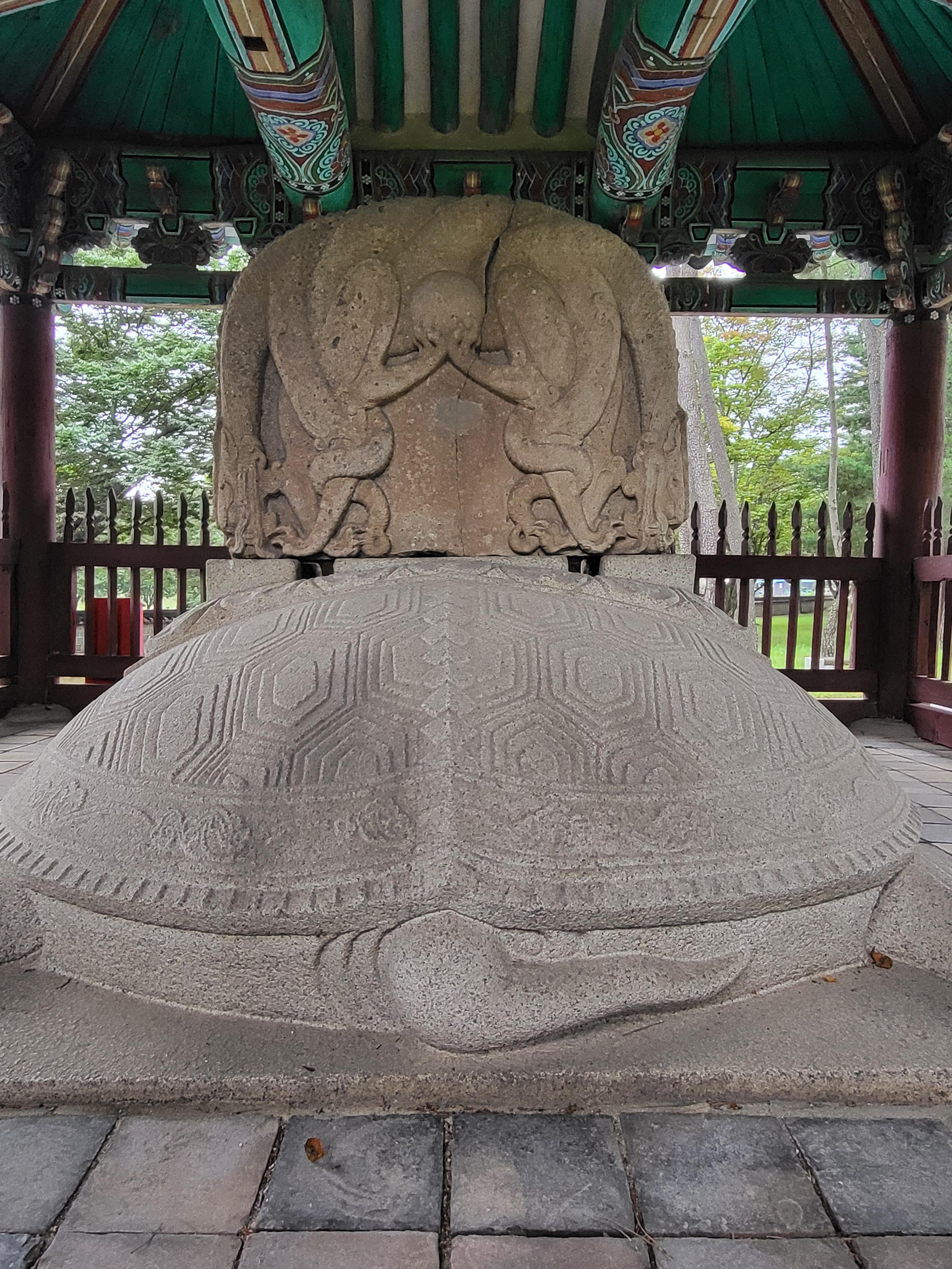 그 전면엔 몸뚱이리는 박살나서 다 사라지고 발바닥이랑 머리 부분만 덩그러니 남아 착 달라붙은 땅달보 신라시대 석비가 있으니 그것이 바로 태종무열왕비 잔편이다.