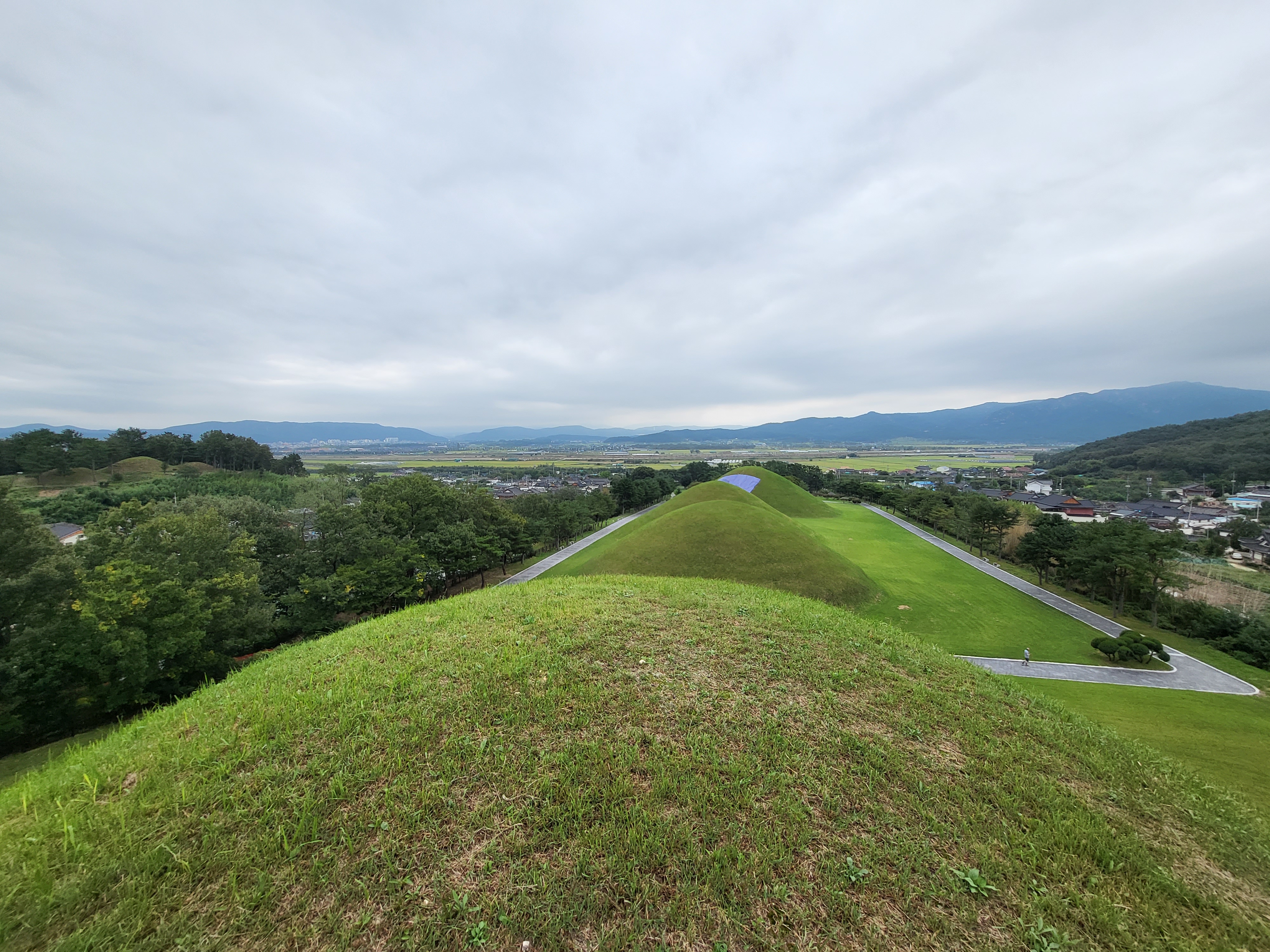 저 서형산 기슭엔 무수한 신라시대 무덤이 포진하니 다만 지금은 공원으로 잘 단장된 곳을 중심으로 주변 다른 무덤들에 견주어 특히 우람함을 자랑하는 거대 봉분 네 기가 동서 방면으로 신기하게도 모조리 월성을 바라보며 포진하거니와 그 무덤별 주인공이 아리숑숑하기는 하나 법흥 진흥 무렵 그네들을 포함하는 왕가의 최고권력자가 묻혔음엔 이론의 여지가 없다.