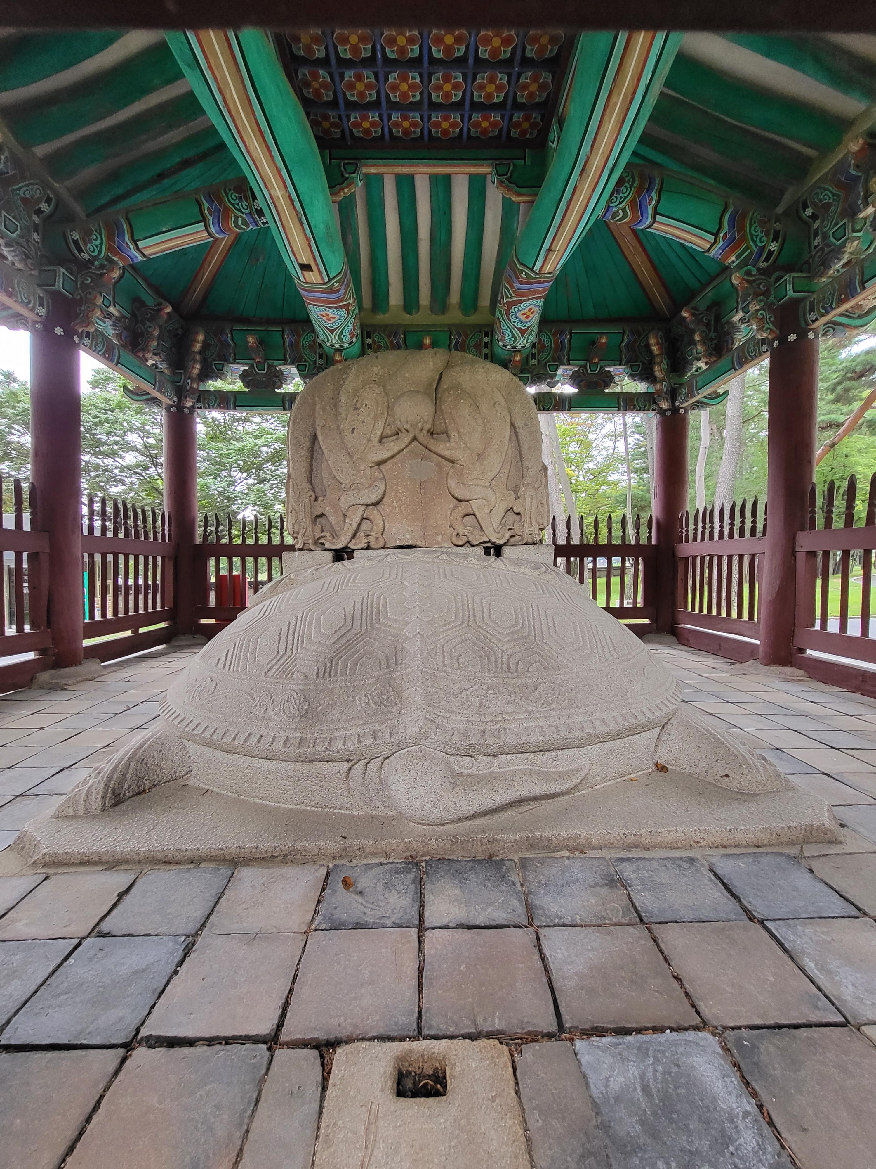 그 전면엔 몸뚱이리는 박살나서 다 사라지고 발바닥이랑 머리 부분만 덩그러니 남아 착 달라붙은 땅달보 신라시대 석비가 있으니 그것이 바로 태종무열왕비 잔편이다.