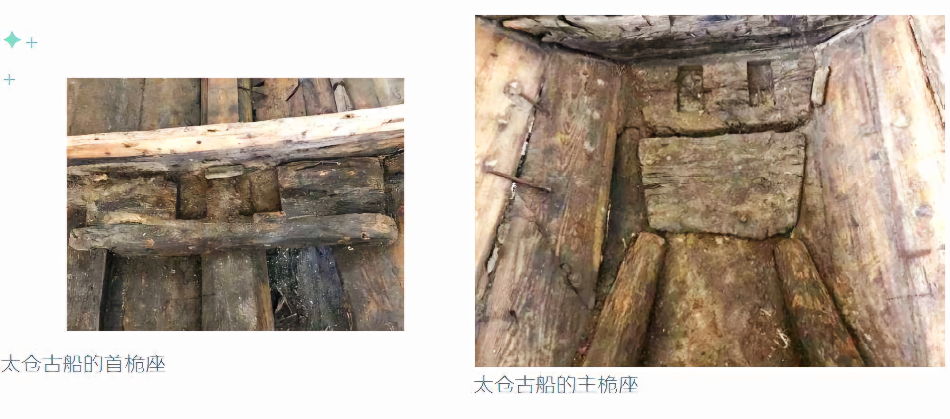첫째, 유일한 “용골조龙骨吊”다. 이 선박에는 7곳 창벽판舱壁板이 용골龙骨과 연접한 데가 있으니 방형 목제로 만든 “용골조龙骨吊”를 설치함으로써 배를 움직이는 용골龍骨과 창벽舱壁을 붙임으로써 견고함을 더했다.