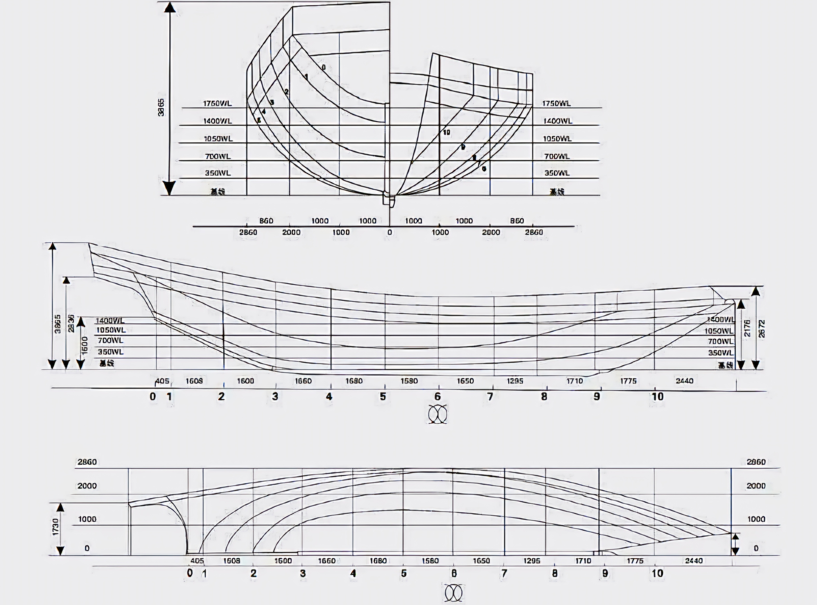 첨수尖首에 가까우면 파도가 만드는 저항을 감소케 하는데 유리하다. 선체 중中·후부後部는 “U” 자형을 띠는데 선실 용적을 높여 많은 화물을 선적하게 하며 동시에 선체 항해 중의 온정성稳定性을 보증保证한다.