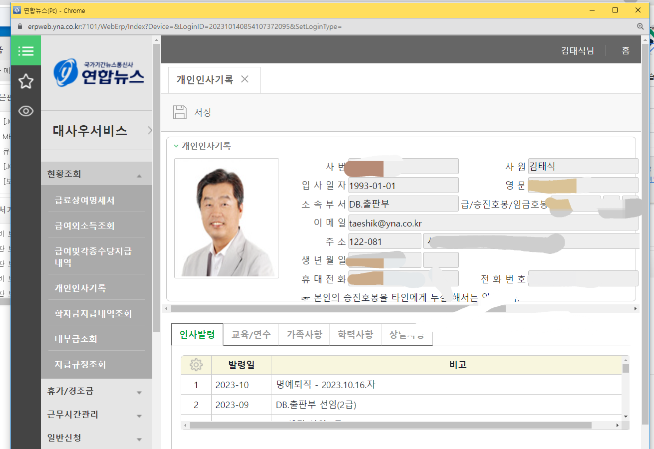 그래서 퇴직 전에 신상자료는 어케든 갈무리해둬야 한다.