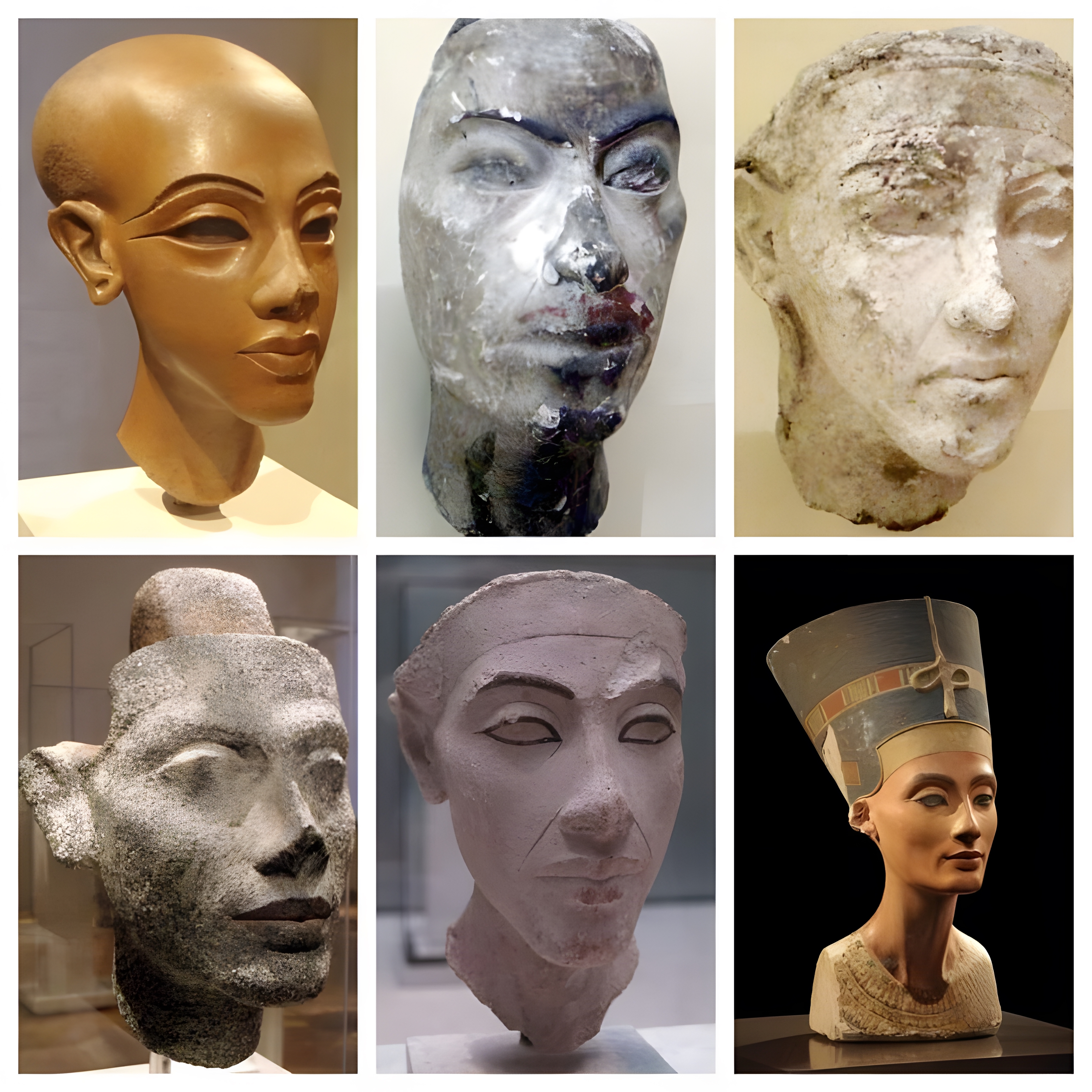 오늘날 아마르나 Amarna 로 알려진 인적 드문 마을 아케타텐 Akhetaten 에서 독일 고고학 탐험대가 1912년 12월 초, 폐허가 된 한 주거지와 스튜디오 단지(P47.1-3, 작업장을 말함) 하나를 발견했으니 이곳이 다름 아닌 저의 작업실이었음이 드러났다.
