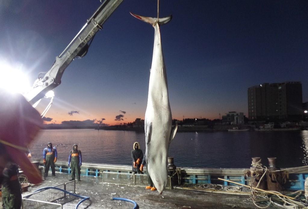 작년 섣달 그믐날 포항에서는 저렇게 걸려든 밍크고래가 9천만원에 팔리기도 했다. 그런가 하면 그 이틀전 영덕 해변에서는 길이 4.5m 밍크고래가 사체로 발견되기도 했다. 그에 앞서 6월 29일에는 속초 앞바다서 길이 7.8m인 밍크고래 사체가 드러나기도 했다. 4천만원 정도에 팔렸단다.