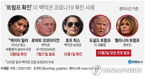 트럼프, 누구에게 옮았나…'초비상' 백악관 방역망 또 구멍 | 연합뉴스