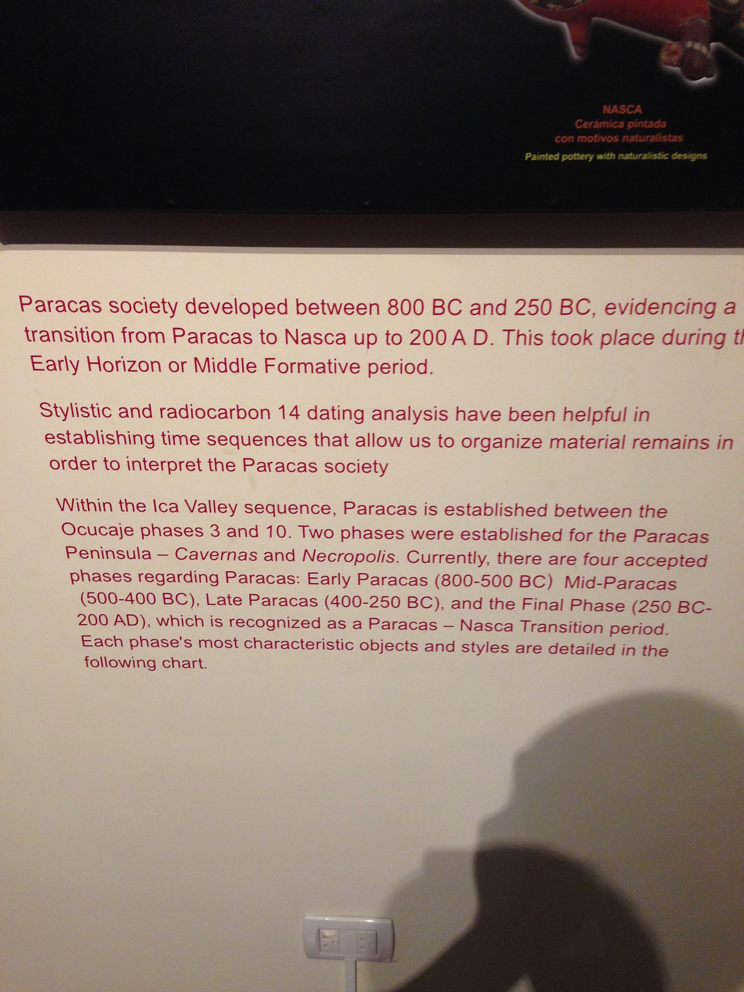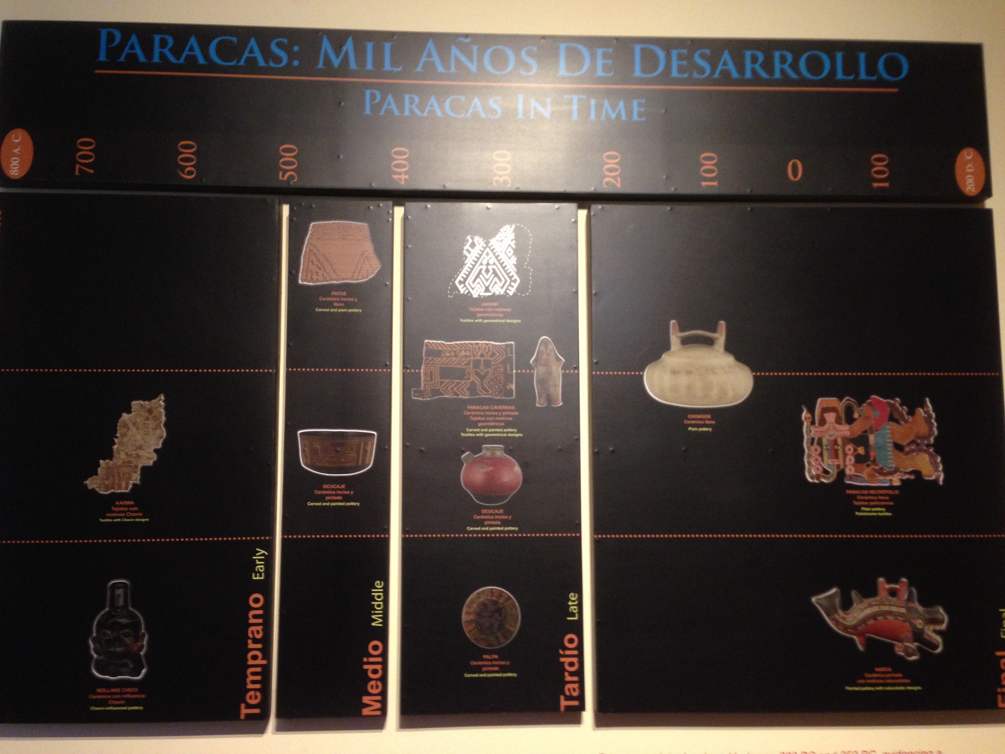 파라카스 Paracas 문화는 잉카 지역 최초의 국가로 간주되고 있는 모양으로 우리 청동기시대에서 원삼국시대 정도에 해당하는 것 같다.